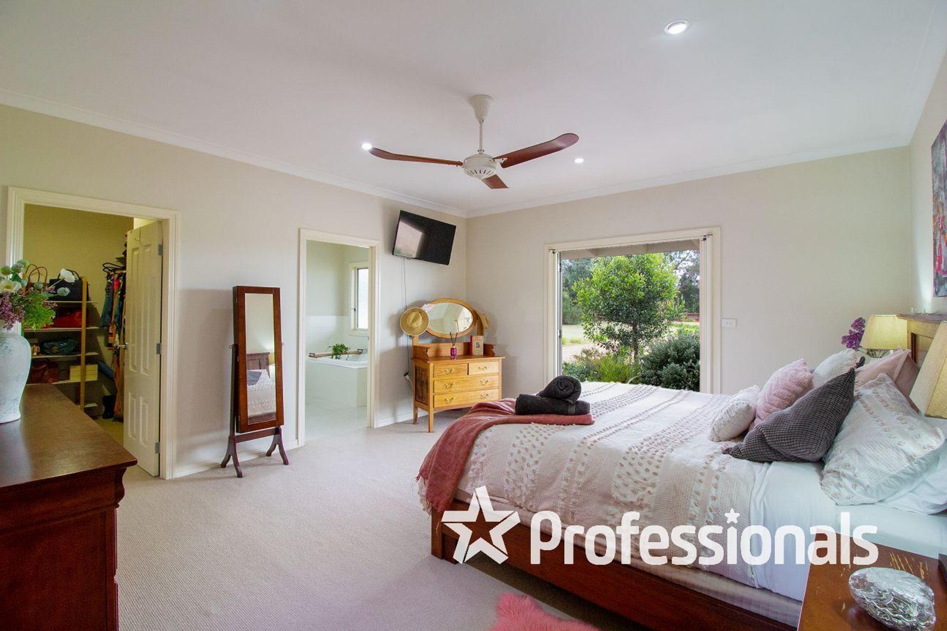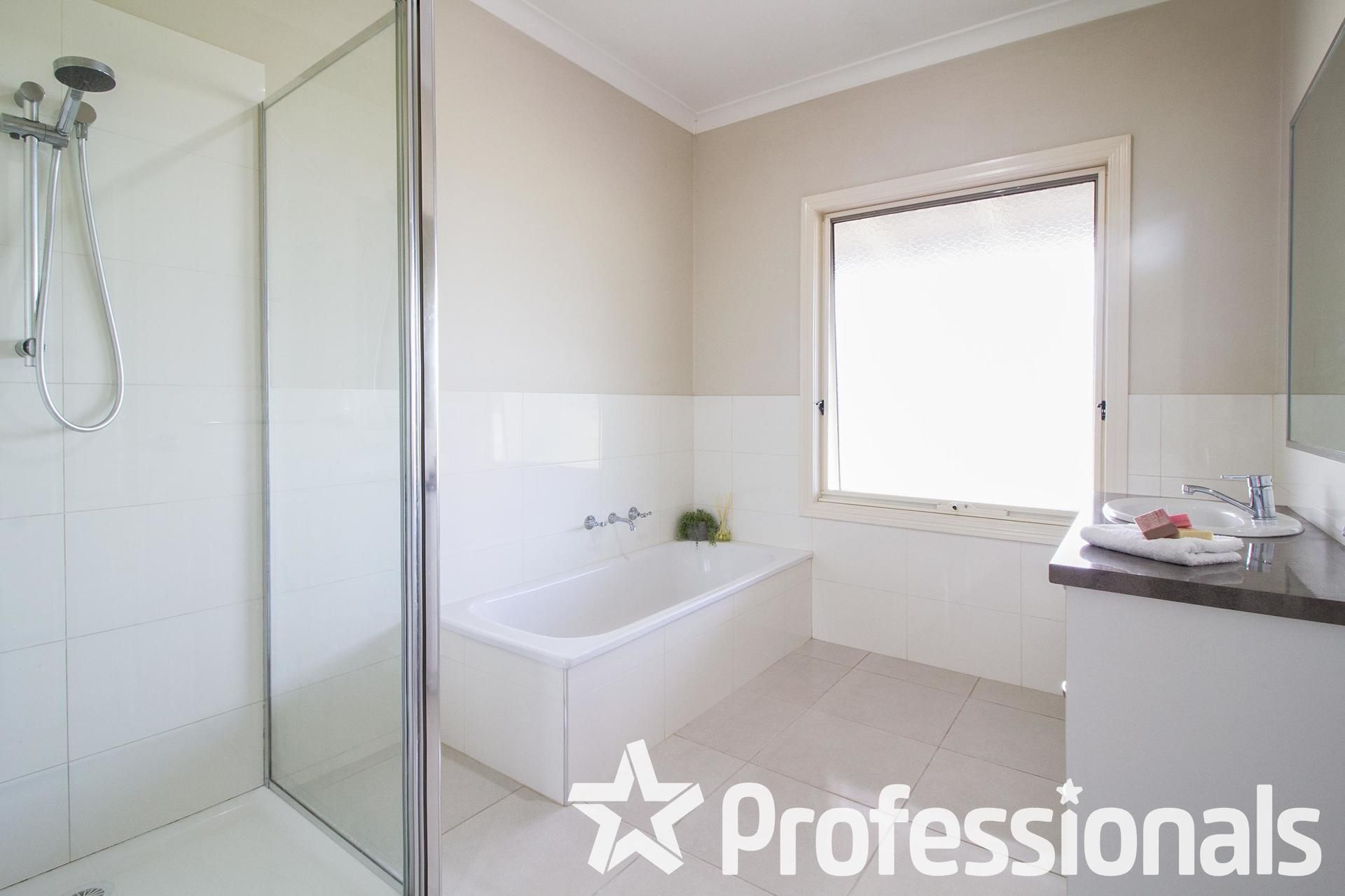 The master suite offers a walk-in robe, a large ensuite with two-person spa bath, and double doors opening out to the full-length verandas. Behind the attached double garage is a study that would also make a perfect home office with direct access outside, away from the living areas.
