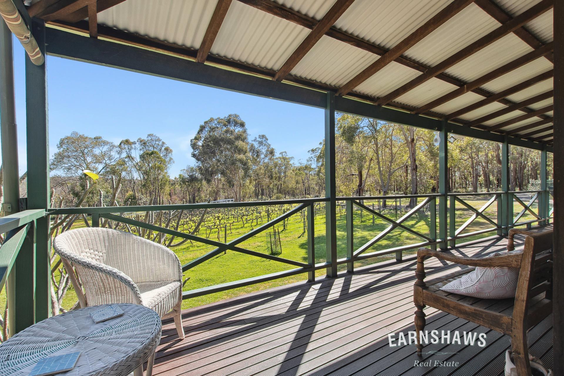 As you can imagine, the land here is a showstopper. The expansive timber-decked verandahs and patio mean so many good choices for sitting with a tea, talking to the birds, planning the next DIY project, or hosting a bit of outdoor entertaining. The below ground pool will soon be the Summer's go-to spot for any young folk you have around and the fully self-contained granny flat, complete with a bedroom, bathroom, and living area means you may not get those young people to leave the property! If you have extended family, older children, or grandparents you may want to welcome in, this is just the ticket. A double and single carport, undercroft cellar, and two separate powered sheds ensure plenty of storage space for all your goodies and when you want to feel really grateful for this beautiful life, take a meander through the mini vineyard.