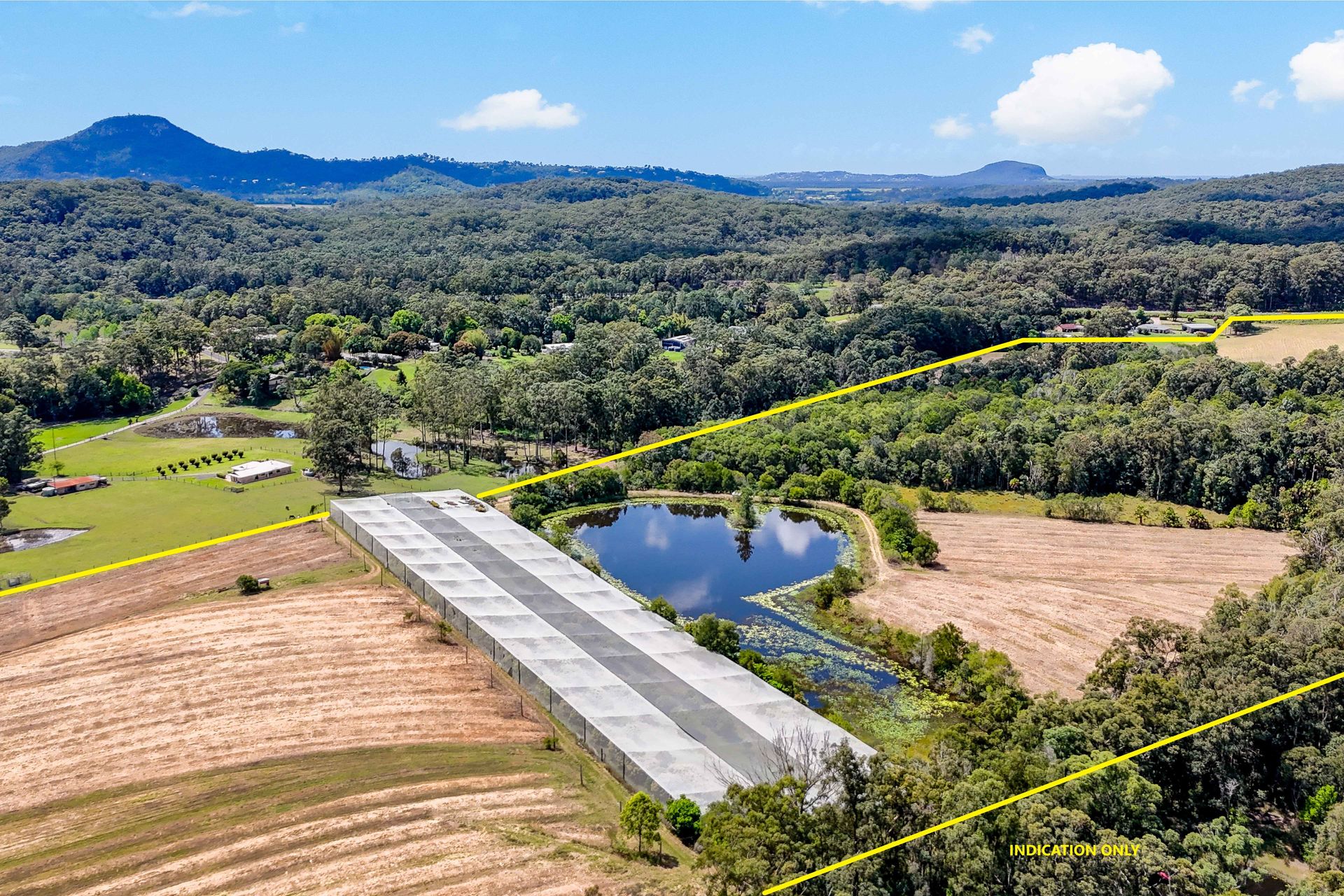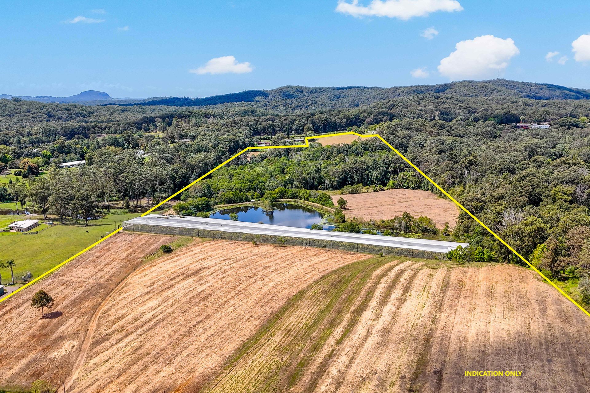 Previously a citrus and lychee farm, the citrus trees have been removed, but the lychee trees remain in two high-clearance exclusion netting structures and are still producing income. This property is well-suited to various agricultural enterprises, supported by a large dam that provides ample water for the lychees and potential crops such as ginger, macadamias, nursery production, or other small-scale crops. It could also be an excellent grazing property with the introduction of improved pastures.
