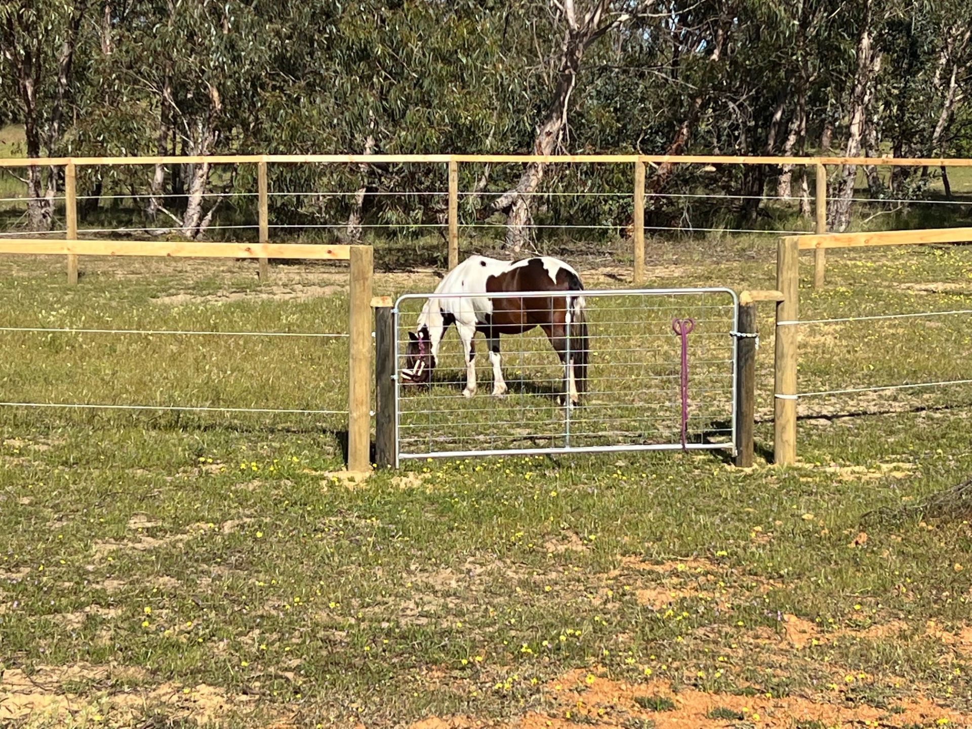 * Horse holding yards with solar panel lights, round yard and a large free-range paddock. The shed is partitioned and a section of the shed could be converted to a horse night yard and tack room.