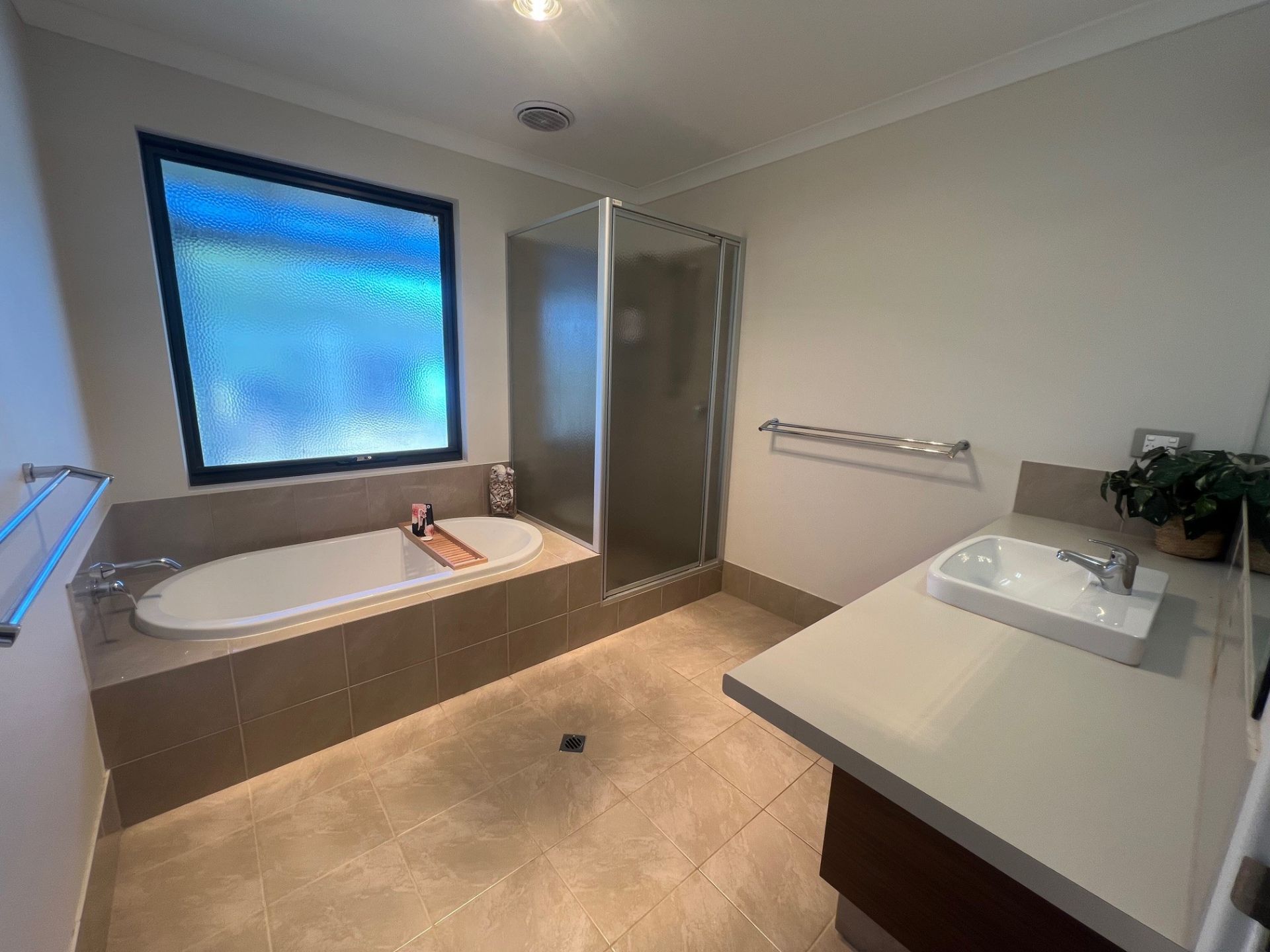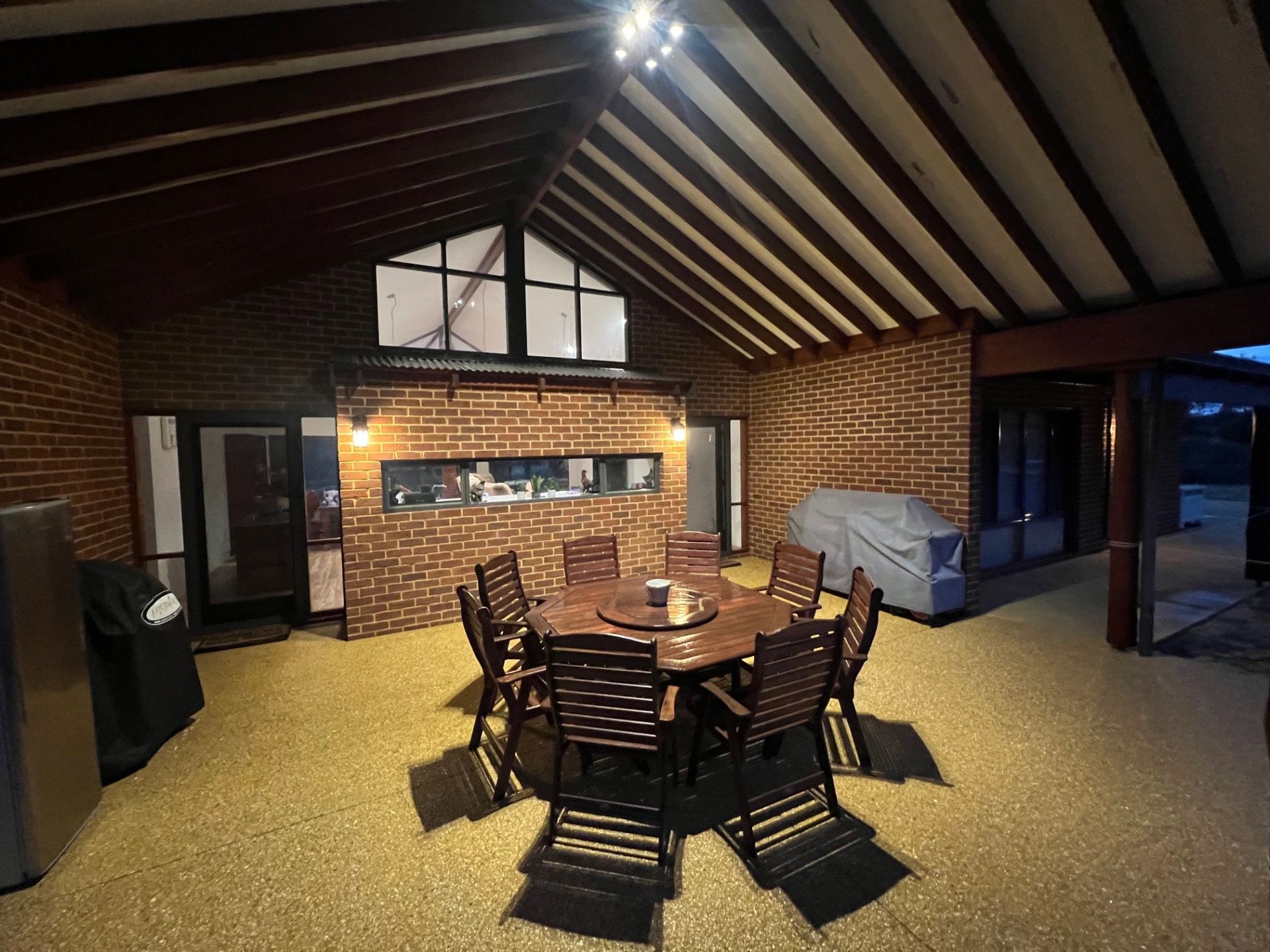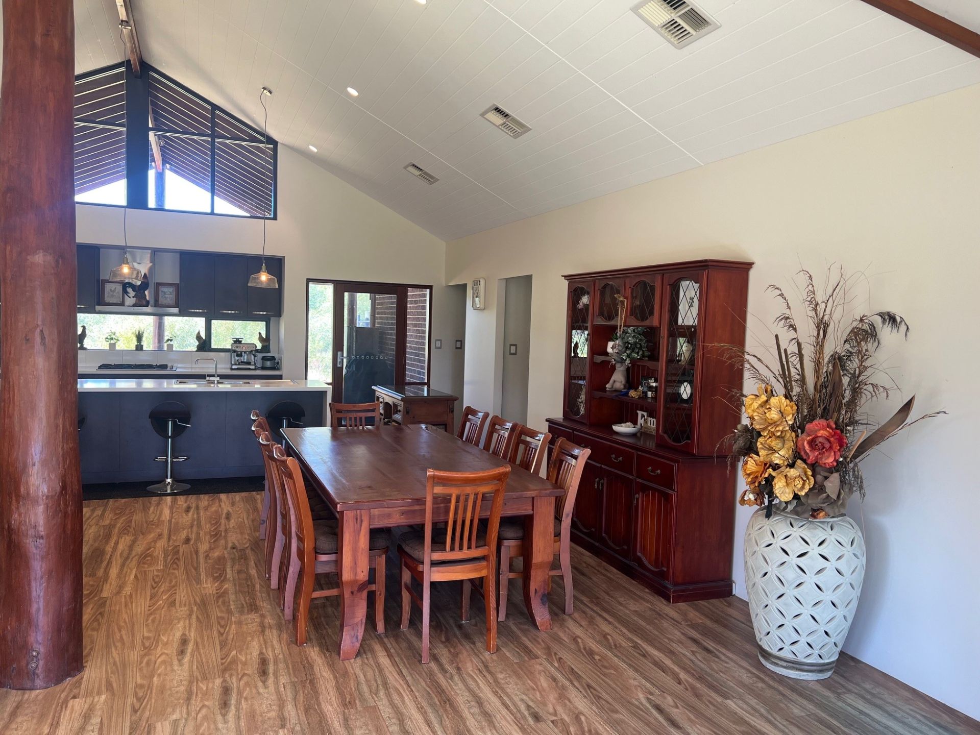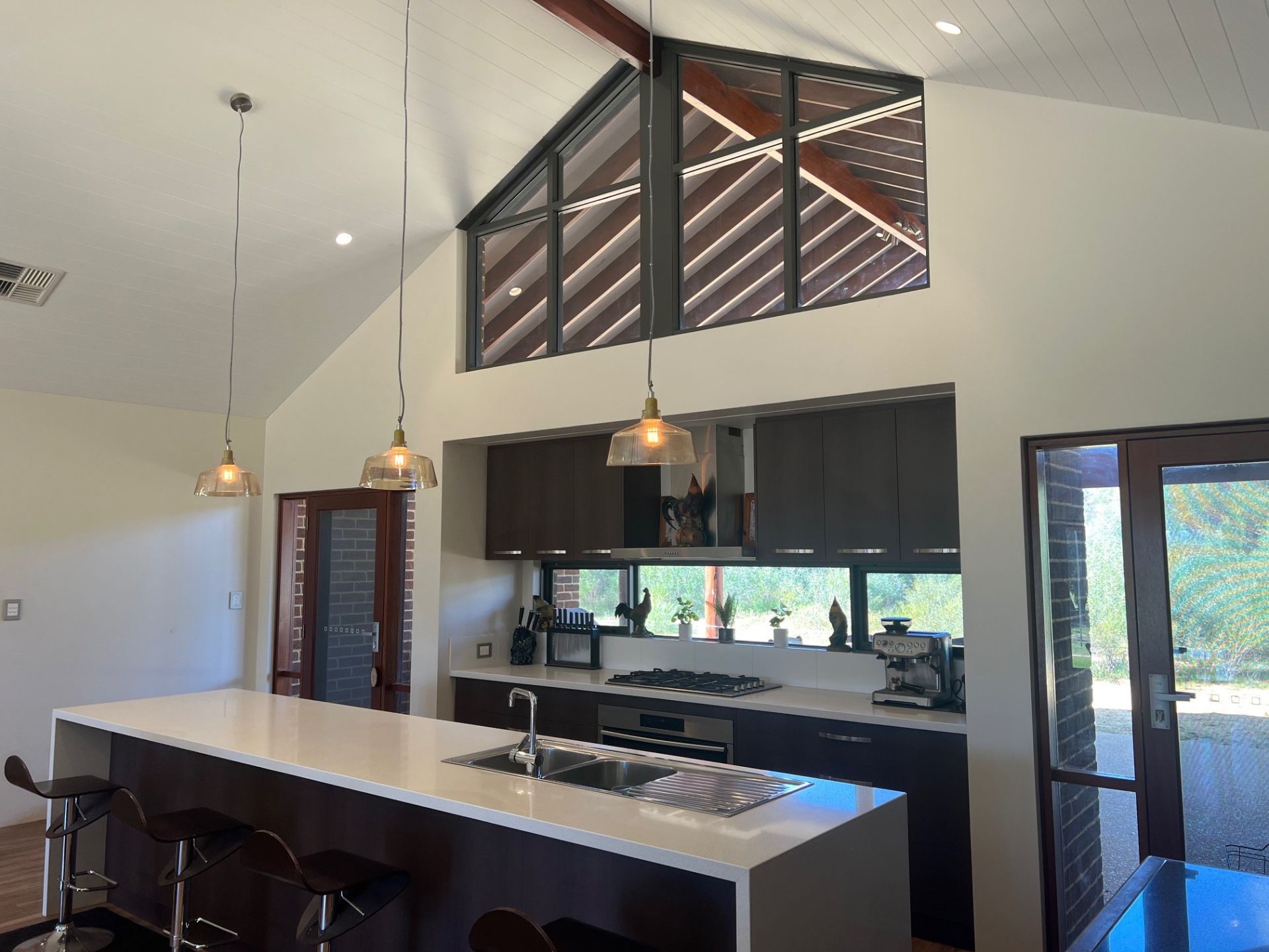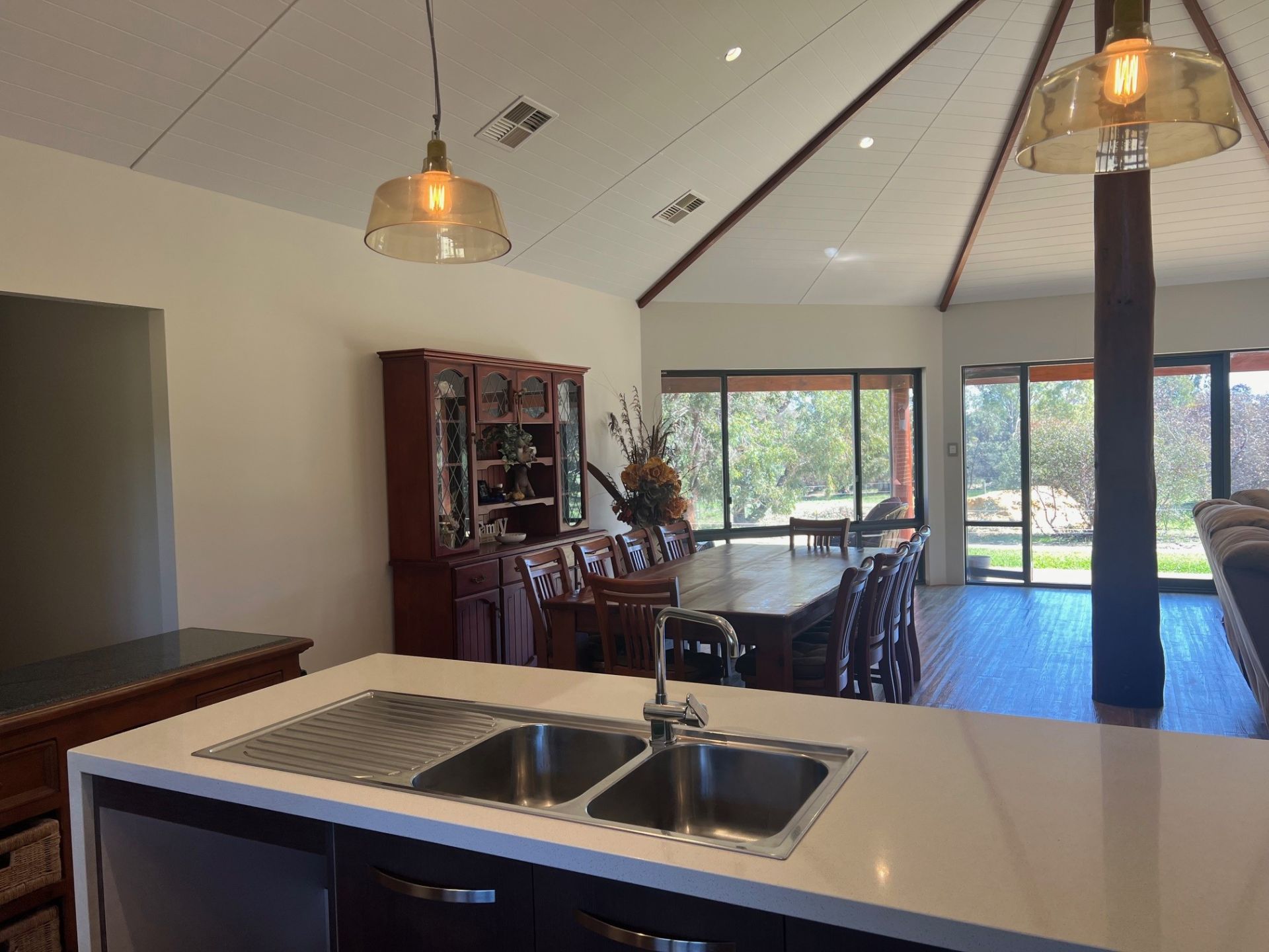 * 4 x 2 brick/colorbond home built in 2016 by Country Builders with a total roof area of approximately 446.53m2. Features: Open plan kitchen, living, dining room, raked feature ceilings, stone benchtops, butler’s kitchen, separate theatre room, home office, large alfresco area featuring exposed aggregate concreting and gabled ceilings, walk around verandahs to 3 sides of the home, 2 Fujitsu ducted area conditioning units, 2 x Rheem gas hot water systems.