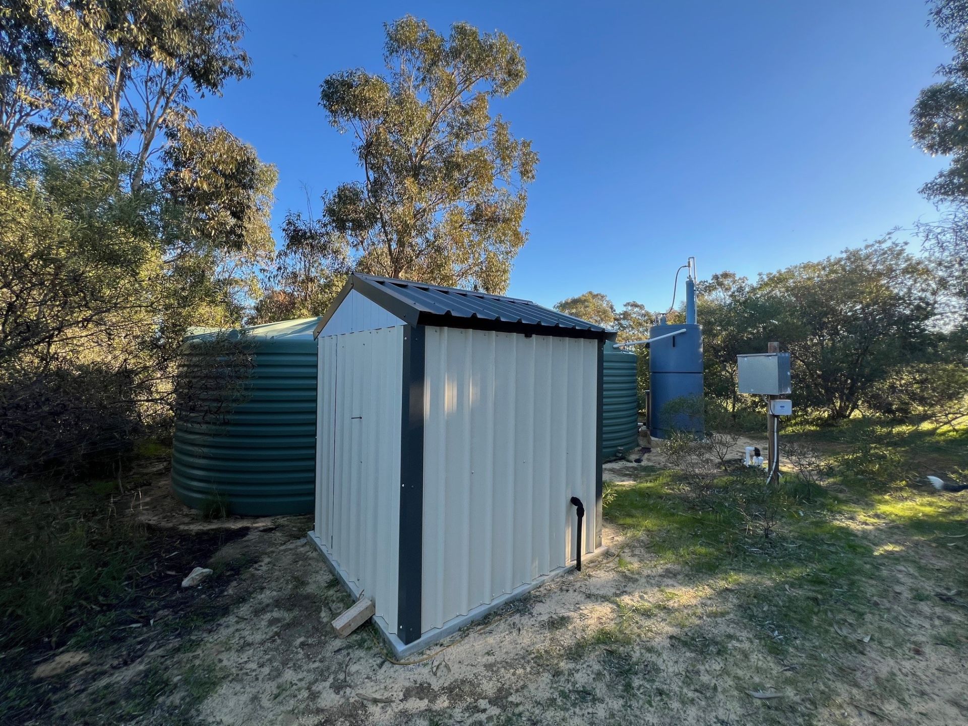 * 2 x 150,000 litre Pioneer rainwater tanks that feed solely to the house and shed, a further 2 x 23,000 litre bore water tanks that water the lawn/trees via a fully filtrated watering system. There is also a 15,000 litre Koi Pond with a low maintenance filtration system, stocked with high quality Koi, established with the intention of connecting to a vegetable hydroponic system for a totally organic food supply for the family.