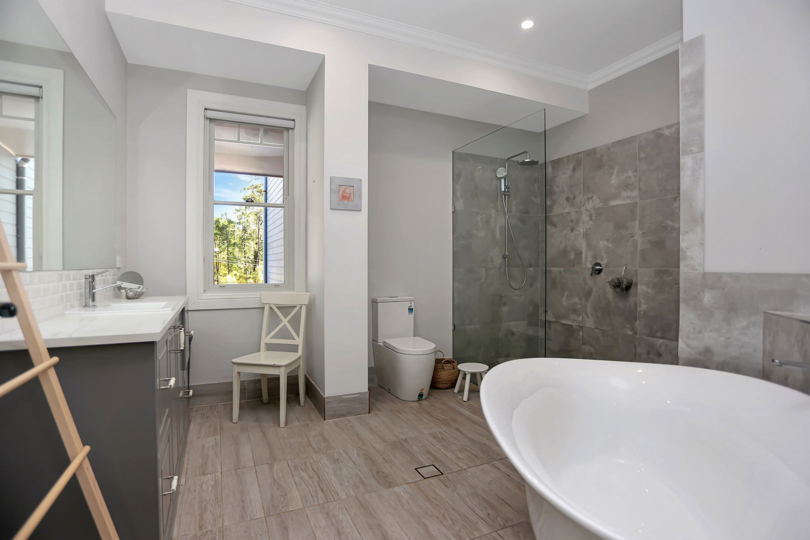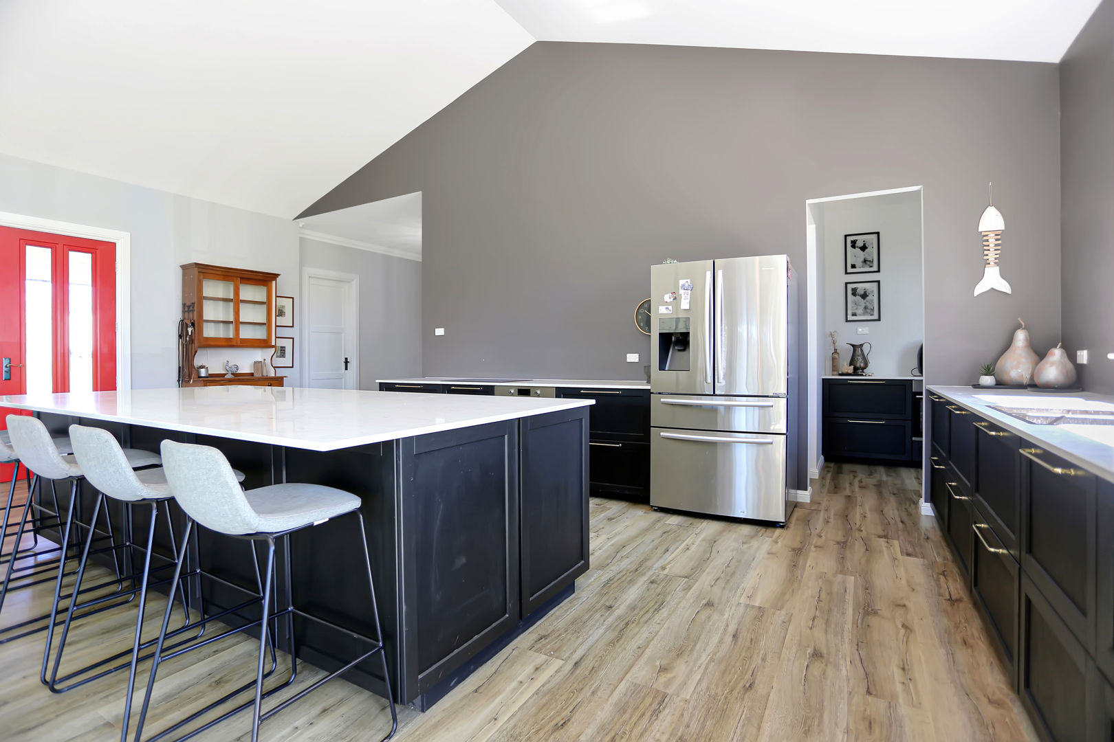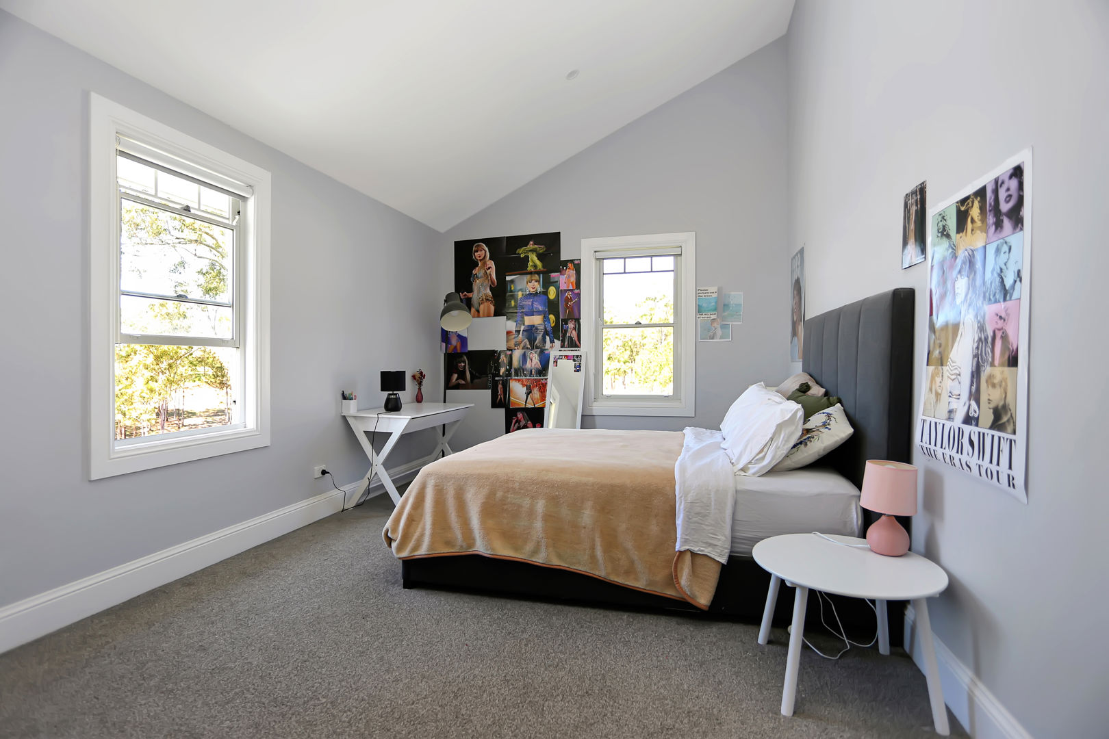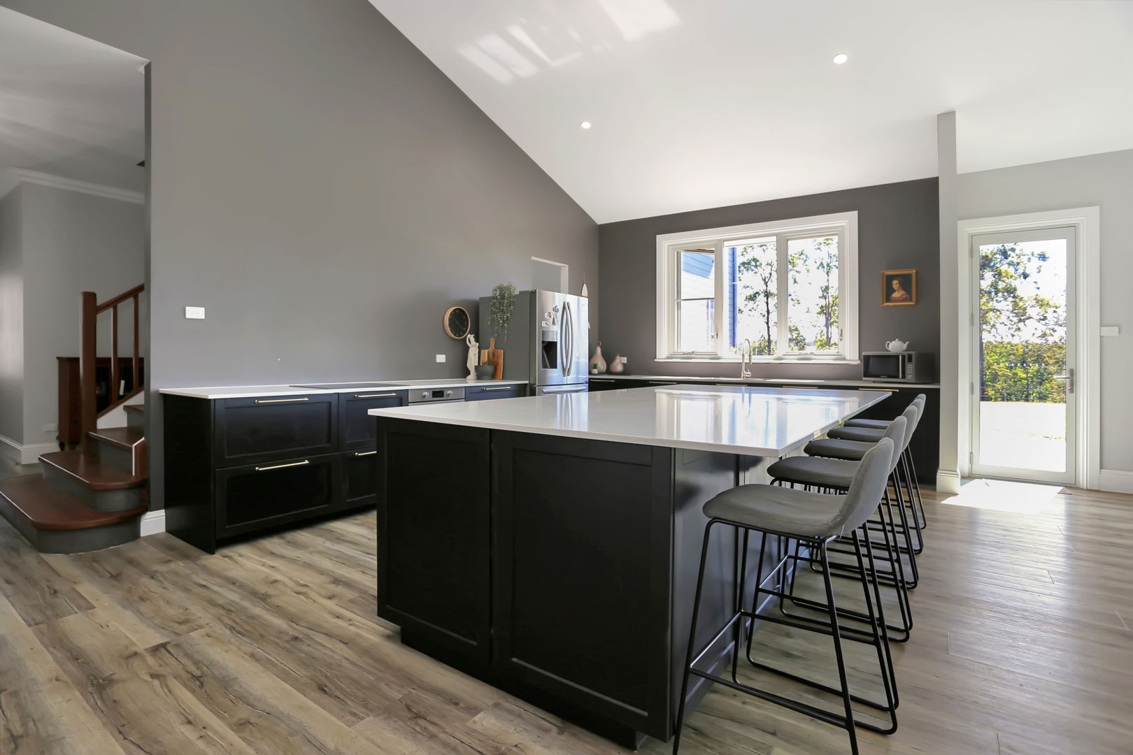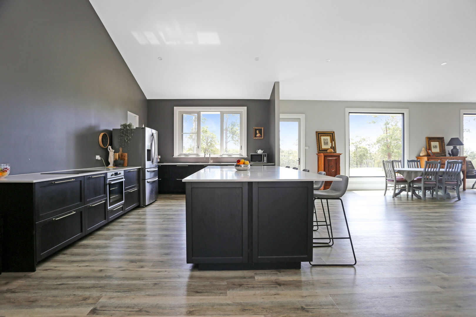 This home is a masterpiece of design, featuring an abundance of large windows and doors that fill the home with natural light. The expansive ground level consists of two guest bedrooms, a huge bathroom, laundry, media/games room and an office. At the heart of the home, the impressive open plan living area with soaring ceilings and large windows overlooking the property create a bright and airy space. Large sliding doors to the deck allow for beautiful breezes and the fireplace adds a cozy touch during the cooler months. Overlooking the living spaces, the kitchen is sure to impress; offering quality appliances, a huge island bench, plenty of cupboard space and a butlers pantry with a second sink and oven.
