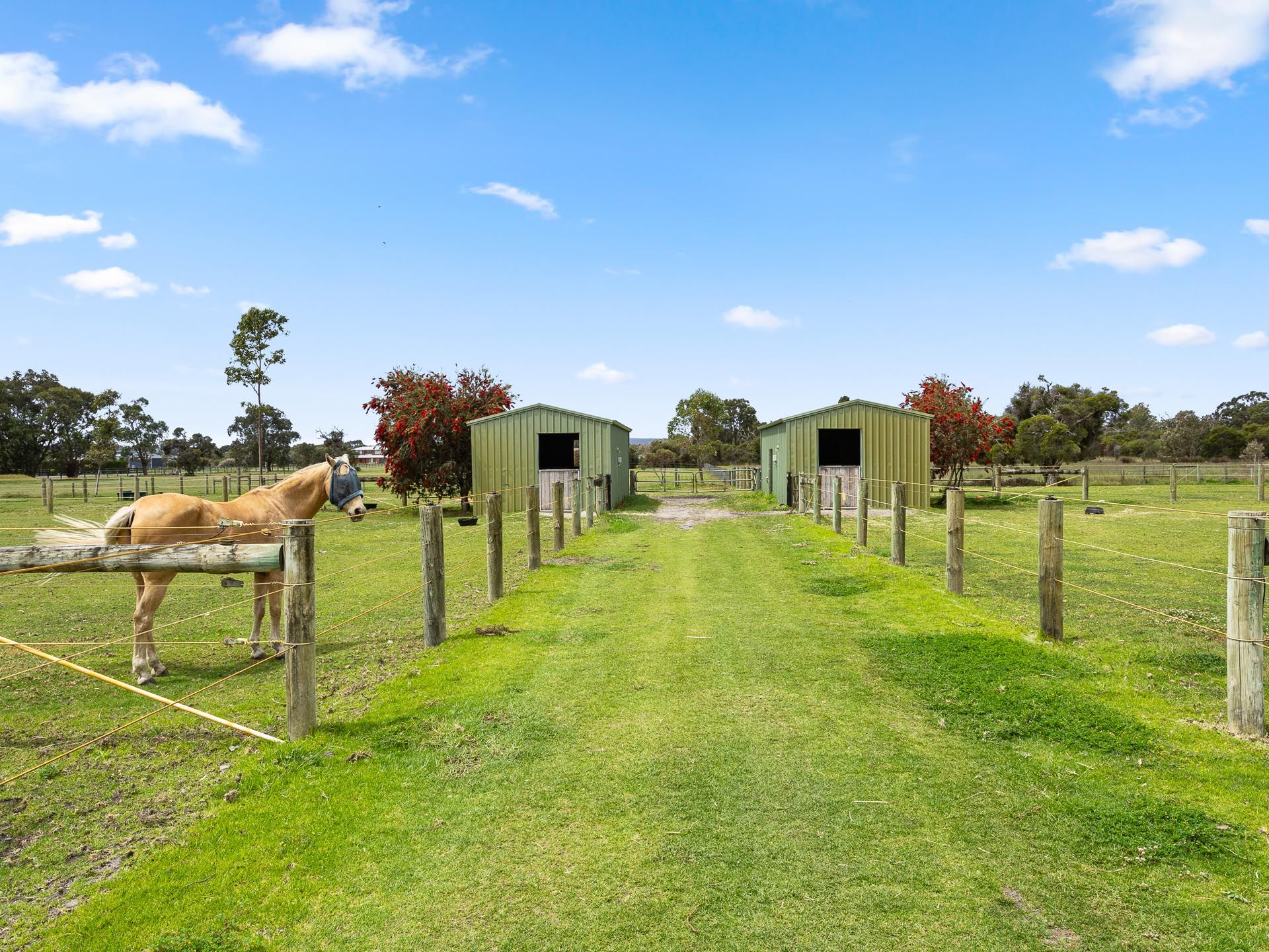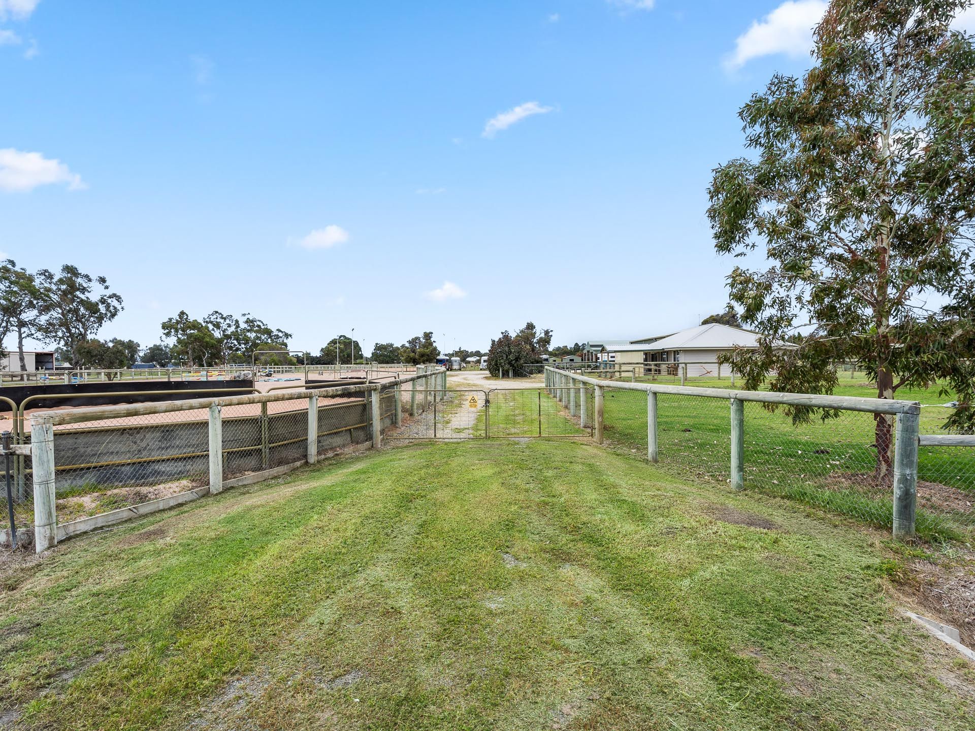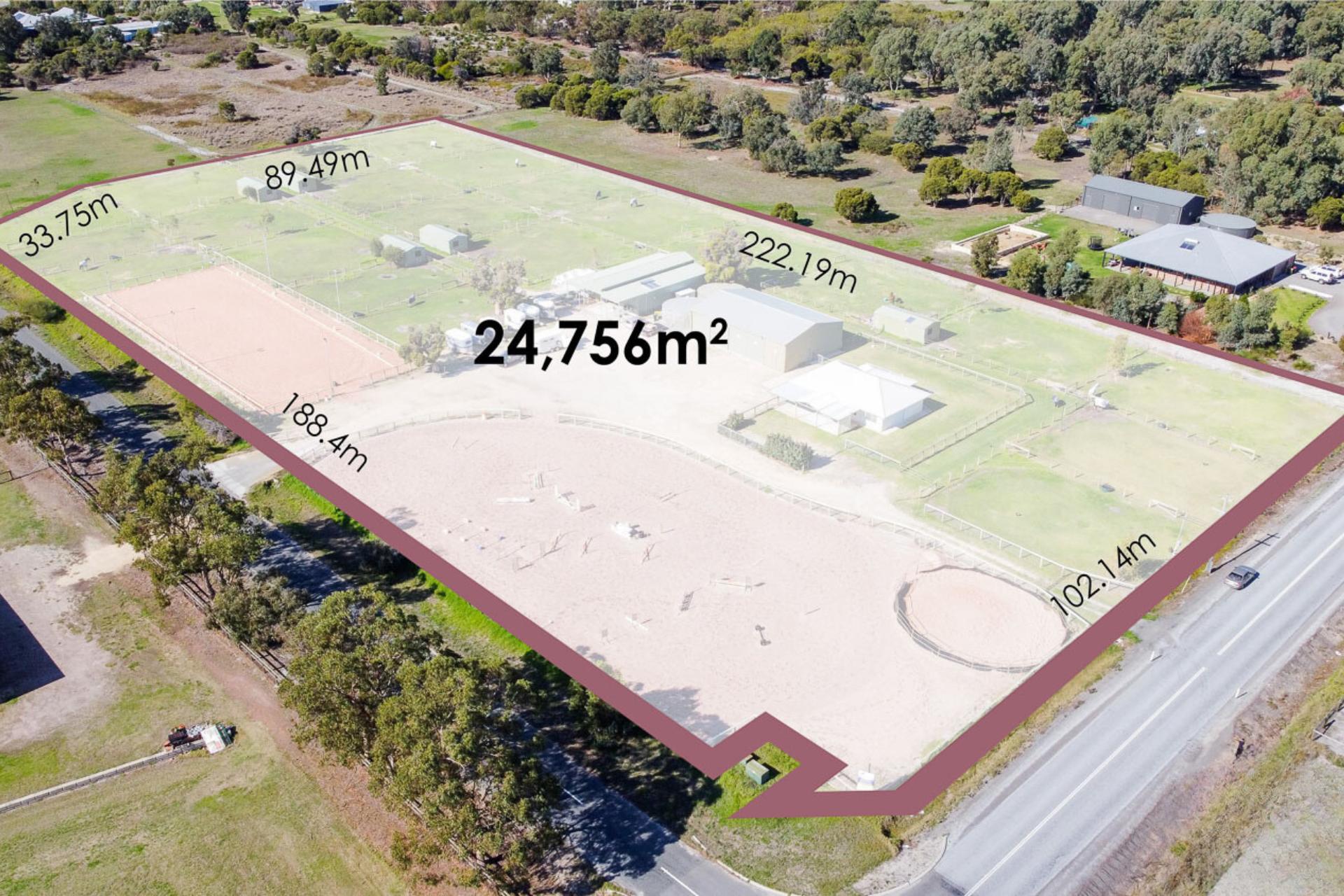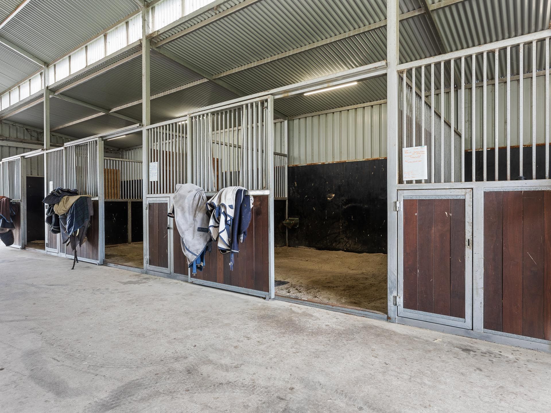 - 14 Steel framed stables, lighting on timers, troughs inside and outside - 20 x 13 feed shed with tack room including storage cupboards, shower, toilet, lunch room, washing machine - 22 paddocks purposely laid "dome" for excess water run-off allowing the horse paddocks to be the driest in the area - 65 x 25 limestone and riversand dressage arena under lights - 80 x 40 show jumping arena with round yard - 3 phase workshop - Septics with Filtrex system - Deep bore with licence for 14,000 kilolitres - 1x Concrete water tank (recently relined) - 1 x bore fed water tank - Fully reticulated property including all paddocks and residence - Electric fence with outriggers and hot wires - Electric gate with keypad - Security cameras - Parking for floats