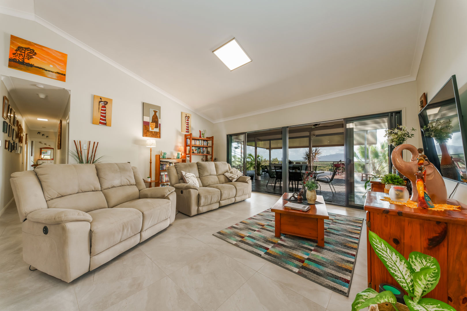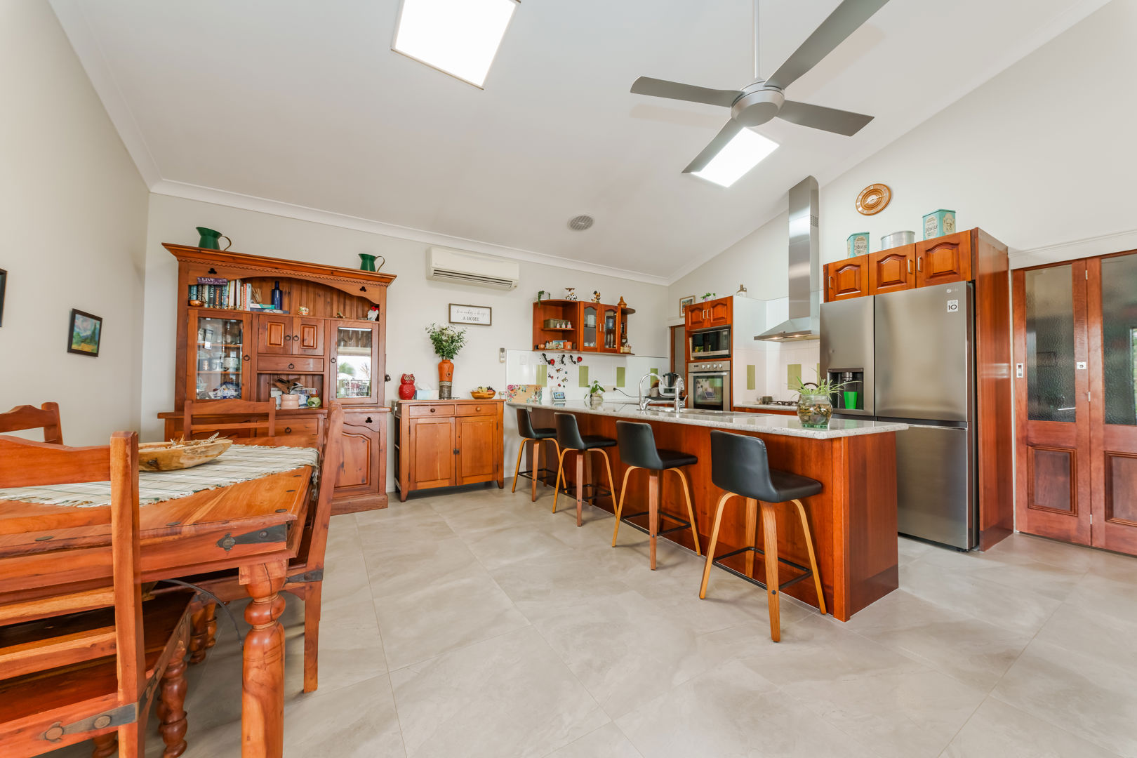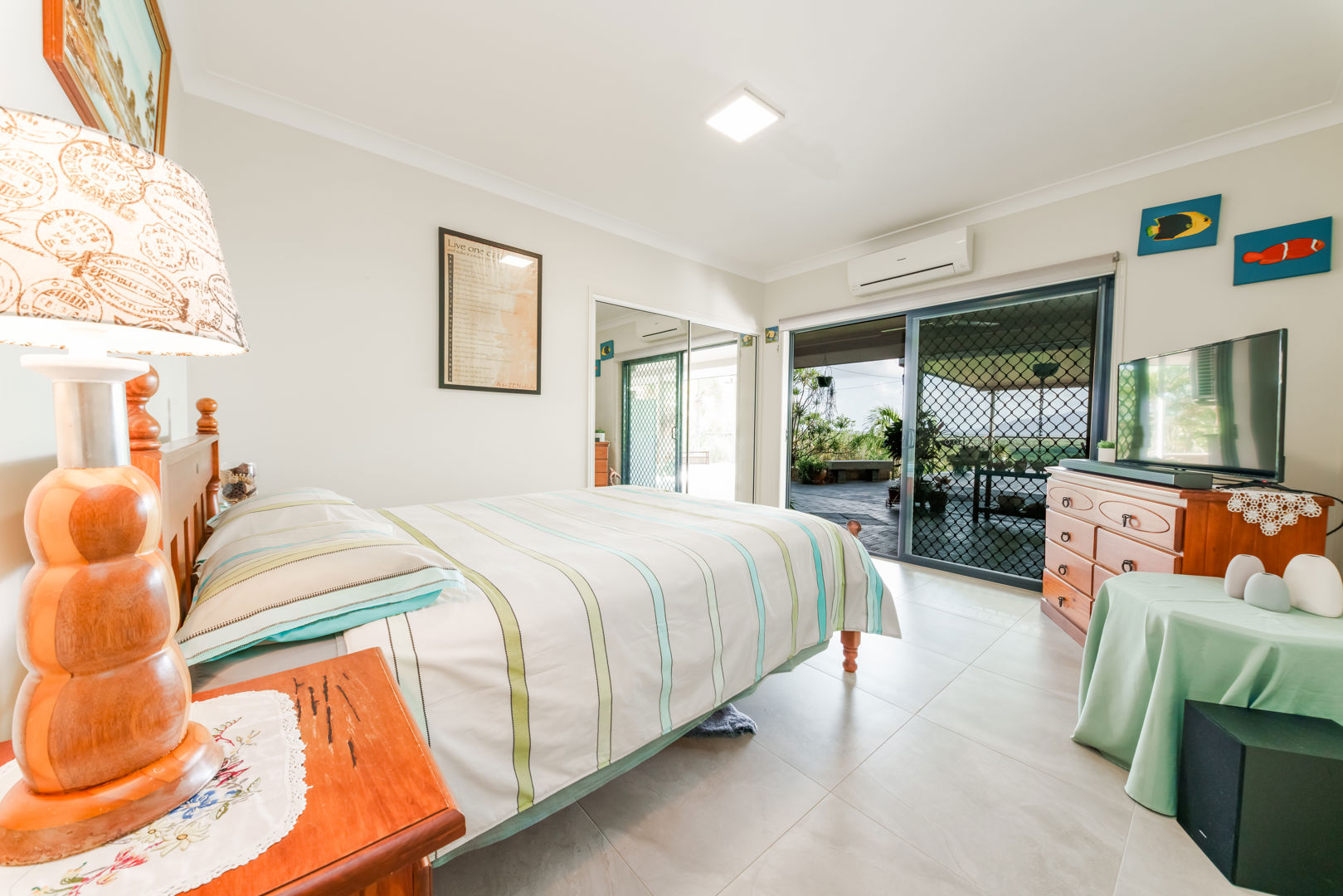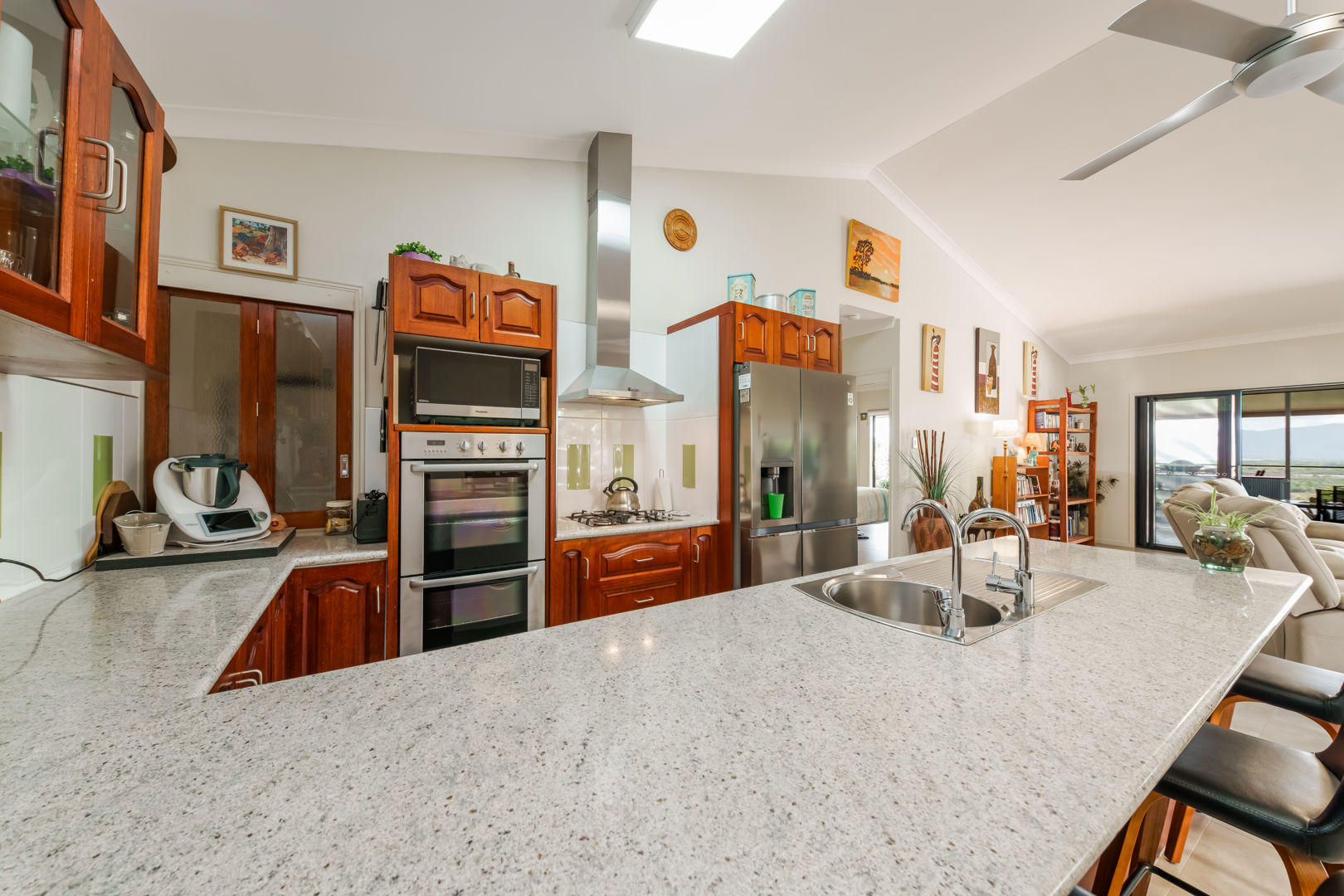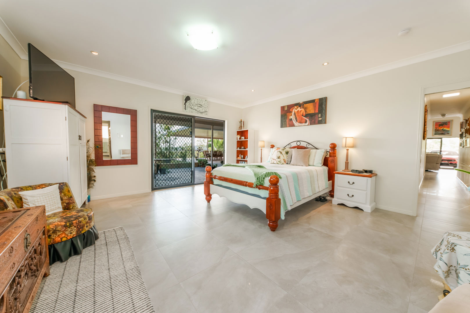 Step inside to find four spacious bedrooms, each fitted with built-in wardrobes and air-conditioning to ensure year-round comfort. The master suite is a retreat of its own, featuring a walk-in wardrobe and a private ensuite. Three bedrooms open directly onto the verandah through sliding doors, where breathtaking views await just beyond. Cool tiled floors, ceiling fans, and air-conditioning flow throughout, creating a refreshing and inviting ambiance.