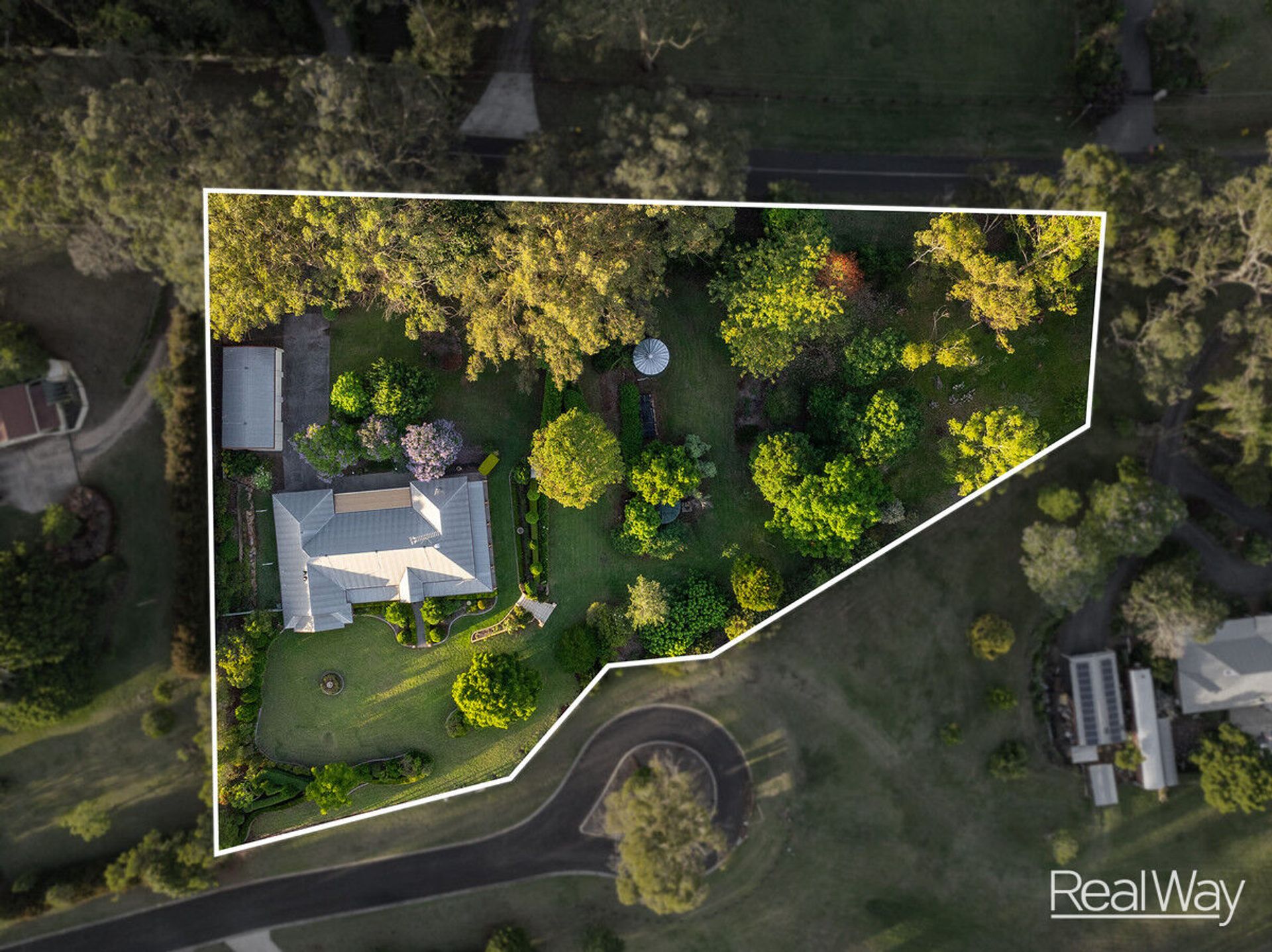 • Two-car garage with an additional triple-bay shed for extra storage