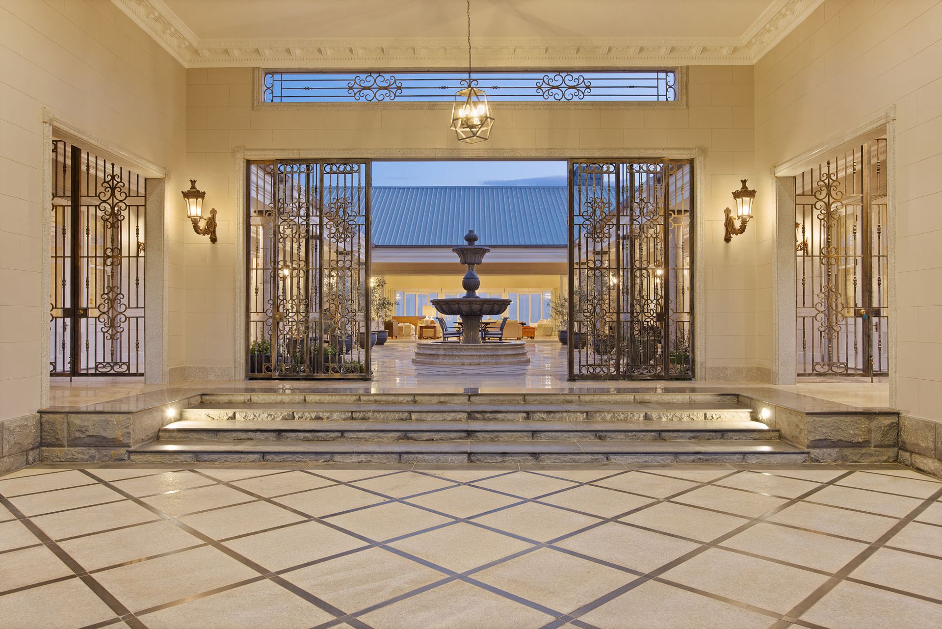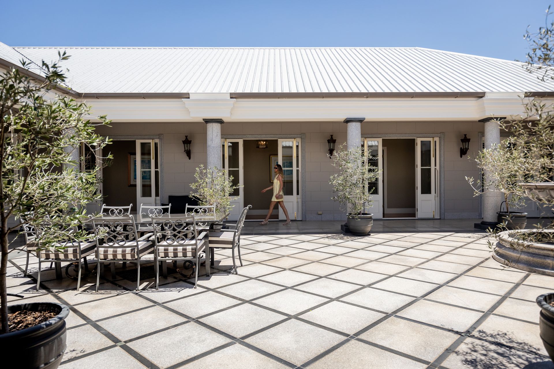 The estate itself is a masterpiece of architectural craftsmanship, meticulously constructed over three years. Imported granite graces the exterior, blending harmoniously with the surrounding landscape, while the opulent porte cochere leads into a breath-taking peristyle courtyard that forms the heart of this luxurious residence. The interiors are equally stunning; herringbone parquetry floors throughout exude timeless elegance, while a stunning granite fireplace serves as the center-piece of the grand living area, framing unforgettable views of the surrounding countryside.