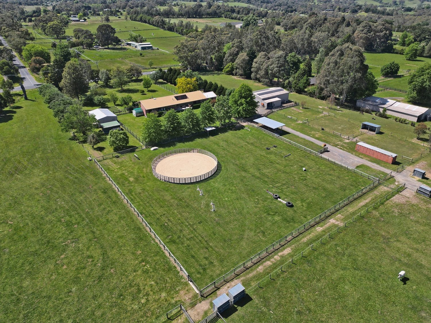 Equestrian enthusiasts will be thrilled with the property's facilities, offering 45 acres divided into 17 paddocks all with electric fencing, a loose box, automatic water troughs and laneway access. The property is currently running a successful horse agistment business, with plenty of space for more horses. The large sand round yard and two wash bays cater to training, while the tack room and undercover bays offer convenient storage for all your equestrian equipment. There is also a riding paddock and direct access to trails along Coranderrk Creek, perfect for peaceful horseback rides.
