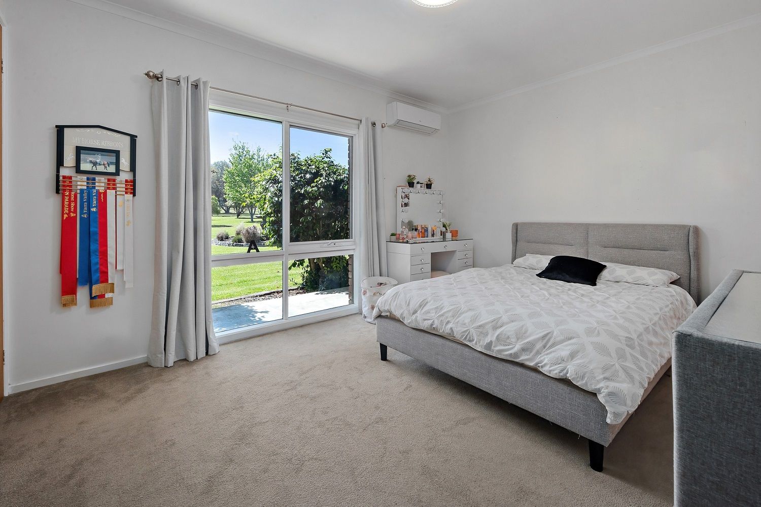 In addition to its equestrian facilities, the property offers a wealth of farming potential. Including a cattle crush. Featuring two Colourbond sheds with high clearance, a small orchard of mandarins, apples, lemons, pears, and 30 hazelnut trees, along with garden beds and a hothouse, provide ample opportunities for growing your own produce. The large, fox-proof chicken coup and adjoining stable area are perfect for expanding your farming ventures. Sustainability is key, with 27 solar panels (10kW), the property runs on mains water with the addition of rainwater tanks and modern systems, including ducted vacuuming and five split-system air conditioning units.