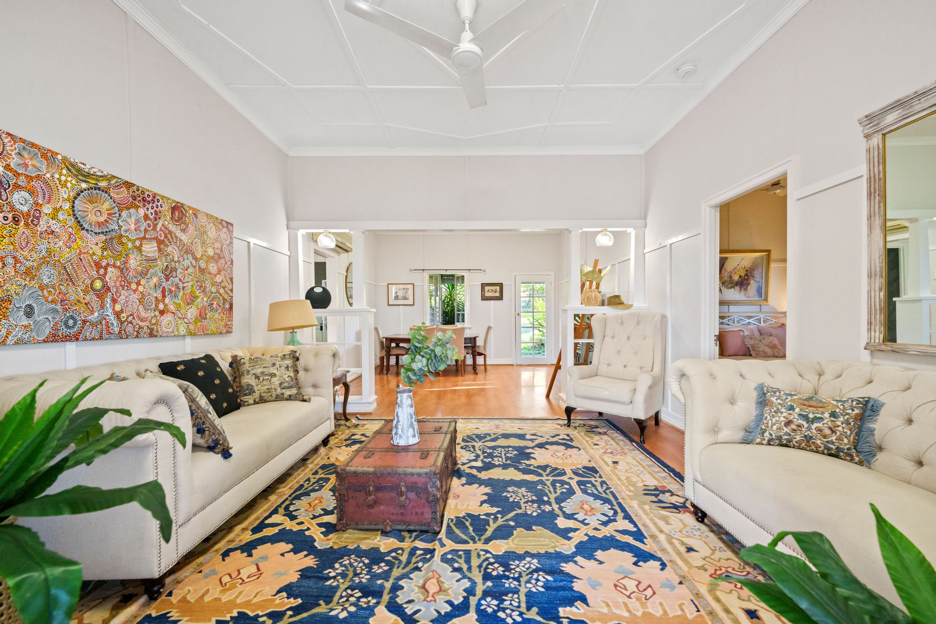 The first house features a wrap-around verandah, perfect for enjoying the north-east aspect. Inside, the kitchen opens into the dining and living areas. There are three bedrooms, each with ceiling fans, and one with built-in robes. The bathroom includes a claw-foot bath, and there is a separate powder room. The large laundry could be converted into an ensuite, and the living areas are air-conditioned for comfort.