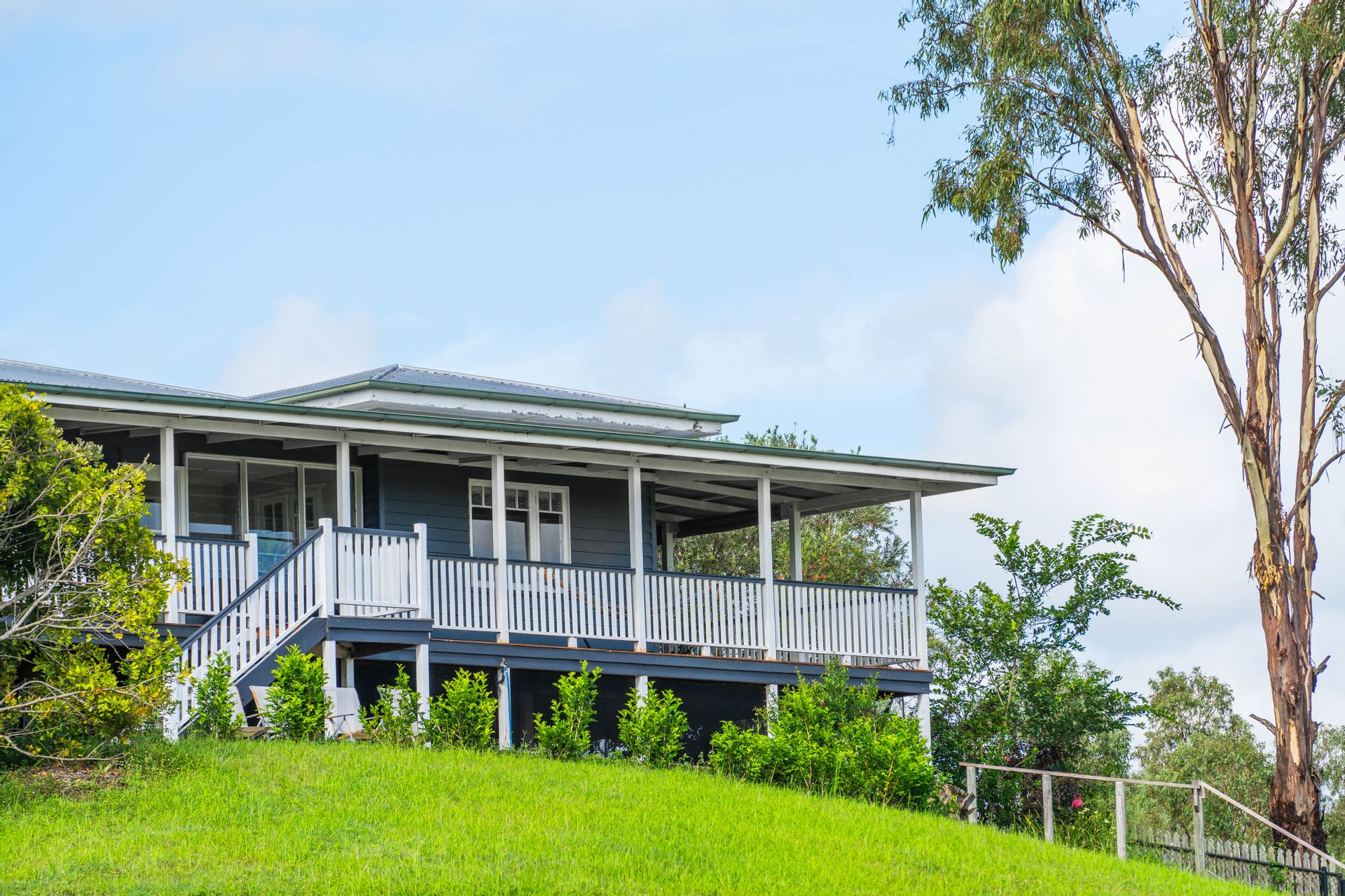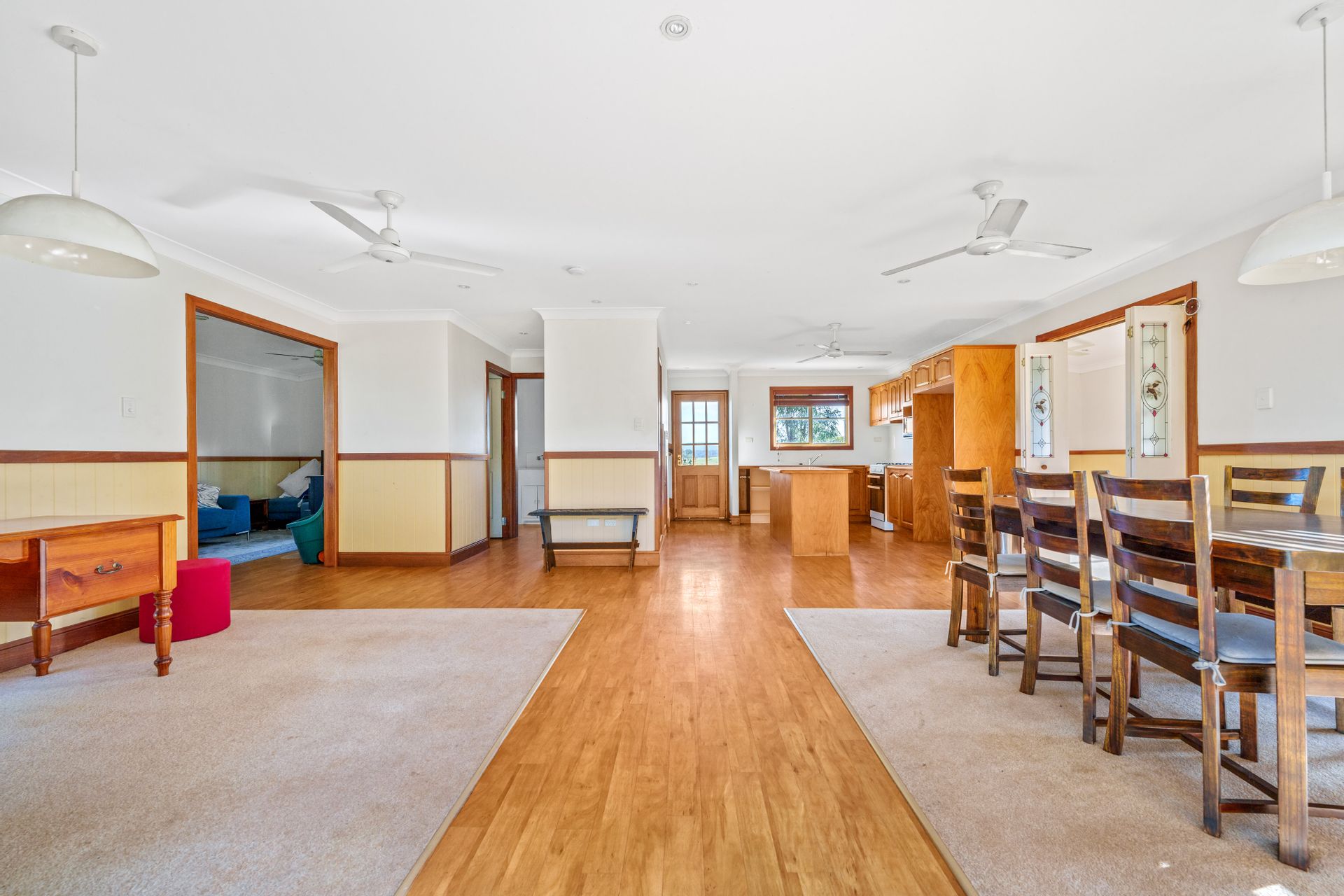 The second house is fully off-grid, with a 14KVA battery system, solar panels, and a 7KVA diesel generator for backup power. The home has four bedrooms, three upstairs and one downstairs (which could also be used as an office). The kitchen and dining area are open-plan, and the living room has a fireplace. There is a bathroom upstairs with a separate toilet and a powder room downstairs. The laundry is functional and can be updated if needed. The property also includes a chook pen.