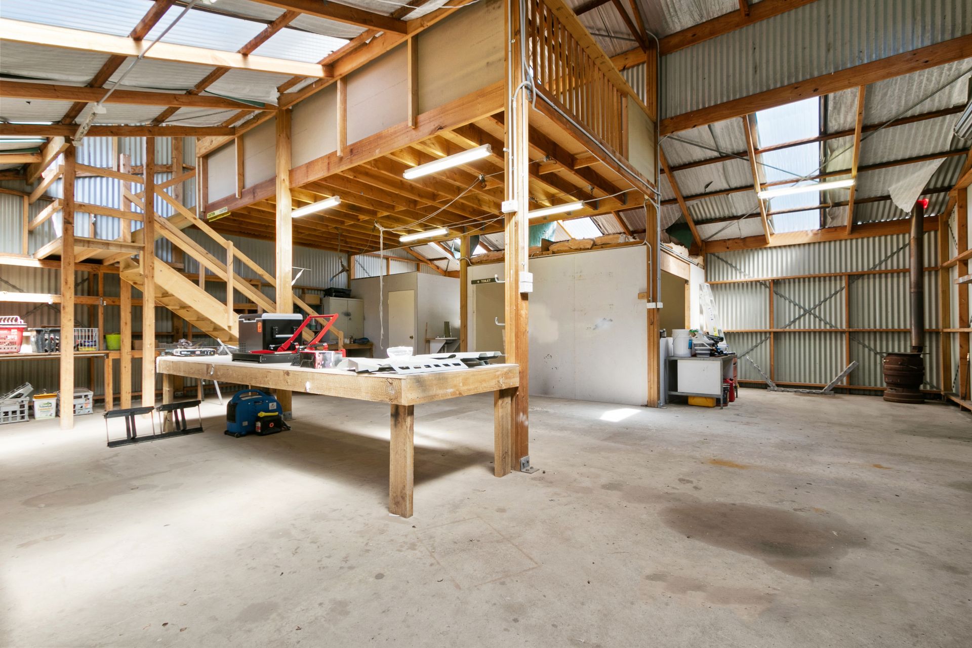 • The out buildings include a large machinery shed, a barn style shed with mezzanine loft, and a stable with tack room.