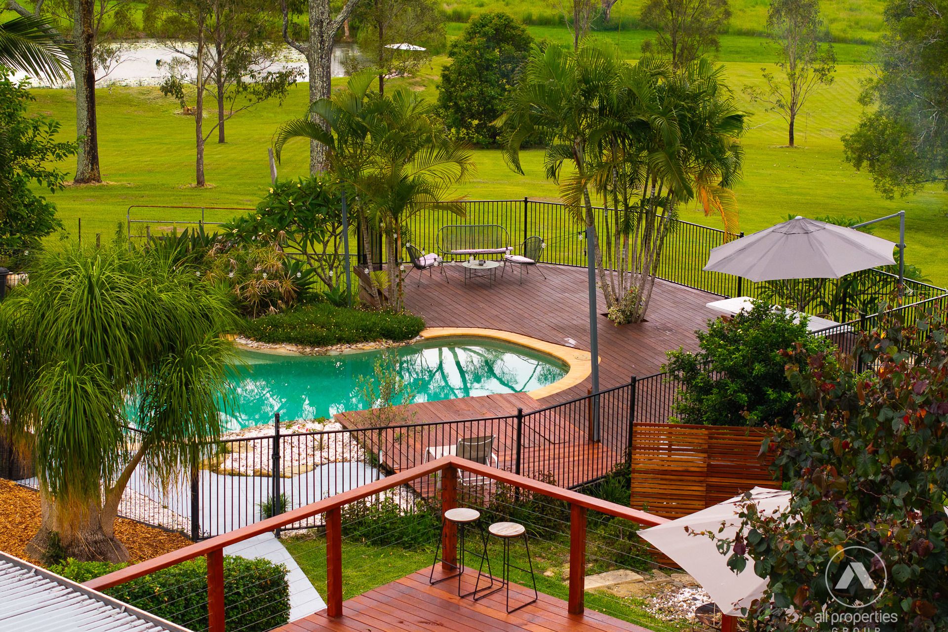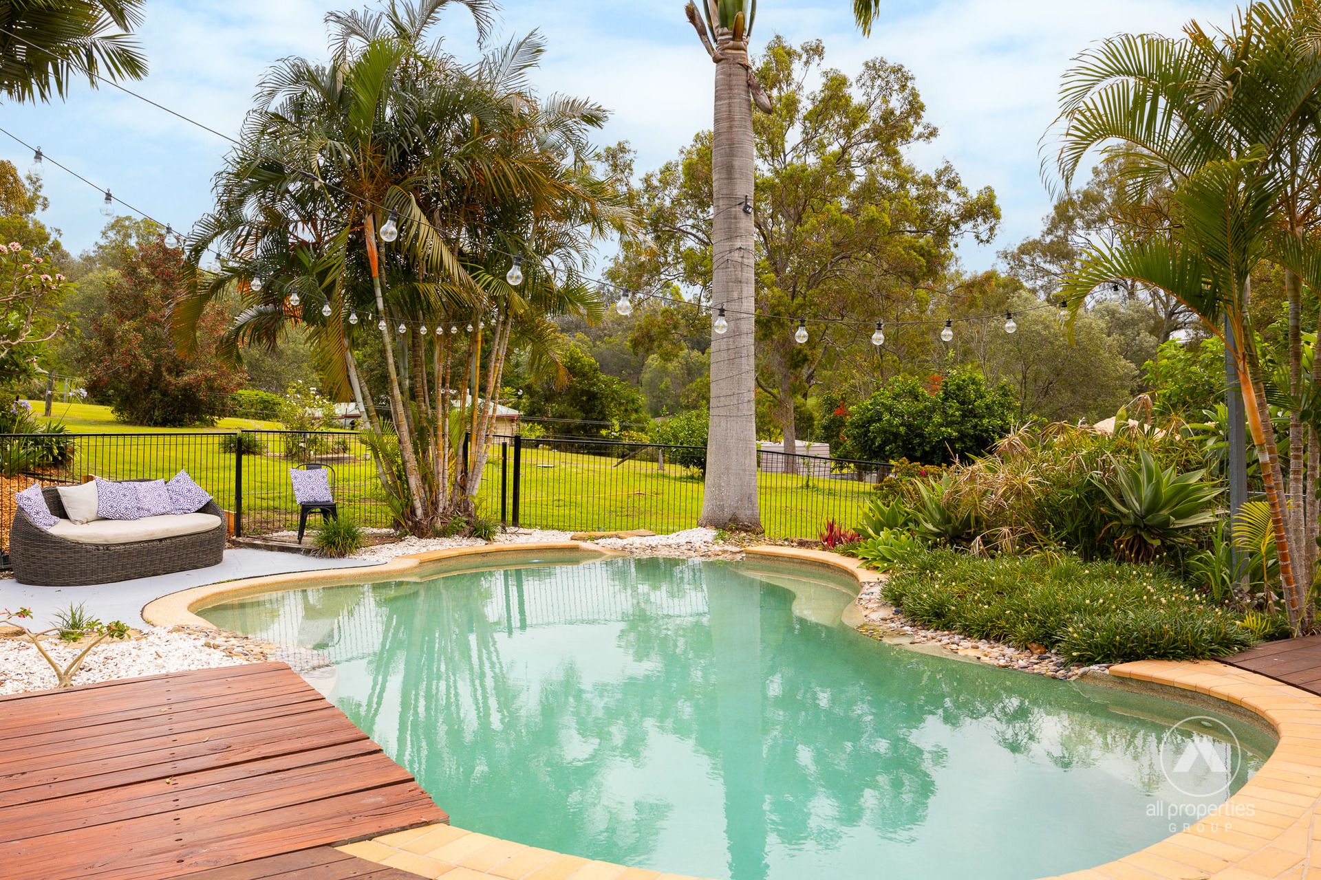 The fully fenced 5-acre property is a lush field of dreams: