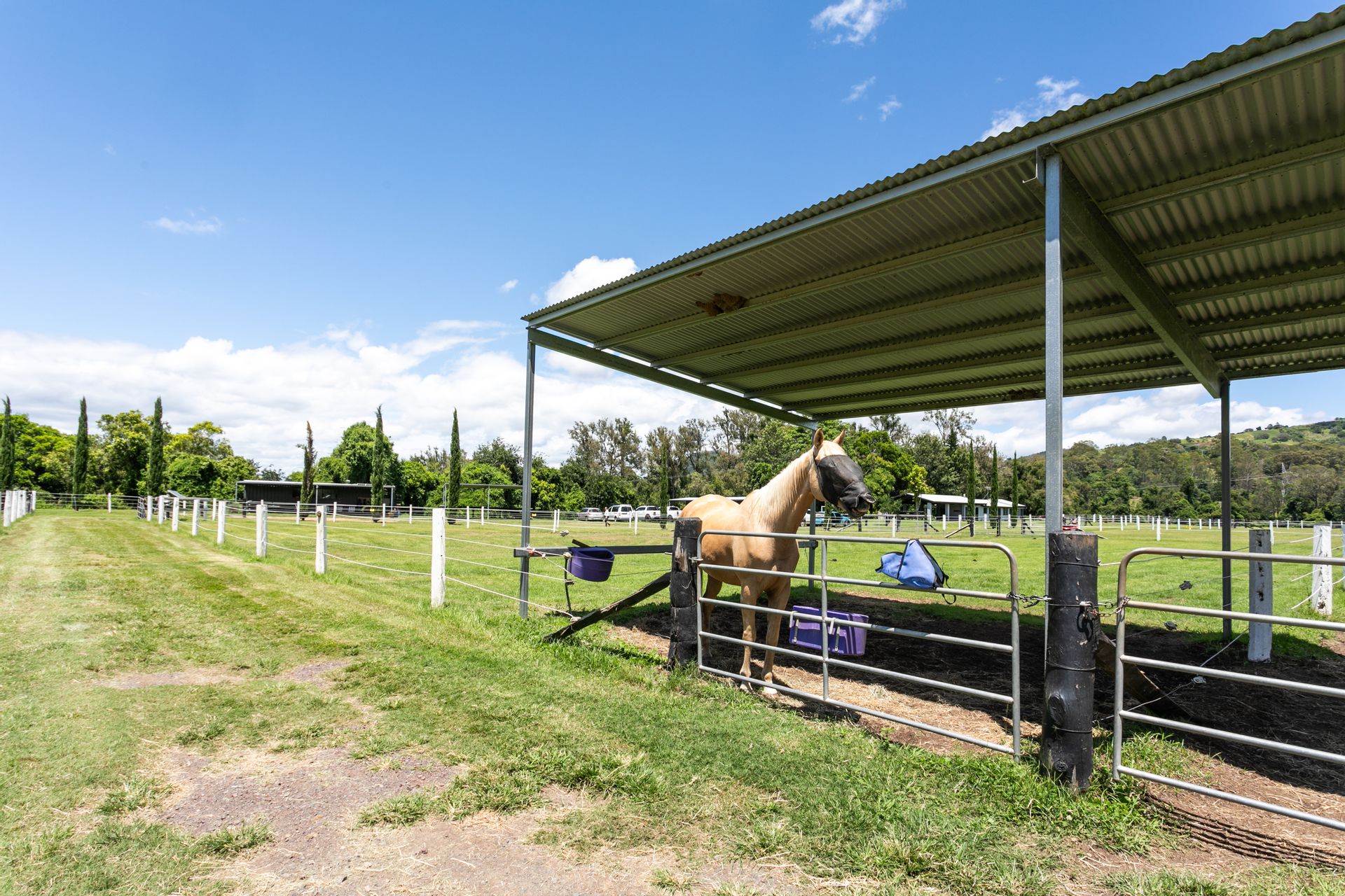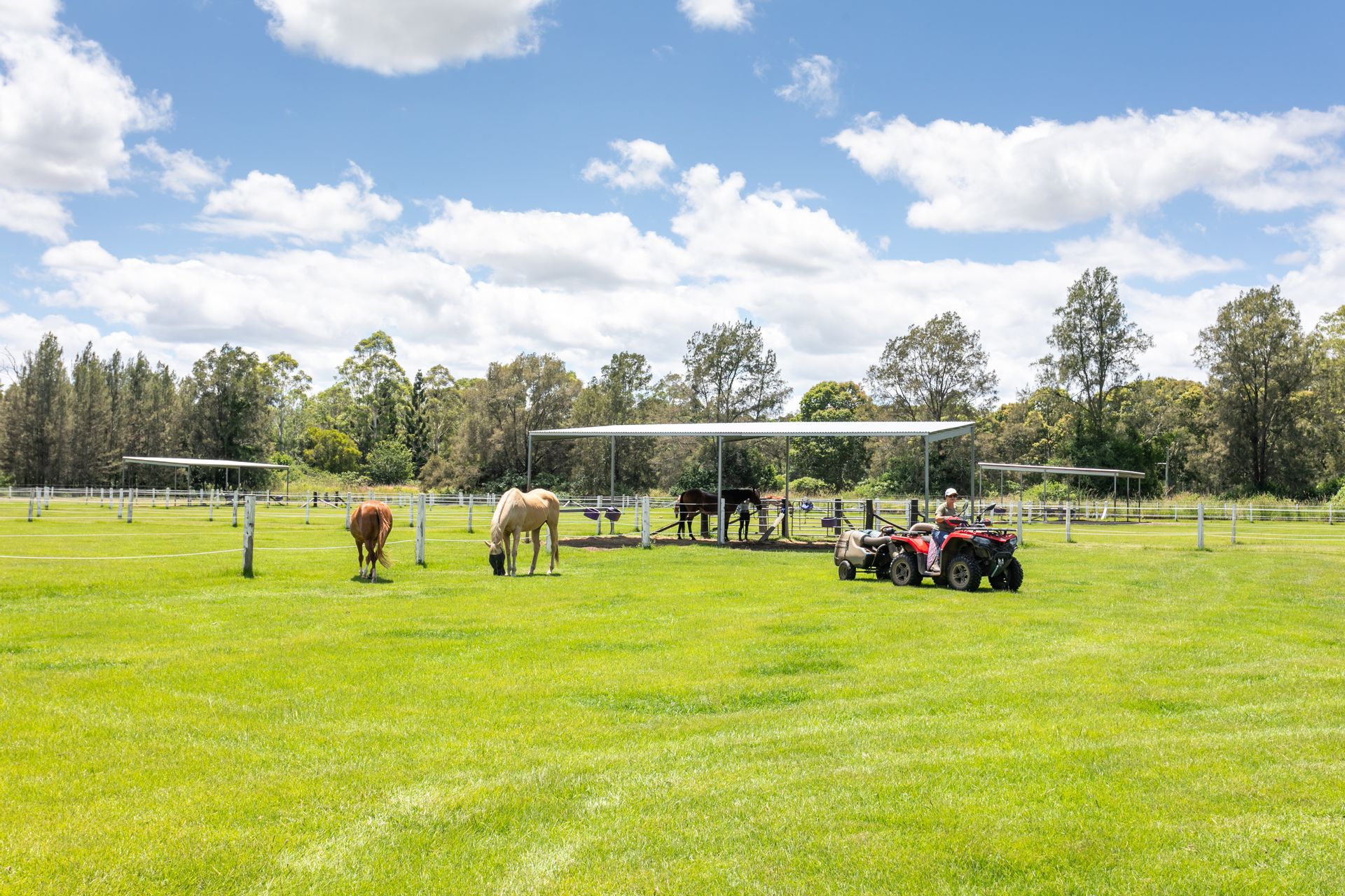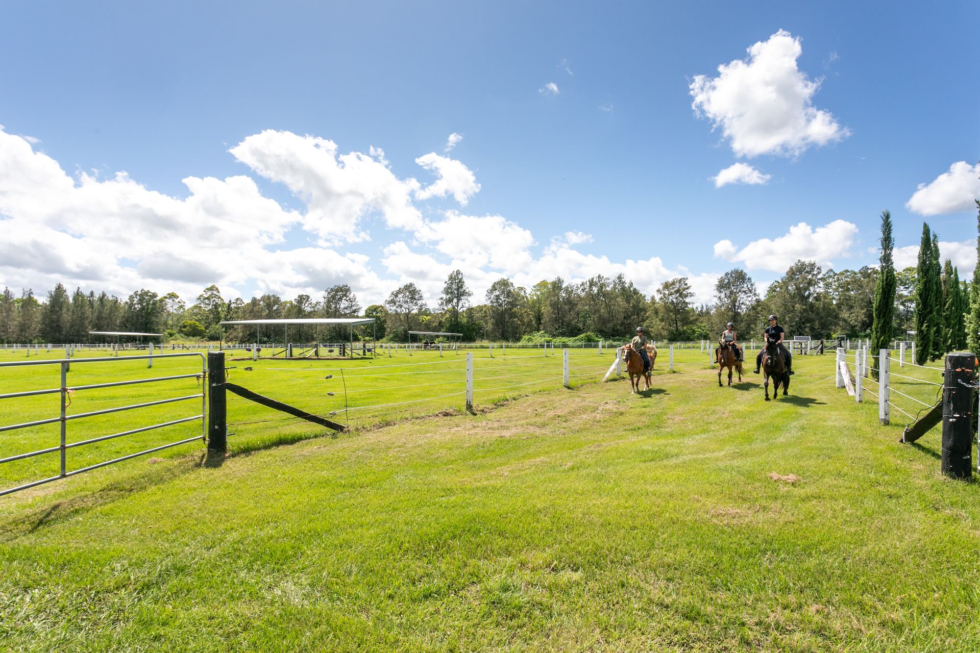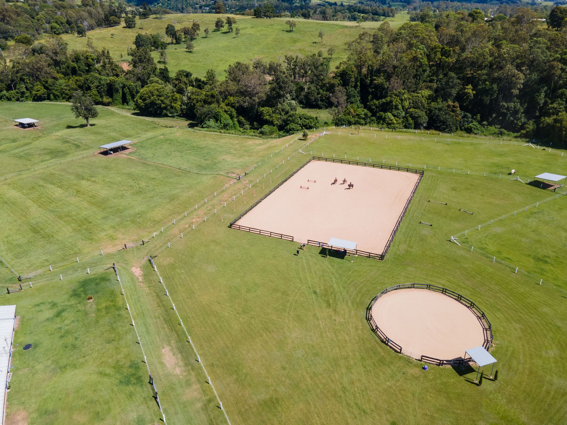 Large-scale Horse Agistment Facilities: • 19 spacious paddocks, each with individual shelters and automatic water troughs. • 60m x 40m sand arena for training and competition. • 25m round yard with shelter and ample space for horse work. • Large riding area and creek access for picnics and water fun. • 3 wash bays with easy access to paddocks (on demand water from creek). • Viewing shelters for arena and round yard. • Solar equine electric fencing for the whole property. • Large submersible pump capacity to service 12 pods of K-line irrigation for future expansion. • Mowed laneways between paddocks, offering full access to the entire property via vehicle. • Storage and Tack Rooms: 2 large containers with covered verandas converted into tack rooms, providing lockable storage and individual tack holders for each horse. • Additional storage includes a 3-bay shed for vehicle parking and storage. • Large carport structure for additional covered parking. • Fully fenced boundaries ensuring privacy and security.