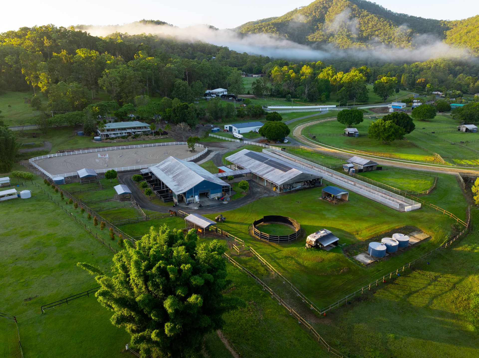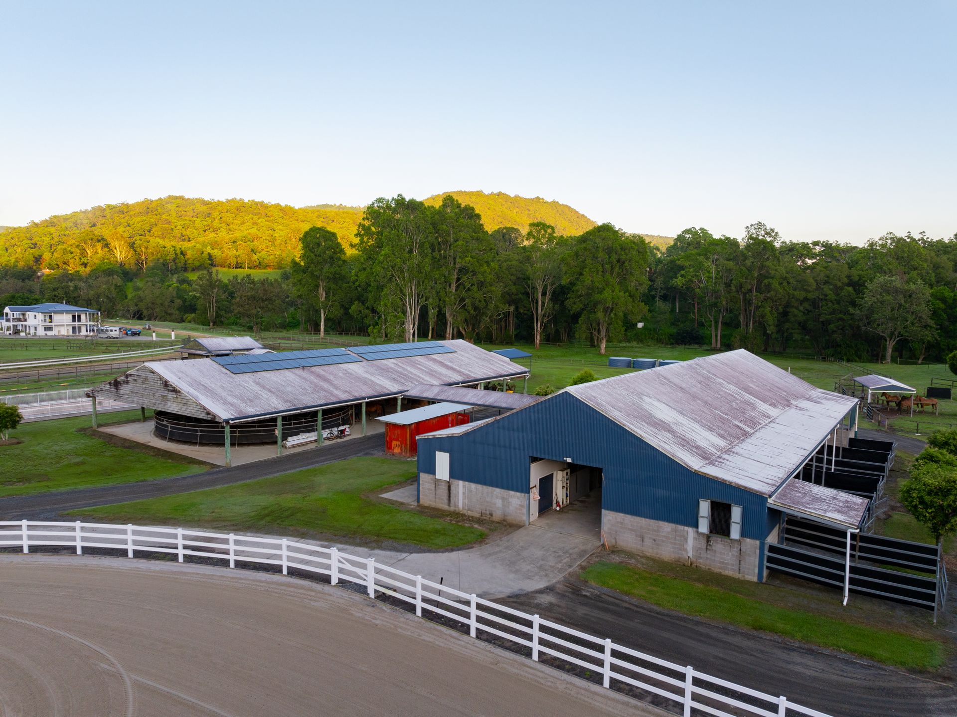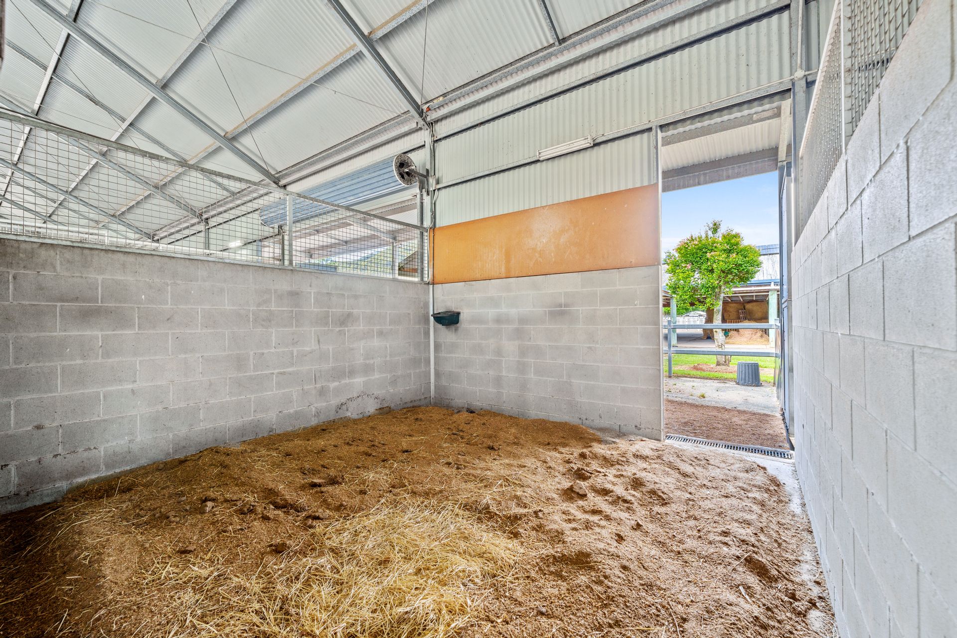 • Stable Barn: 11 boxes including stallion barn, feed and tack rooms, washroom and bathroom • Huge equestrian sand arena • Undercover: 8-horse walker, round yard, hay storage and work area • Outdoor round yard and machinery shed • 84m long horse swimming pool • Multiple paddocks with solid fencing, some with shelters