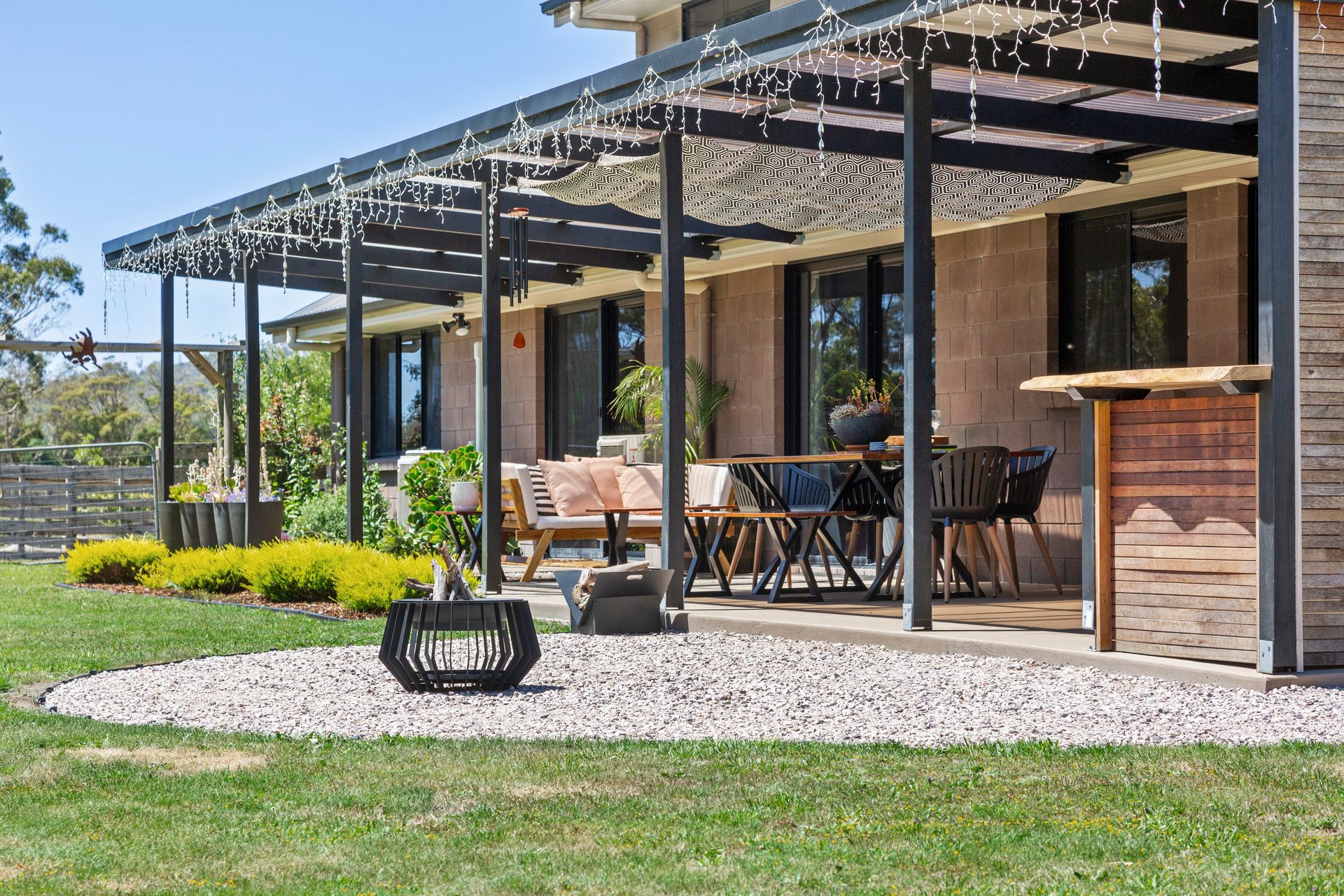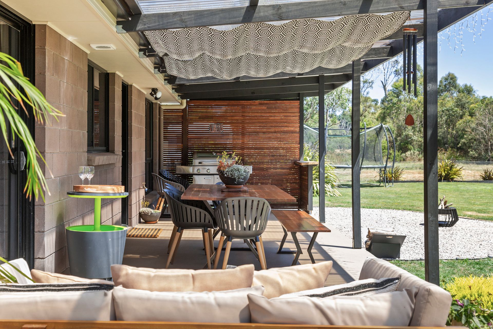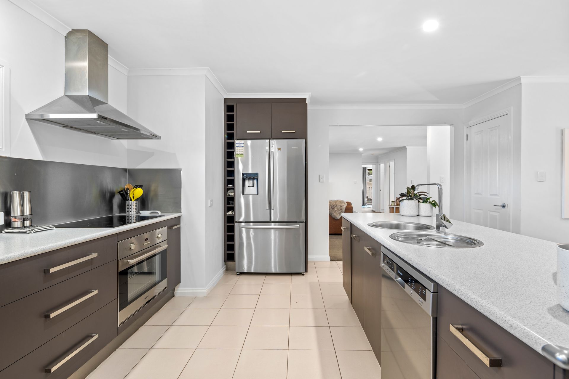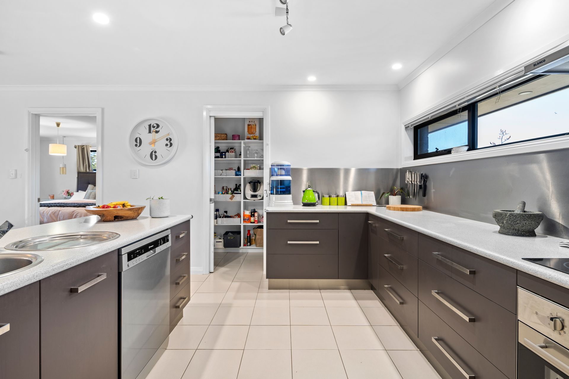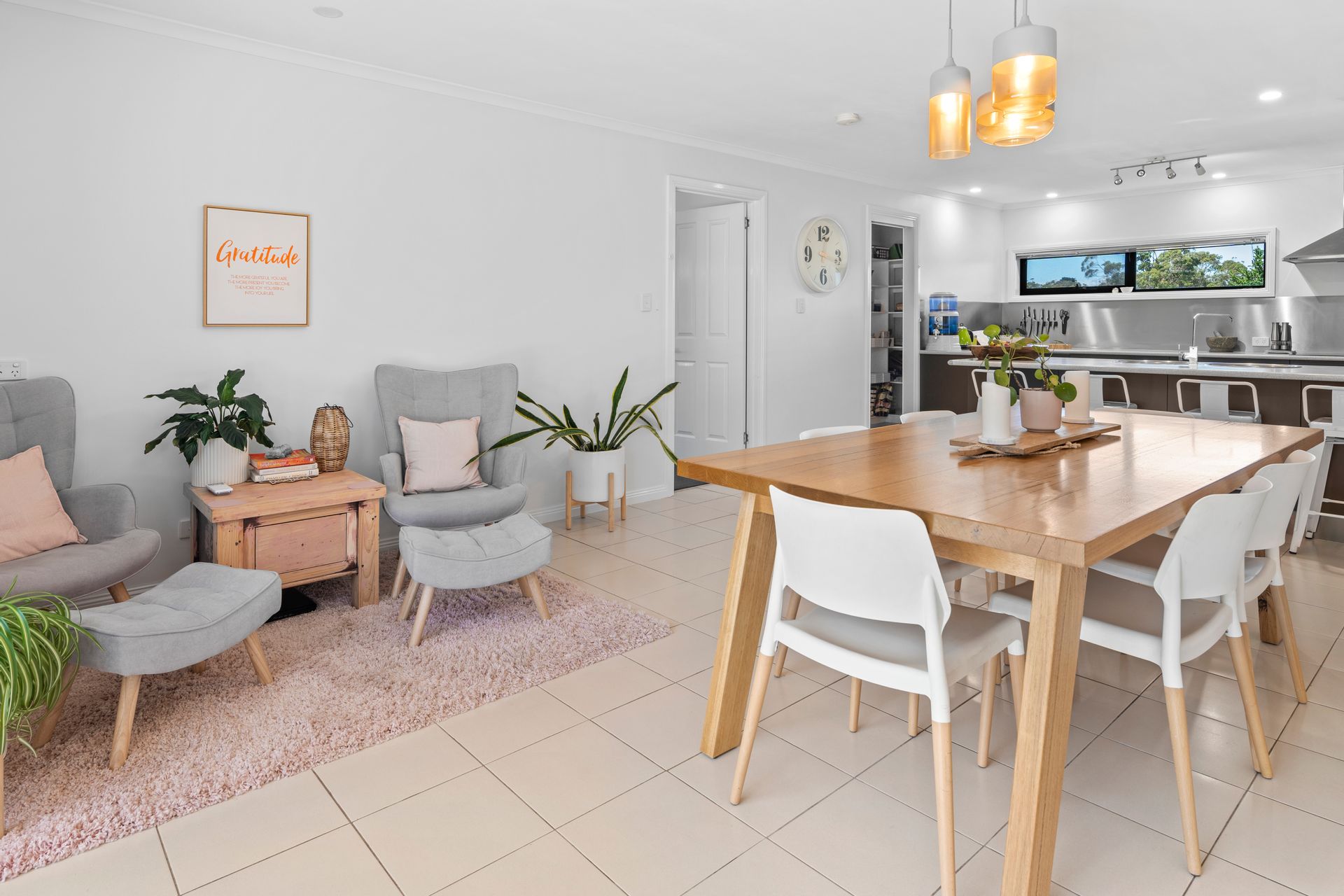 This five-bedroom, two-bathroom home boasts a 251-square-metre layout thoughtfully designed to accommodate both functionality and flair. The open-plan kitchen, dining, and living area forms the heart of the home, with seamless flow and a warm, inviting atmosphere. The kitchen's walk-in pantry ensures space for every culinary creation, while the adjoining laundry with outdoor access adds practicality to family life.