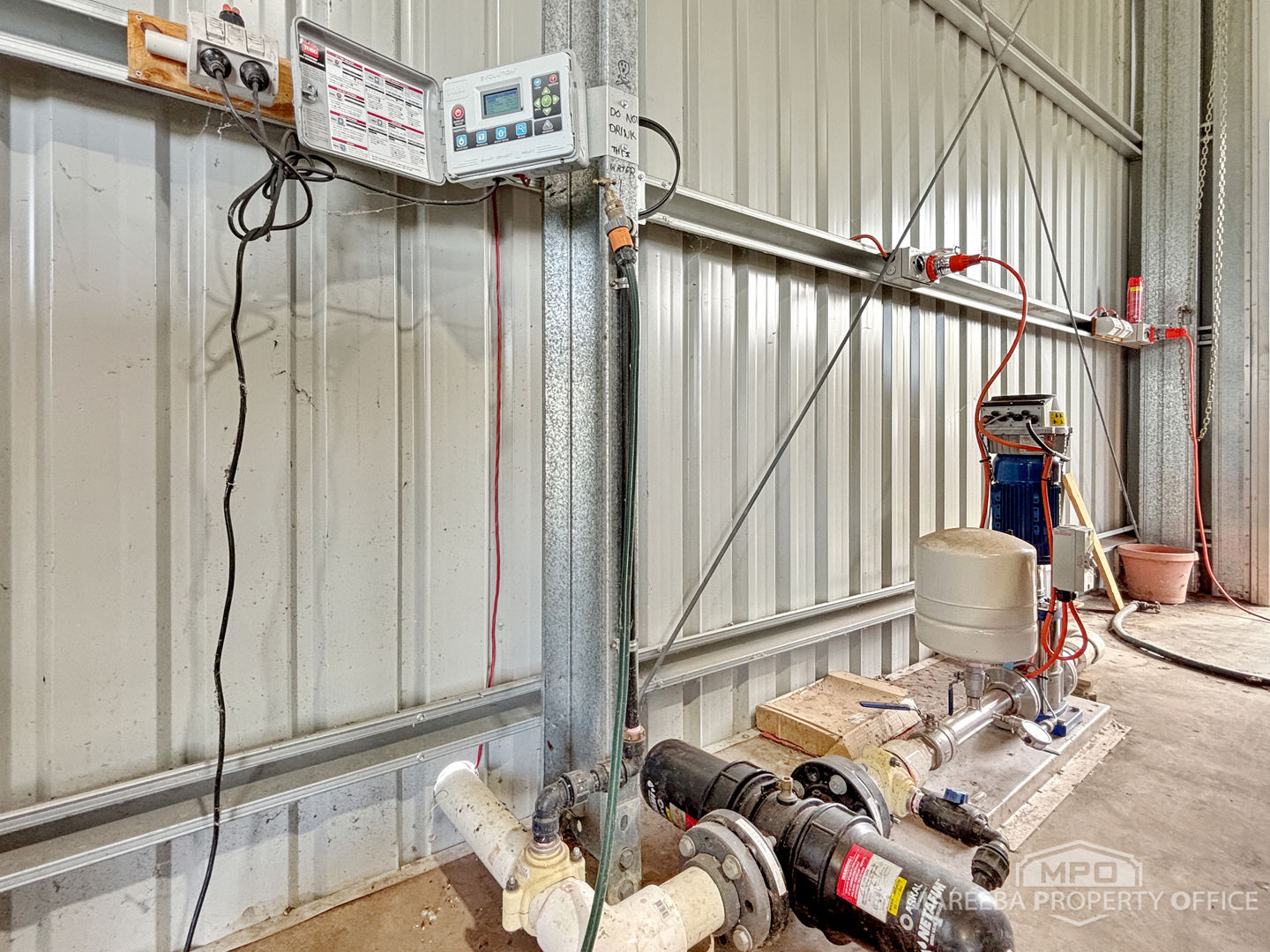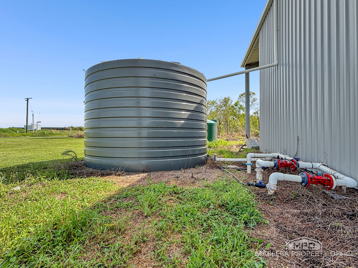 • Poly water tanks: (27,500L channel fed with float valve, 2,000L rainwater tank for fertigation, 2,000L rainwater tank for general use)