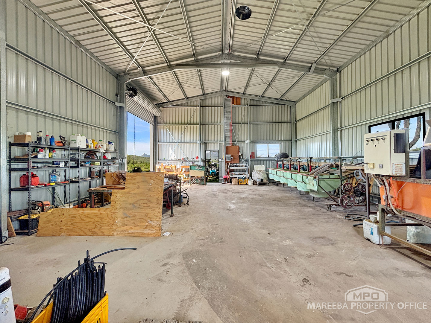 • 16m x 9m high clearance Colorbond shed with concrete floor, power and water
