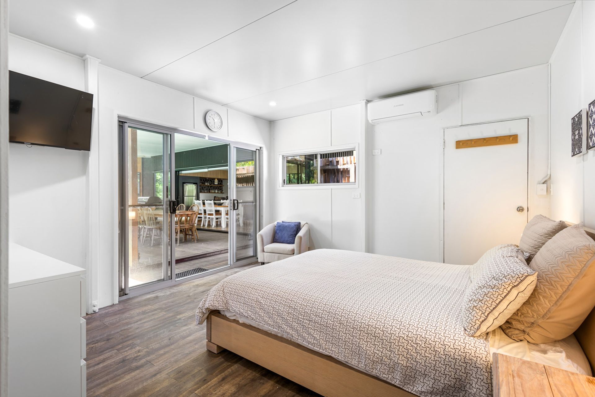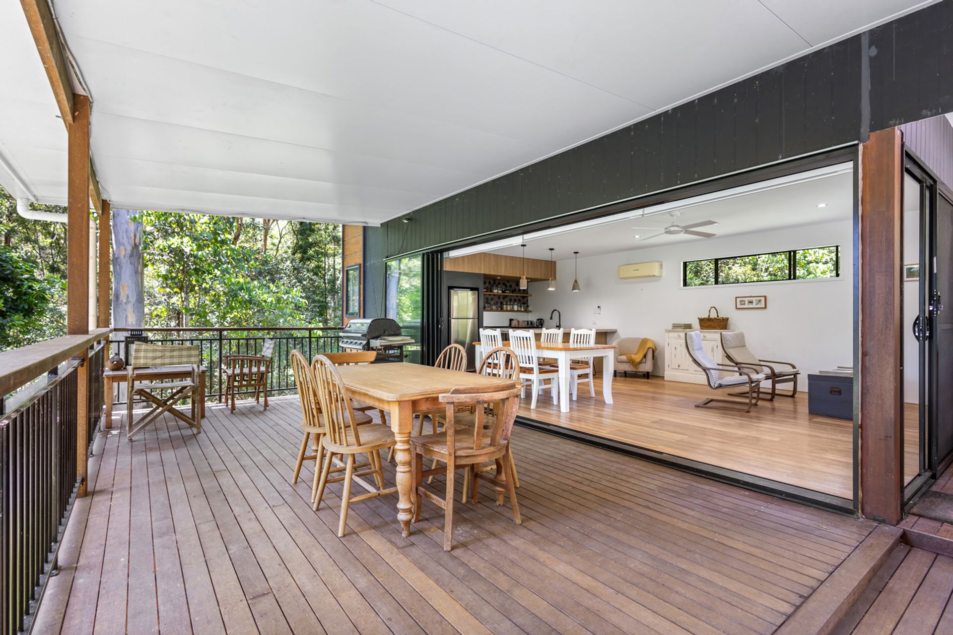 The studio home totalling 84m² boasts 2 bedrooms, 1 bathroom and an open-plan living area that flows seamlessly onto the expansive outdoor entertaining deck. Large windows invite an abundance of natural light and showcase breathtaking views of the surrounding greenery. A modern kitchen with ample storage, along with a hidden powder room. Aircon in both the bedrooms and living area/kitchen for those hot summer days.