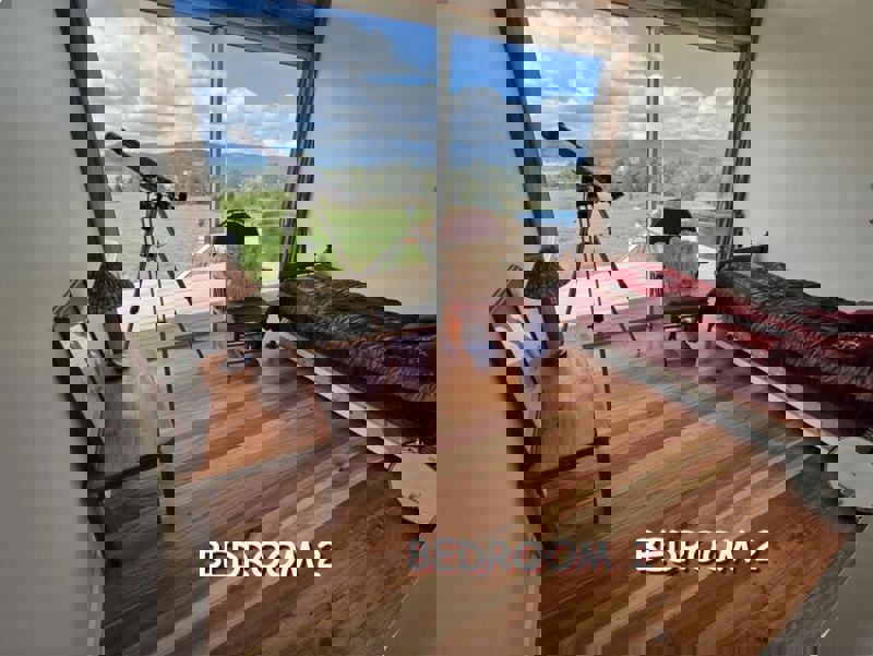 This picturesque property has a permanent creek along one boundary, as well as two freshwater springs, and includes a newly built 5 bedroom (1 x large bathroom, 1 x ensuite with shower, 1 x separate toilet) house that is just awaiting your final touches (make your choice of kitchen benches). The house is just old enough for the timber slab exterior to have achieved its intended greying effect, has beautiful polished wooden floors (blackwood and myrtle), and has been designed with passive solar principles in mind. The house is well insulated, with real sheep wool insulation in the walls and under the floor. Windows are double-glazed, giving it excellent thermal properties. The kitchen includes a Thermalux Grand Cuisine wood stove (2 ovens), which has a wetback for heating hot water (with gas backup), and also heats the home. It also has a gas stove for convenience, in Summer. Adjacent to the kitchen is a generous walk-through pantry with passive cooling via a long underground vent pipe feeding cool air through the floor. The house is supplied with electricity from a large (5.5kw) stand-alone solar system, including Victron controllers/inverters and a lithium battery bank. The water supply is from 66,000 litres of rainwater tanks, with catchment from both the house and workshop. There is also a large deck on the front of the house, overlooking the property, and farmland beyond.