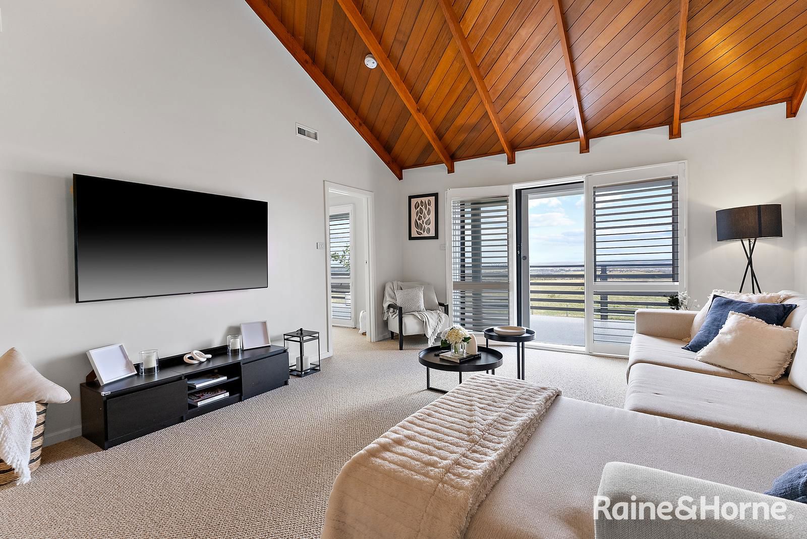 • Upstairs, discover a cozy second living area with plush wool carpet, a timber cathedral ceiling, and access to a generous balcony with sweeping views.