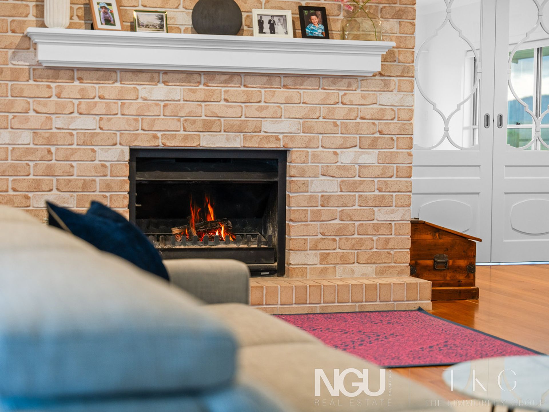 Step inside and be instantly captivated by the warmth of Northern Beech solid timber floors, the inviting ambiance of a Jetmaster open wood fireplace, and soaring ceilings that allow the home to flood with natural light. The custom-designed master bedroom doors add a refined, bespoke touch.
