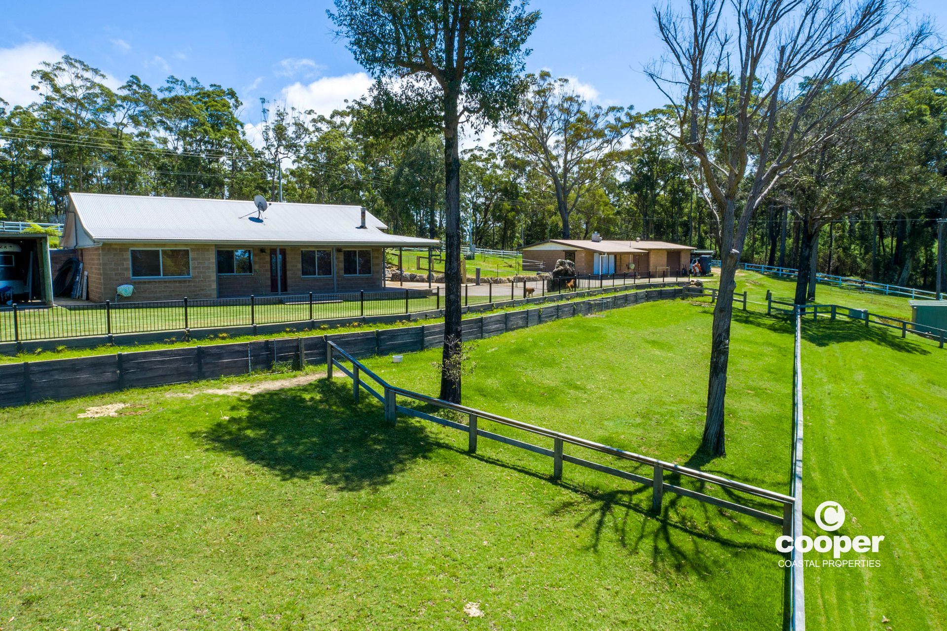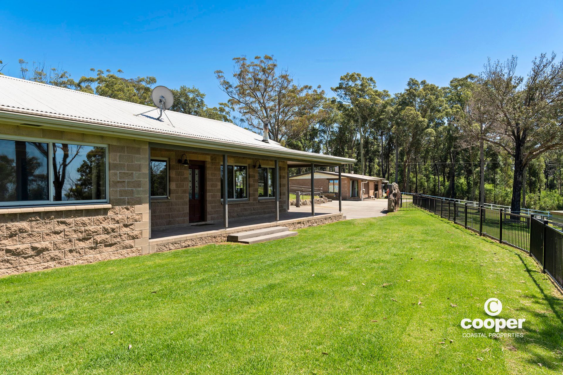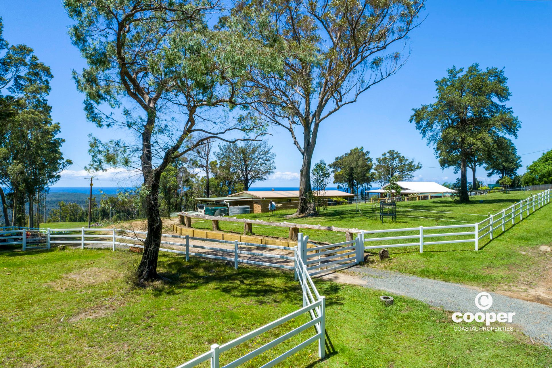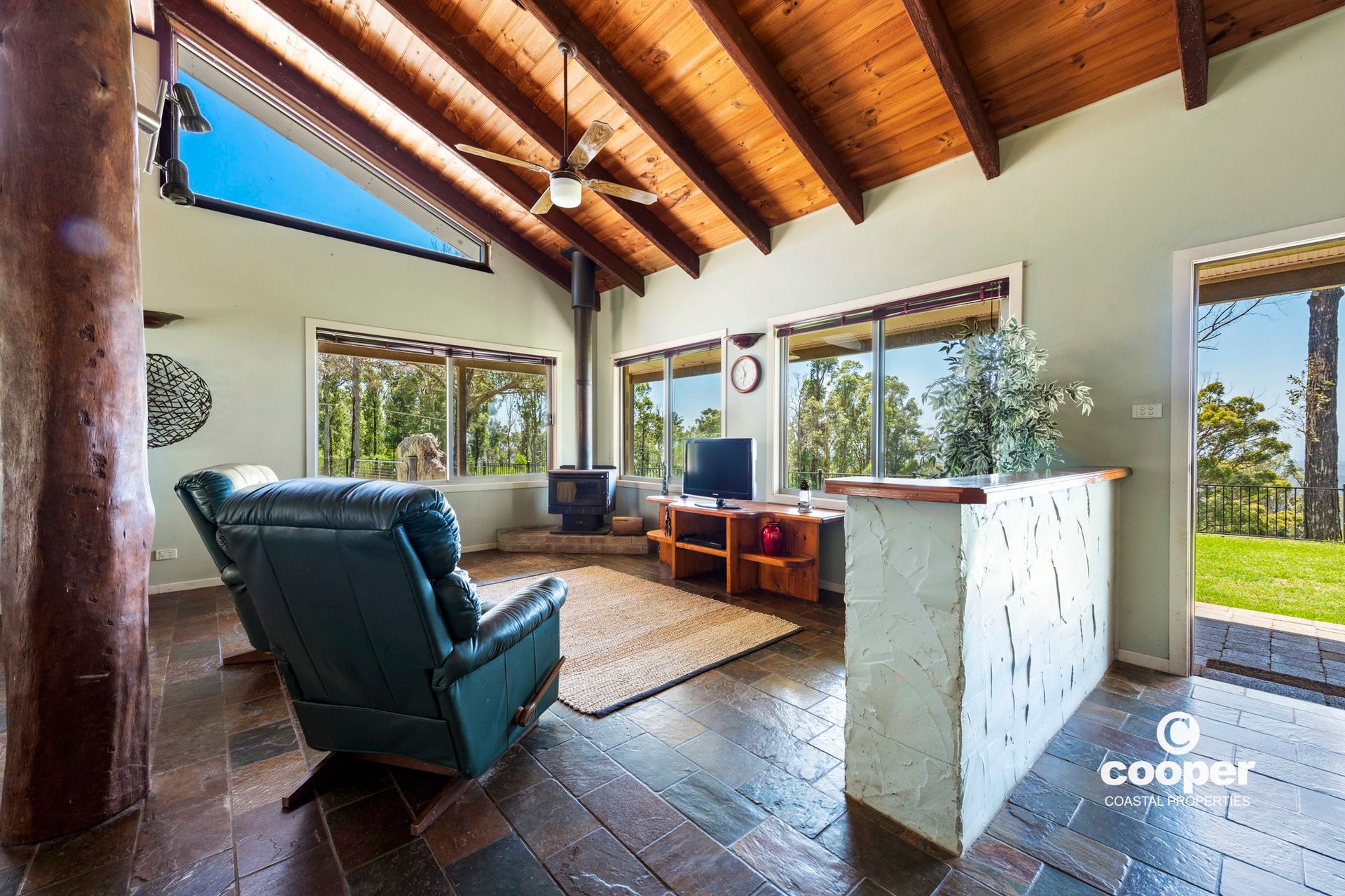 The single level country style home features wrap around verandahs and raked timber ceilings, north facing highlight windows to capture the light, and a cosy wood fire to keep you warm in winter.. Enjoy the beautiful views from most windows, looking out over rolling green pastures, friendly equine faces and the stunning ocean views. Practical hard wearing slate floors at front and rear entries, kitchen, dining and living rooms and beautiful spotted gum timber floors in the hallway and bedrooms. The outdoor entertaining area features local boulders nestled into the land to provide a private al fresco space and unique retaining wall.
