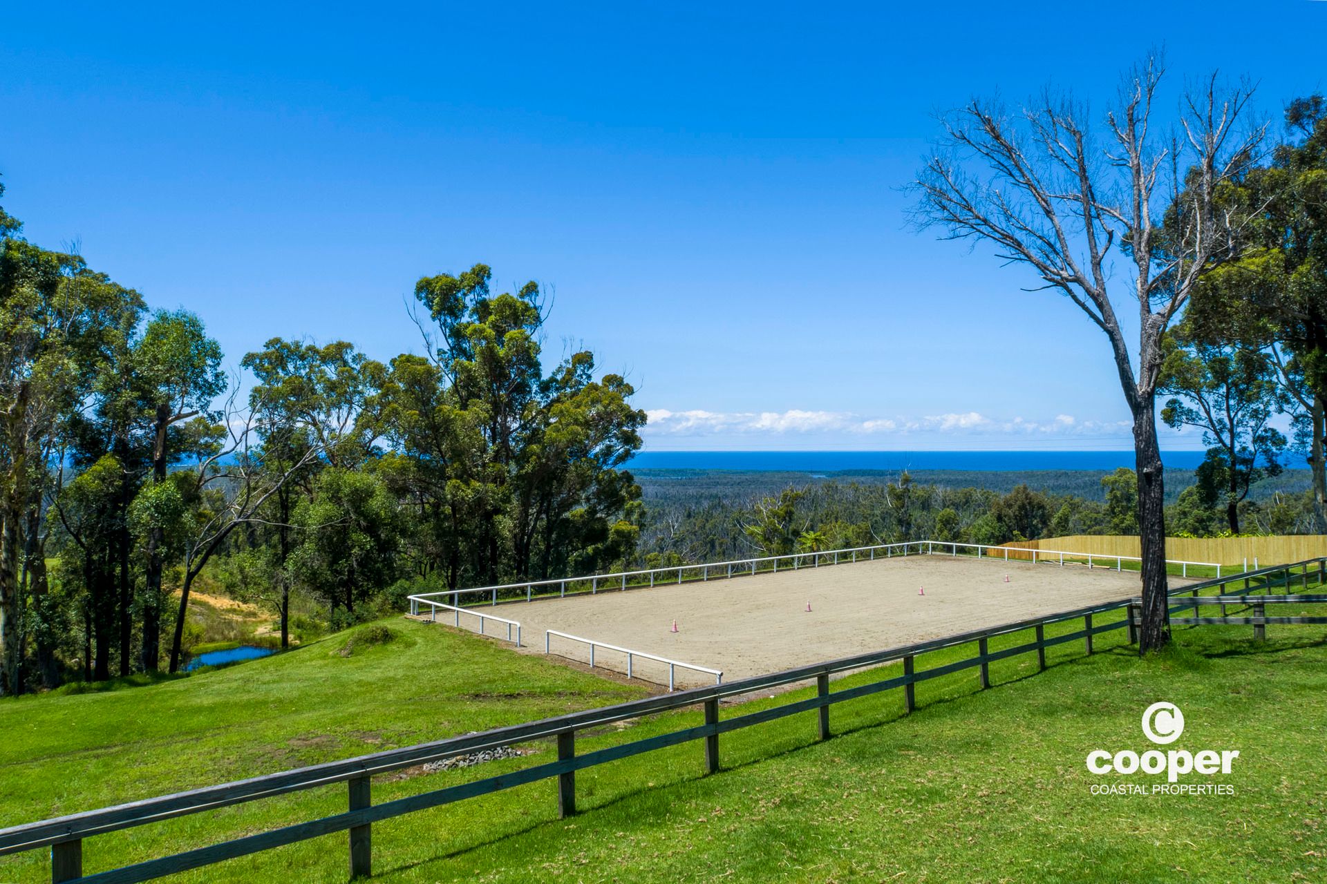 Offering an elevated outlook over the green rolling hills of your own farmland and boasting outstanding ocean views, this picturesque equine property and country home is a rare find. Fully fenced and well set up for horse enthusiasts with paddocks, horse arena, animal shelter and feed shed, undercover parking for the horse float and plenty of space to ride through cleared and treed sections of the property.