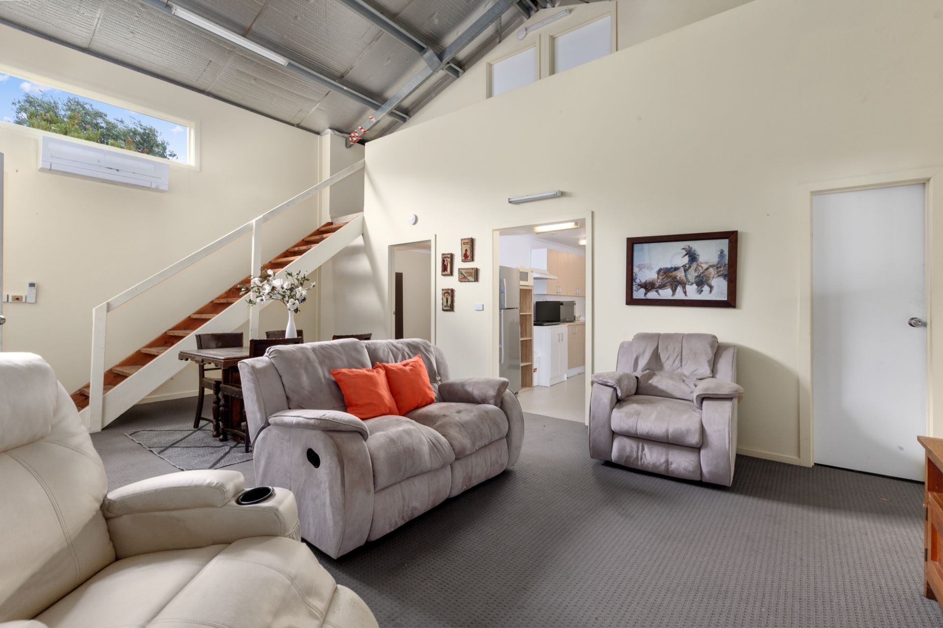 Guest Accommodation and Versatility: A fully self-contained, three-bedroom studio with lounge, wood fire, and split-system heating/cooling provides ideal accommodation for guests, Airbnb potential, or extended family. A lockup workshop/garage and an 8-10 car carport offer ample storage.