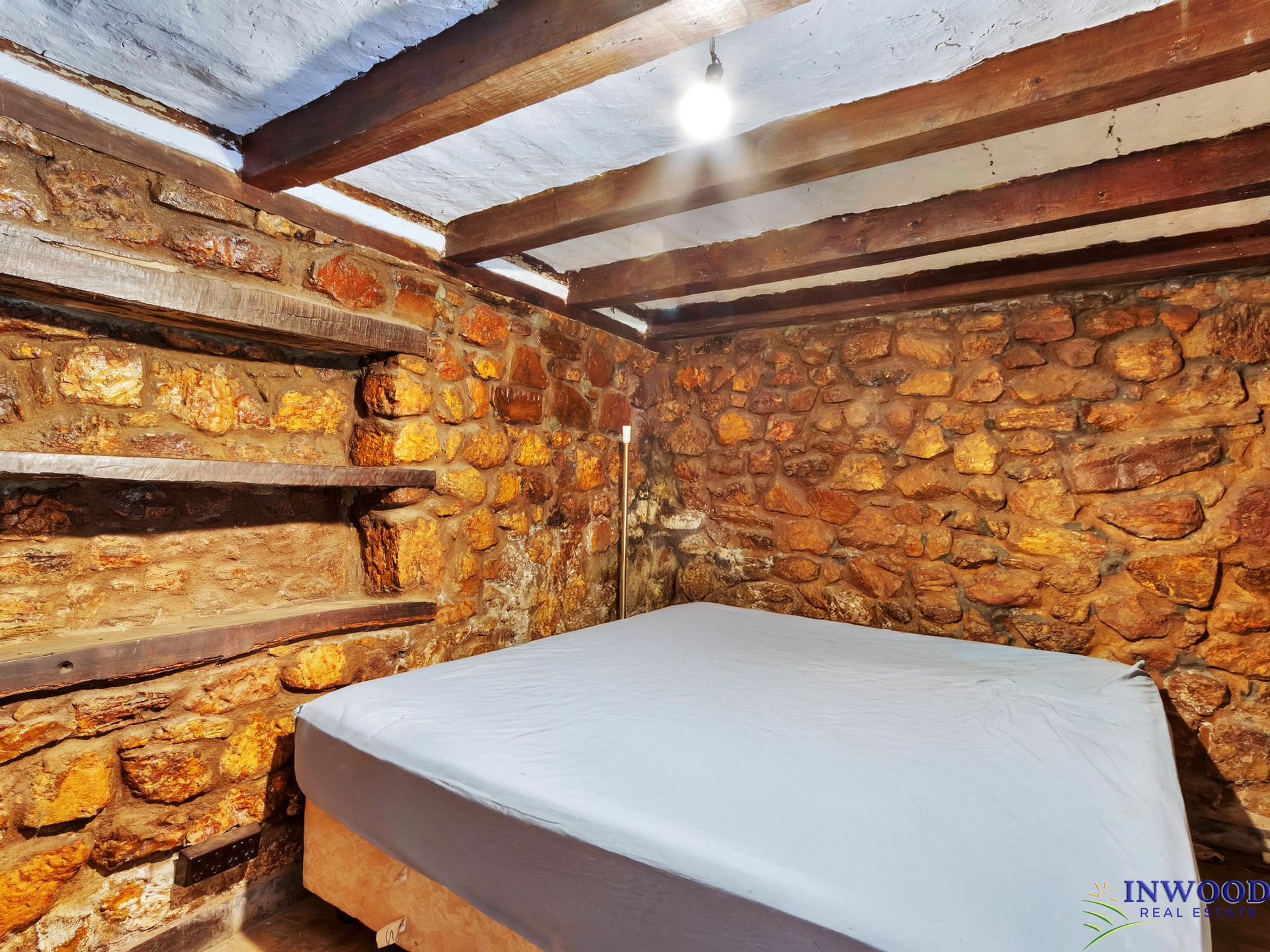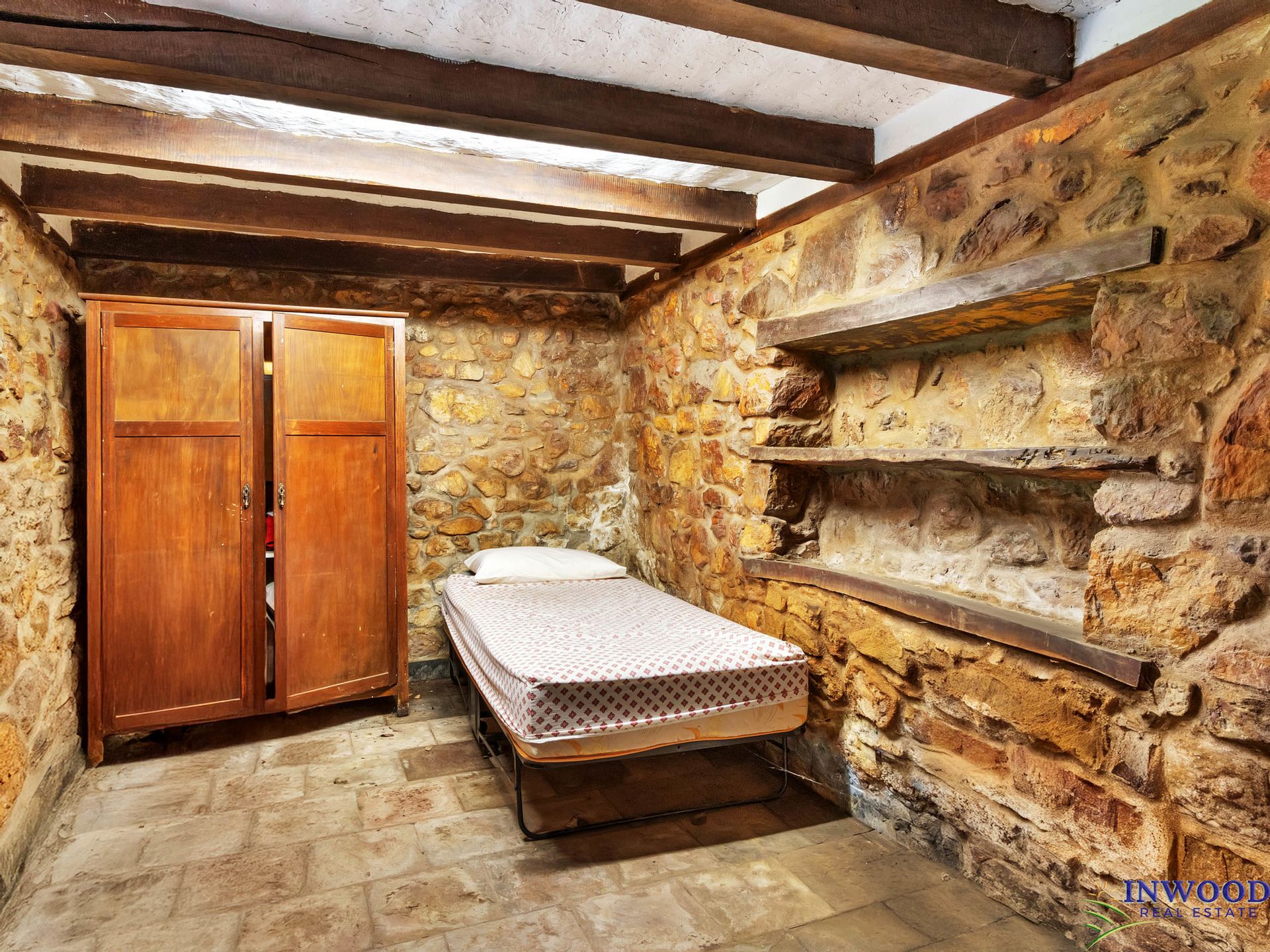 Water License: 66 megaliters', with a fully equipped dam and bore. In addition is a unique stone cased well within the home, equipped with floodlights to showcase this unusual feature.