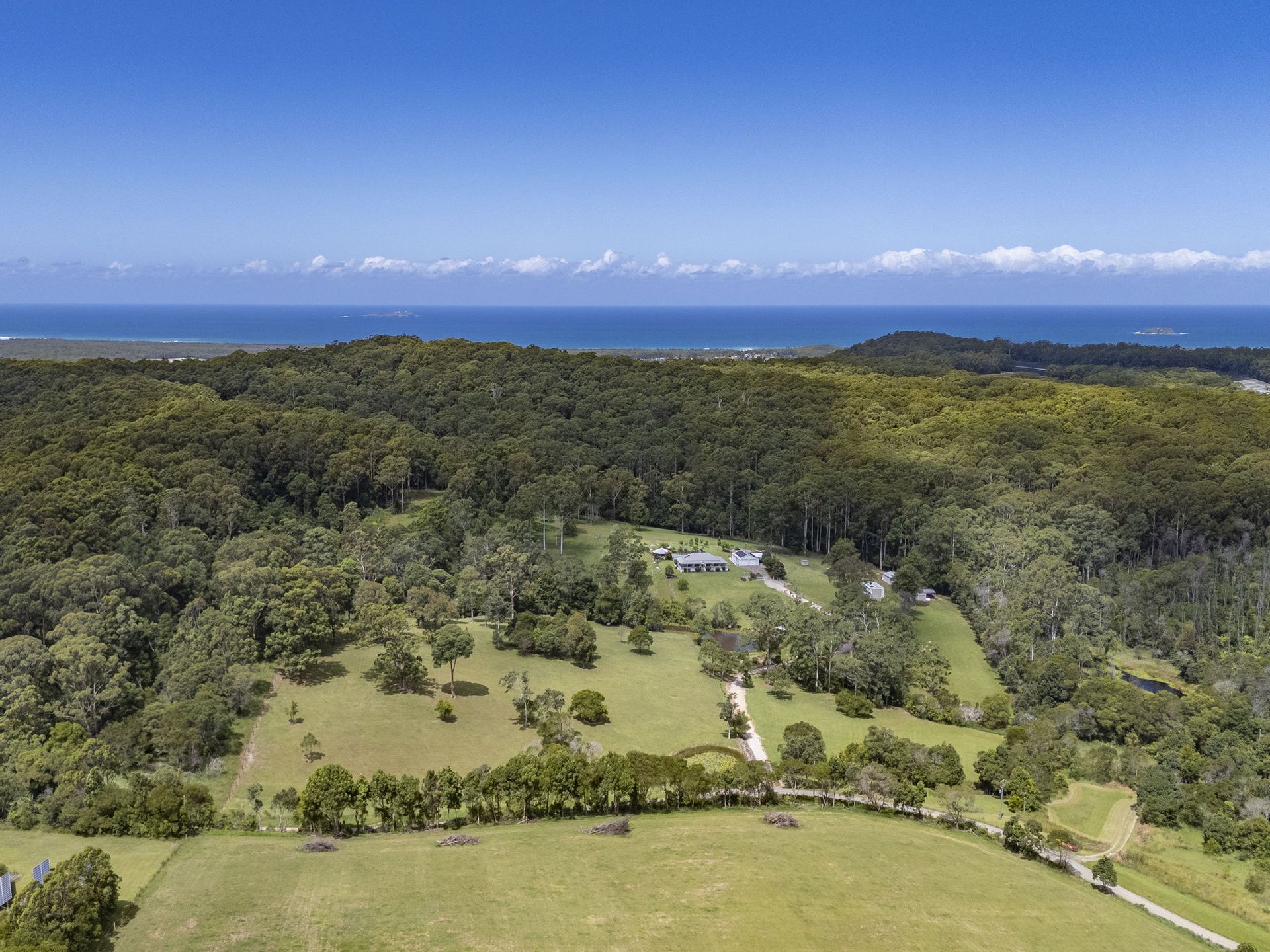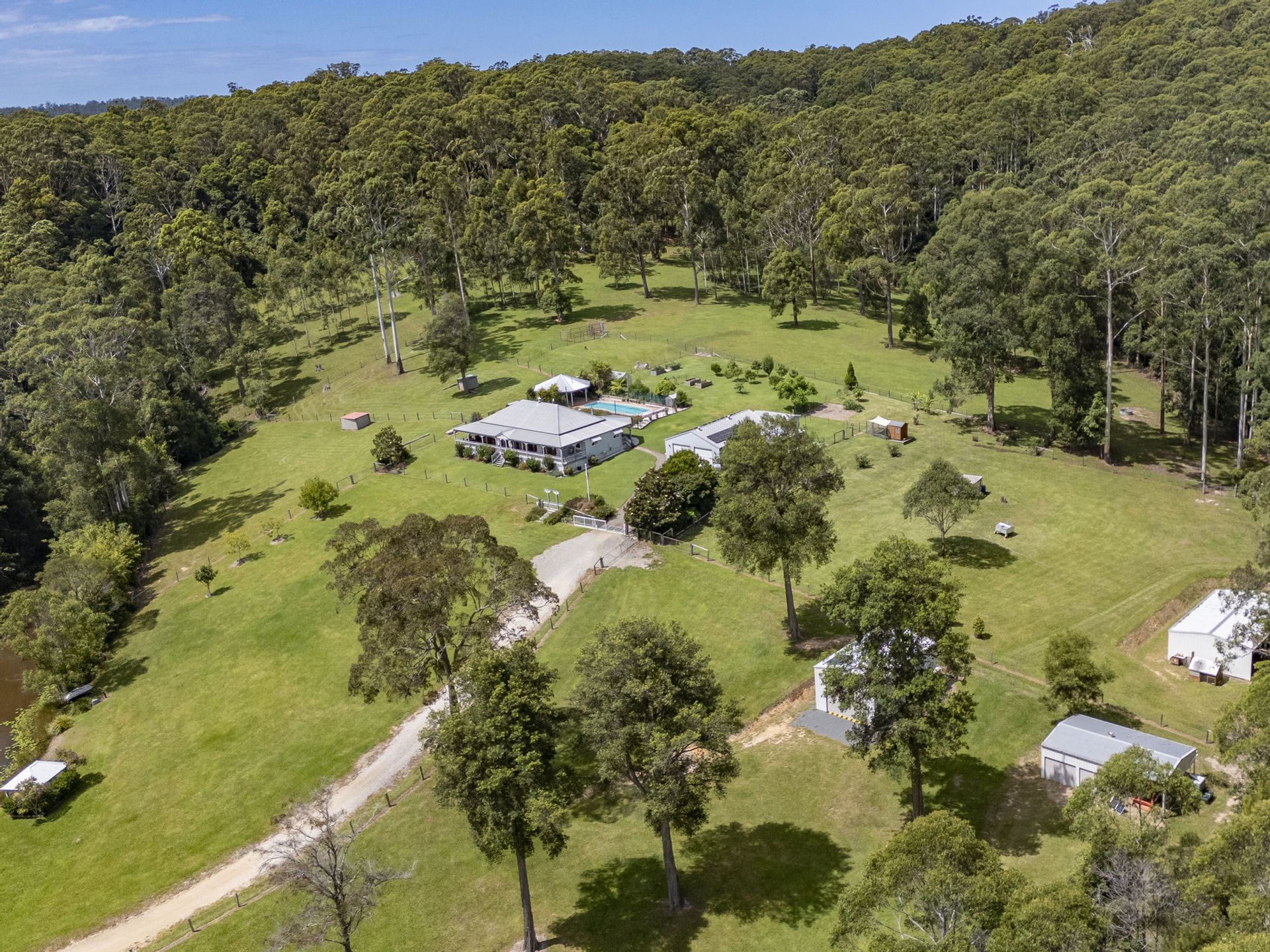 Along a quiet country road nestled in a hidden pocket of the Bucca Valley in the Coffs Coast hinterland with your privacy assured you will find this impeccable property, exuding charm and sophistication built in a classic Queenslander style, standing proudly on 102.8 beautiful acres(41.6 ha) approx. a balanced blend of cleared pasture improved well fenced paddocks and natural bushland. With the add bonus of 5 new and as new sheds offering ample garaging for cars, boat, caravan, float, farm machinery and storage. And all just a short 6.4 kms drive to the sundrenched sandy shores of beautiful Moonee Beach, the convenience of The Moonee Market shopping centre and just a 16 km drive to the large regional centre of Coffs Harbour and all it has to offer.