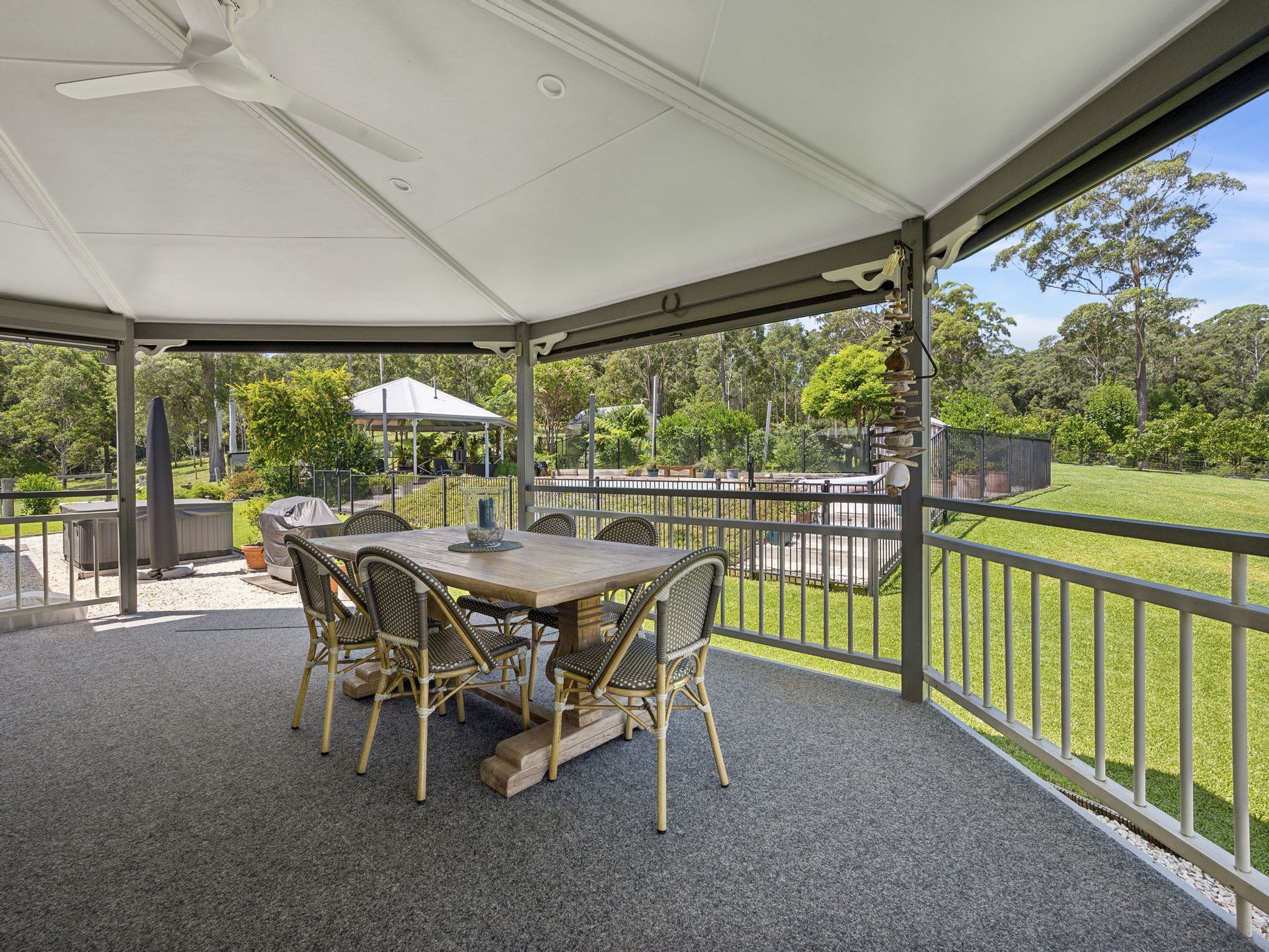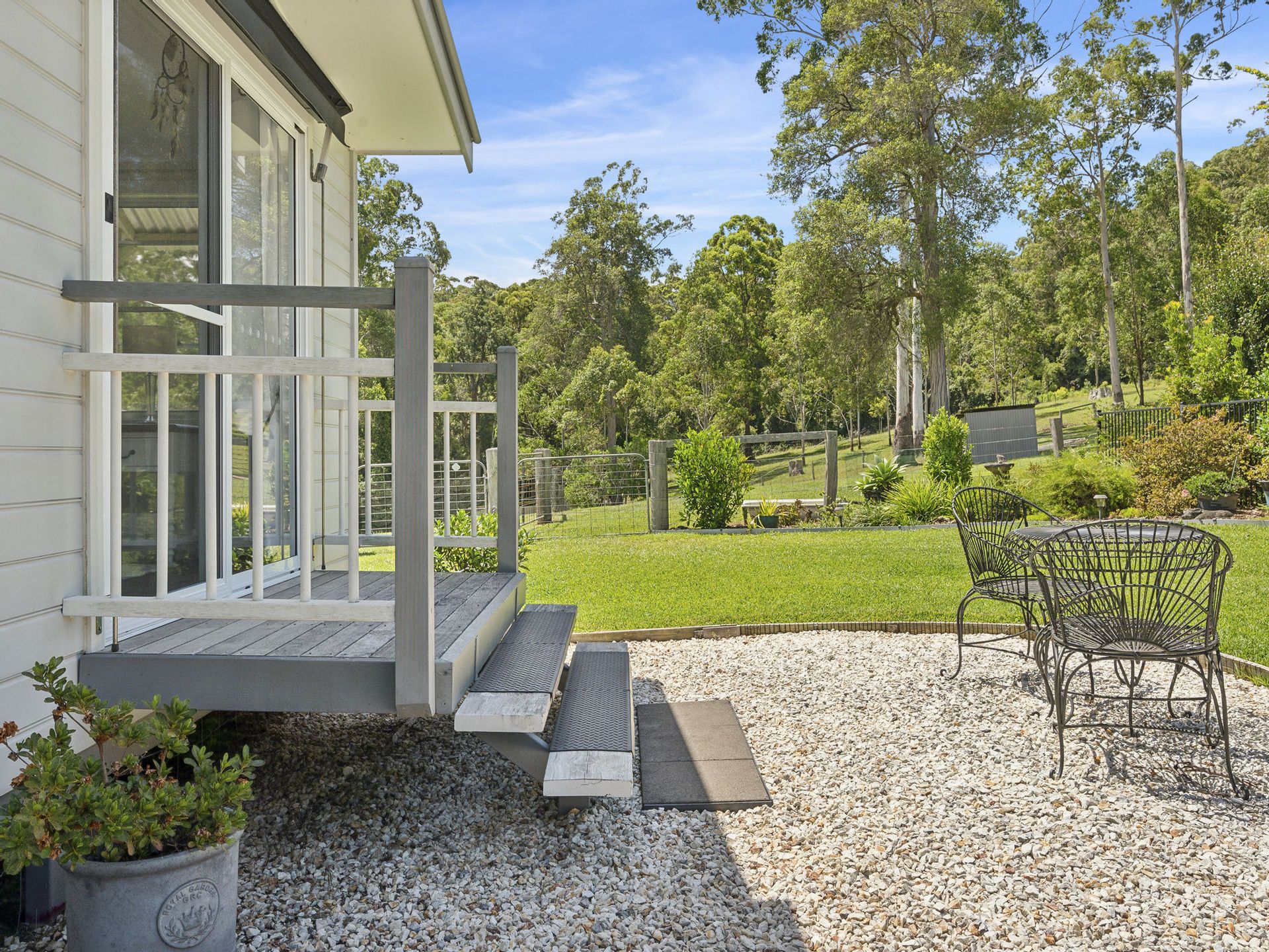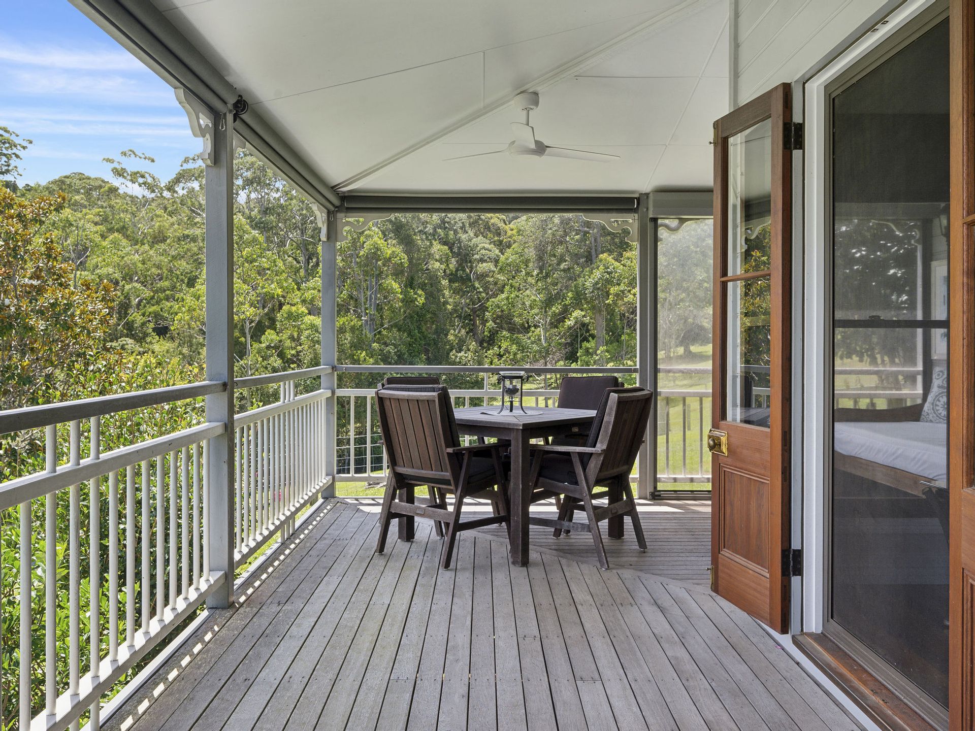 Automatic gates open to the fully fenced house yard, secure for the children and much-loved pets to play and in true Australian Queenslander style you are greeted by wide shady verandas inviting you to sit for awhile and take in natural beauty of this rare paradise.