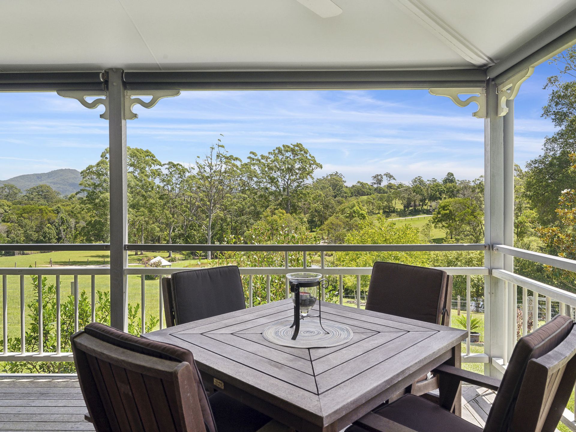 Then step inside and discover a very special home designed by the award- winning "Garth Chapman Queenslanders" renowned for authenticity of architecture, attention to detail and uniqueness (built in 2003 however in recent years fully renovated throughout). Boasting a palette that promotes a sense of calm serenity married perfectly with the breathtaking vista to the magical valley and mountains that surrounds. The warmth of blackbutt timber grace the floors and lofty 2.7 mtr ceilings offer a wonderful feeling of space with cedar French doors, new double hung windows and sliding doors giving the home an abundance of natural light.