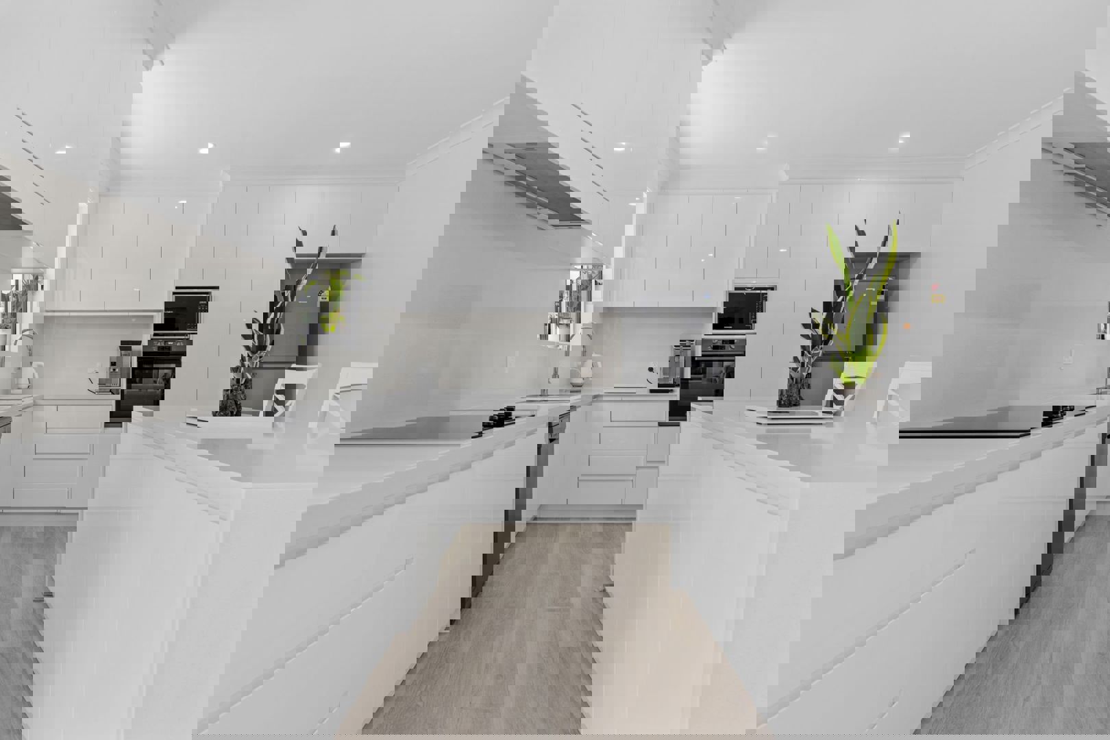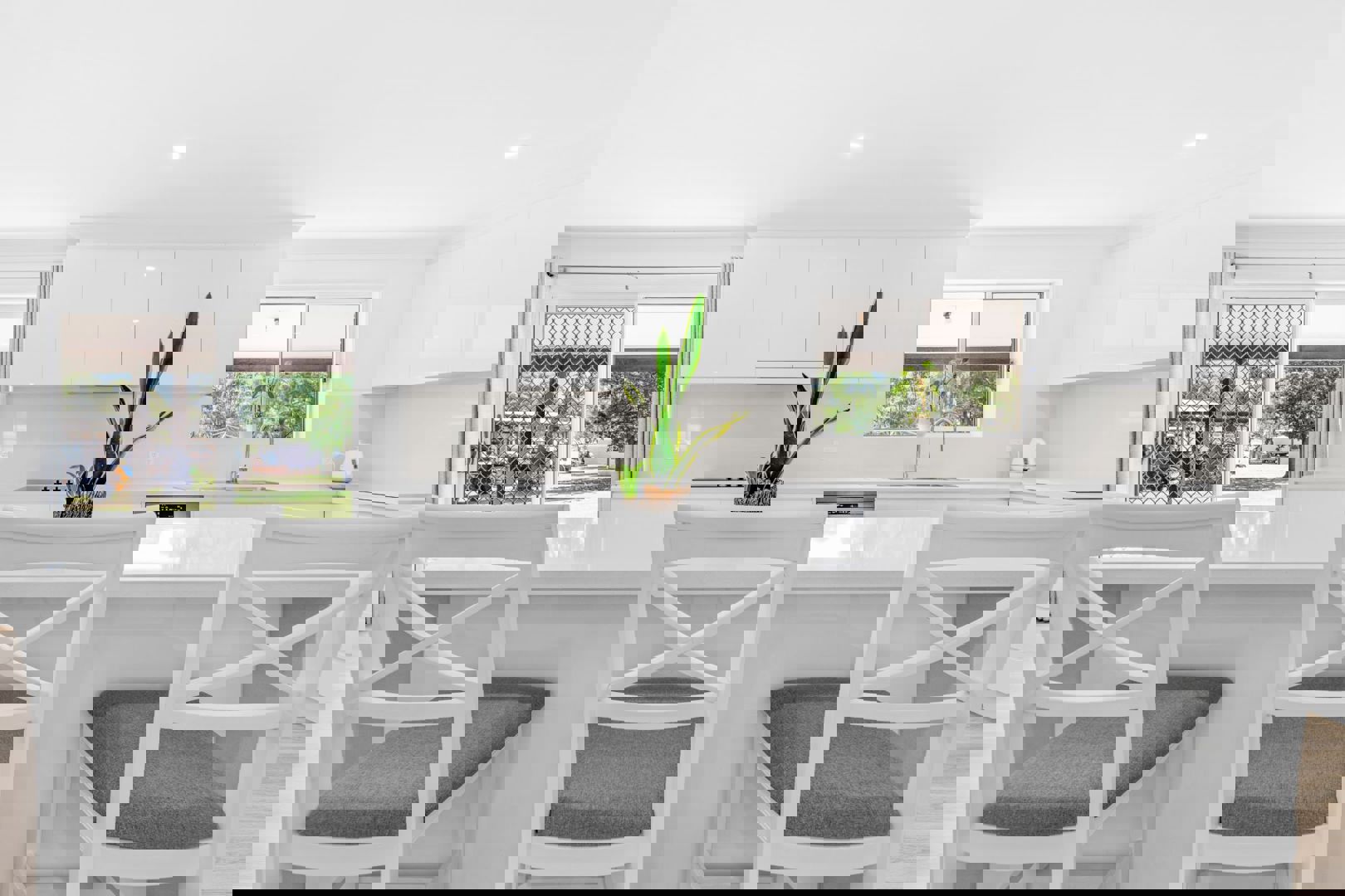 Stunning Kitchen – Featuring waterfall stone benchtops, dishwasher, breakfast bar, and ample storage