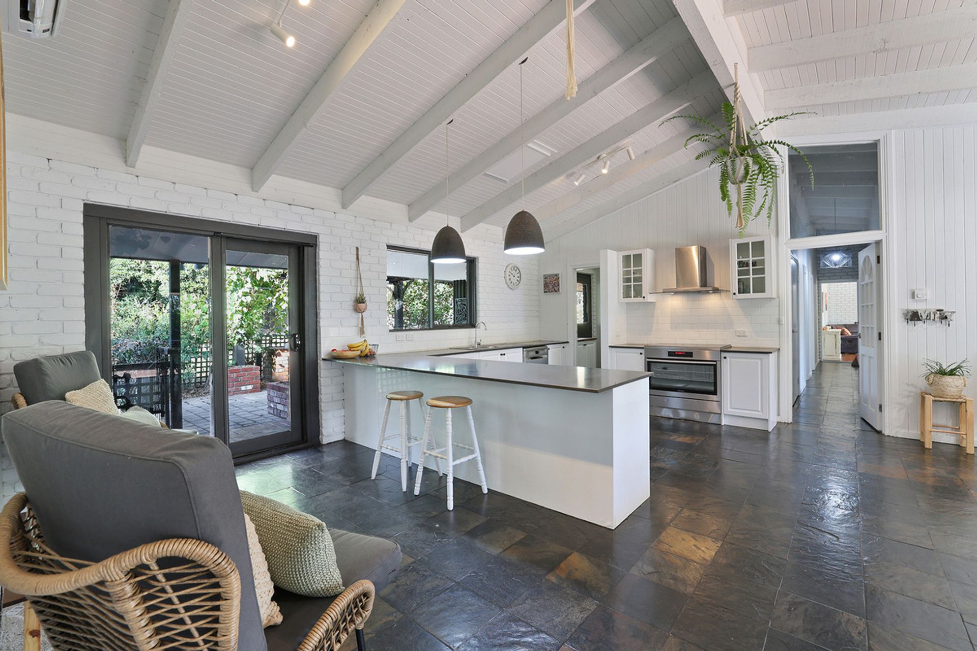 Renovated throughout, the home boasts expansive living areas with cathedral ceilings that create an airy, open feel. A large modern kitchen with luxurious stone benchtops and a spacious walk-in pantry is the heart of the home.