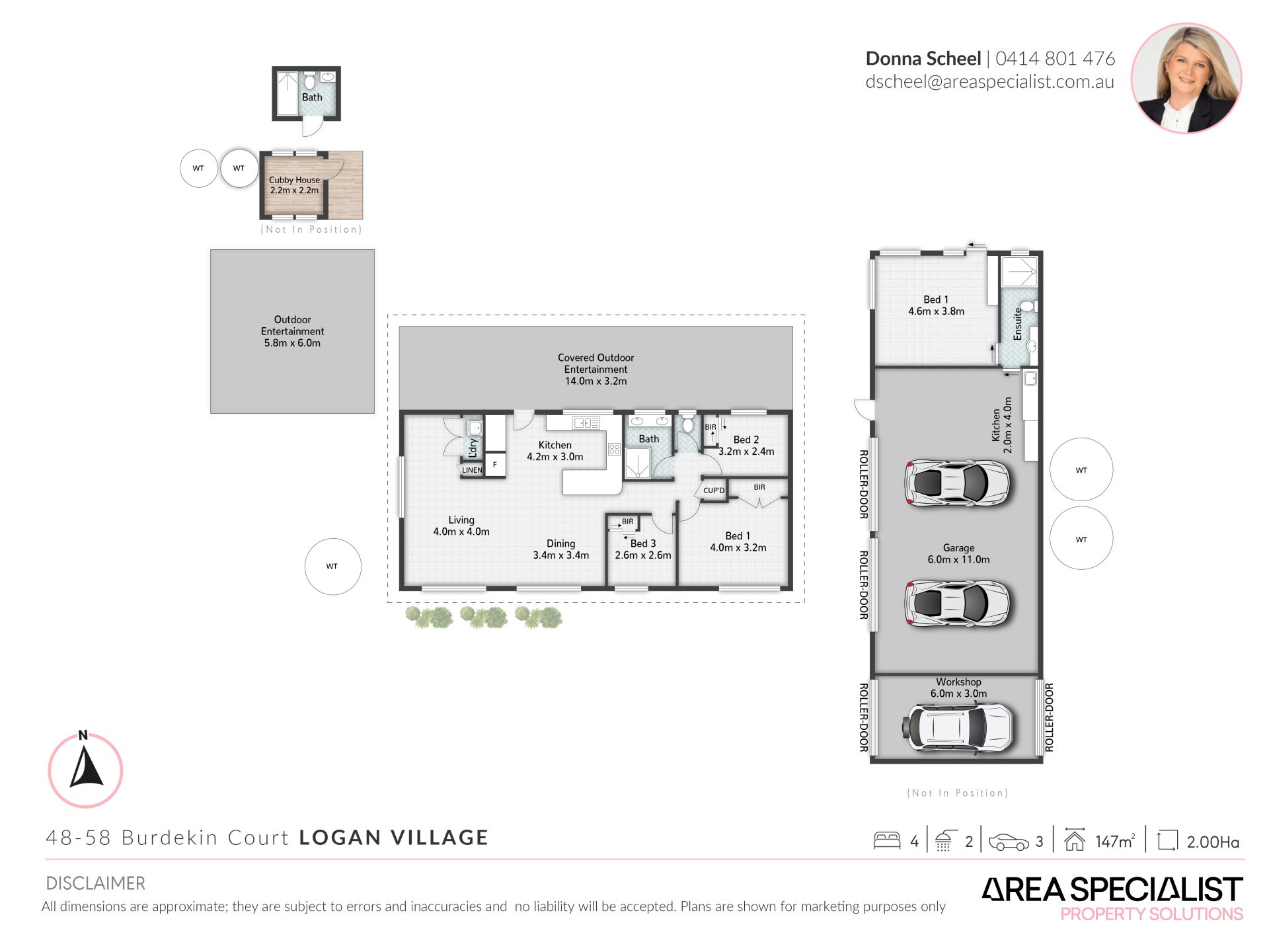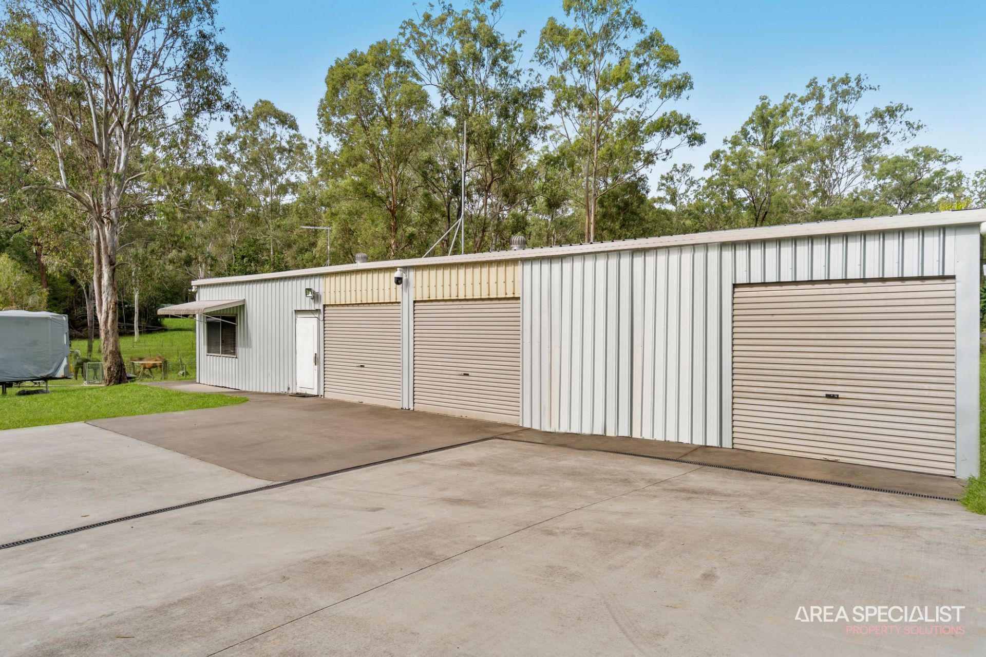 * Large shed with work shop and remote garage for two vehicles