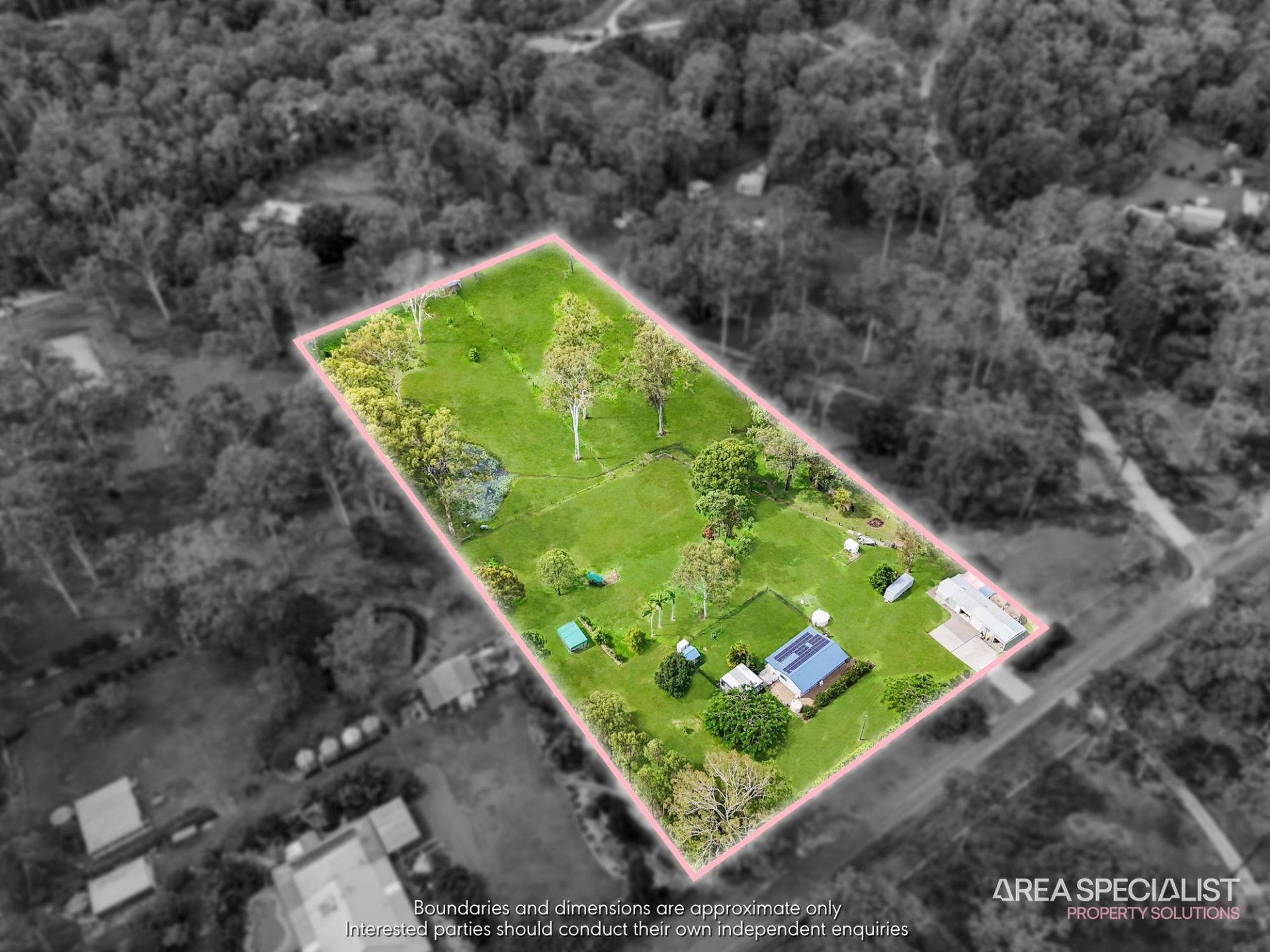 * Fully fenced 5 acres with large dam, separate horse paddocks and shelters