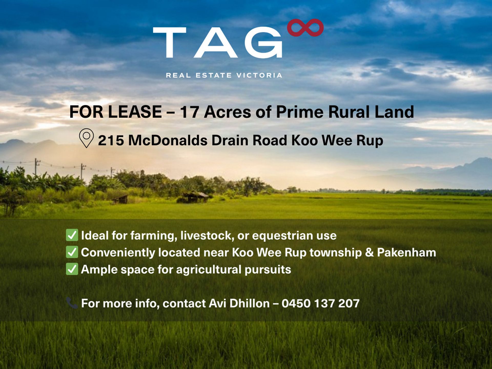 For Lease: Expansive 17-Acre Rural Property in Koo Wee Rup - LAND ONLY -