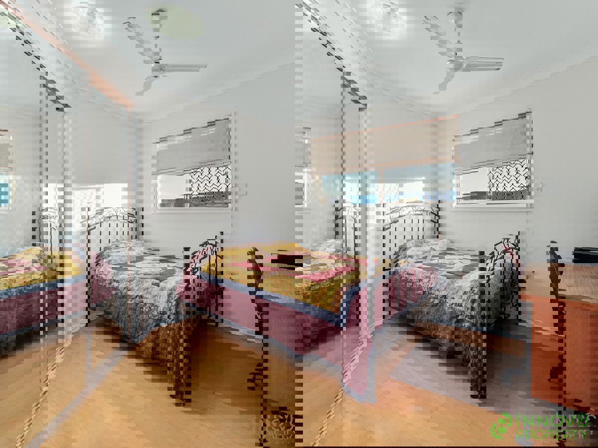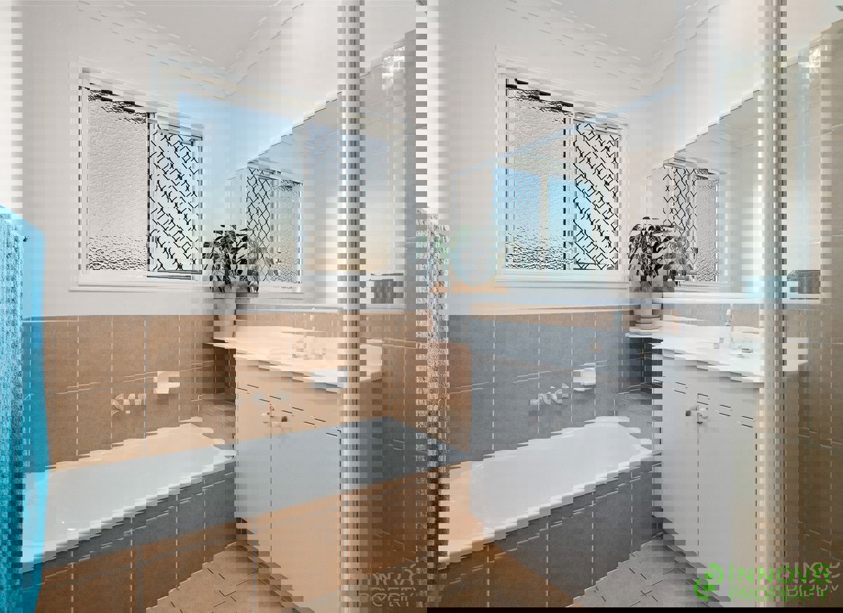 The remaining three bedrooms on this level all provide mirrored built-in robes and ceiling fans whilst the main bathroom is well-placed and offers a separate shower and bath, a neat vanity and a heat lamp as well as a separate toilet.