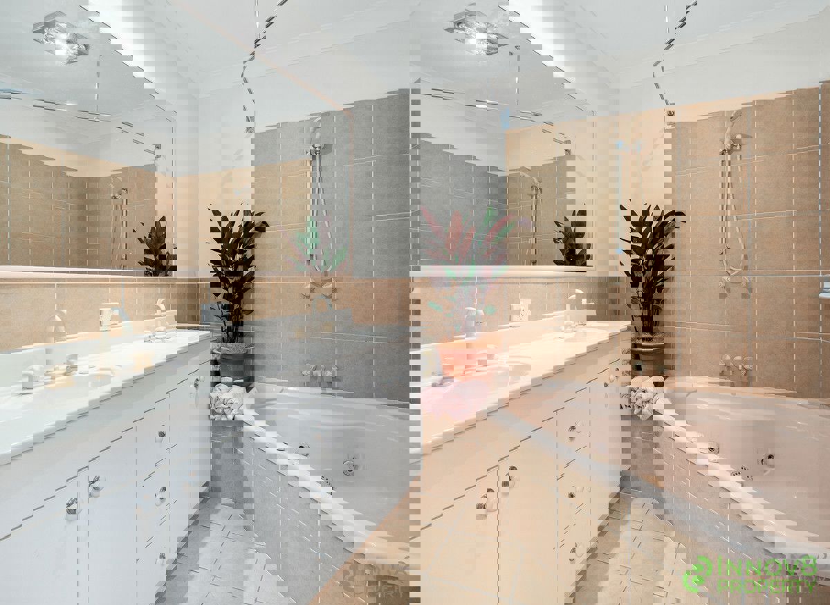 ? Three full bathrooms including the ensuite with corner spa and twin vanities, the main bathroom upstairs and a handy full bathroom downstairs