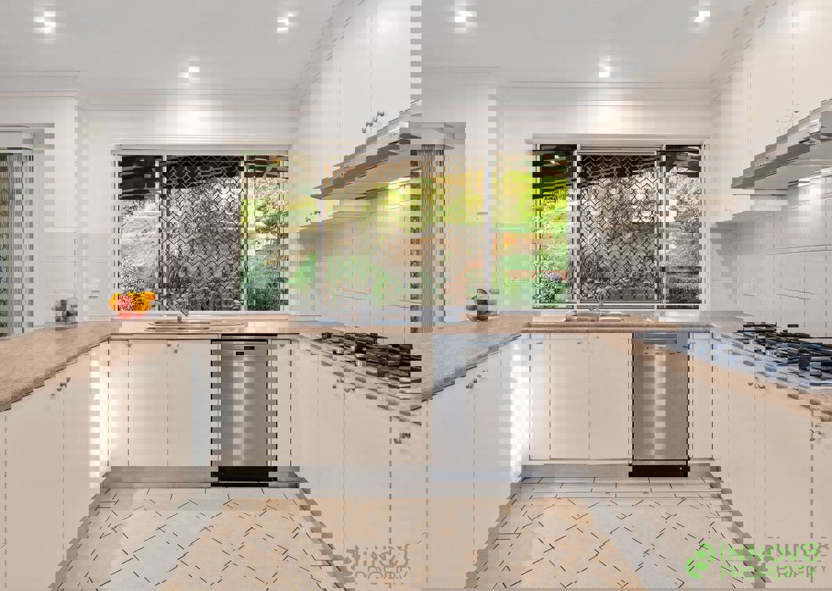 Ideally positioned alongside the formal dining area is the generously sized kitchen that offers room for a double door fridge, plenty of bench and cupboard space including a walk-in pantry, a microwave shelf, a lovely tiled splashback and a selection of quality appliances that include twin stainless steel ovens, a 5-burner gas cook top, a 900mm stainless steel range hood and a stainless steel dishwasher?everything you need to create any meal of your choice!