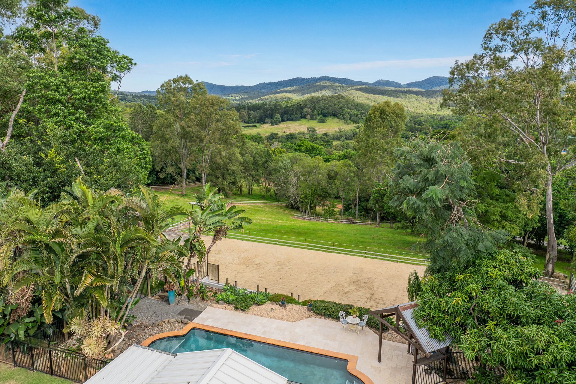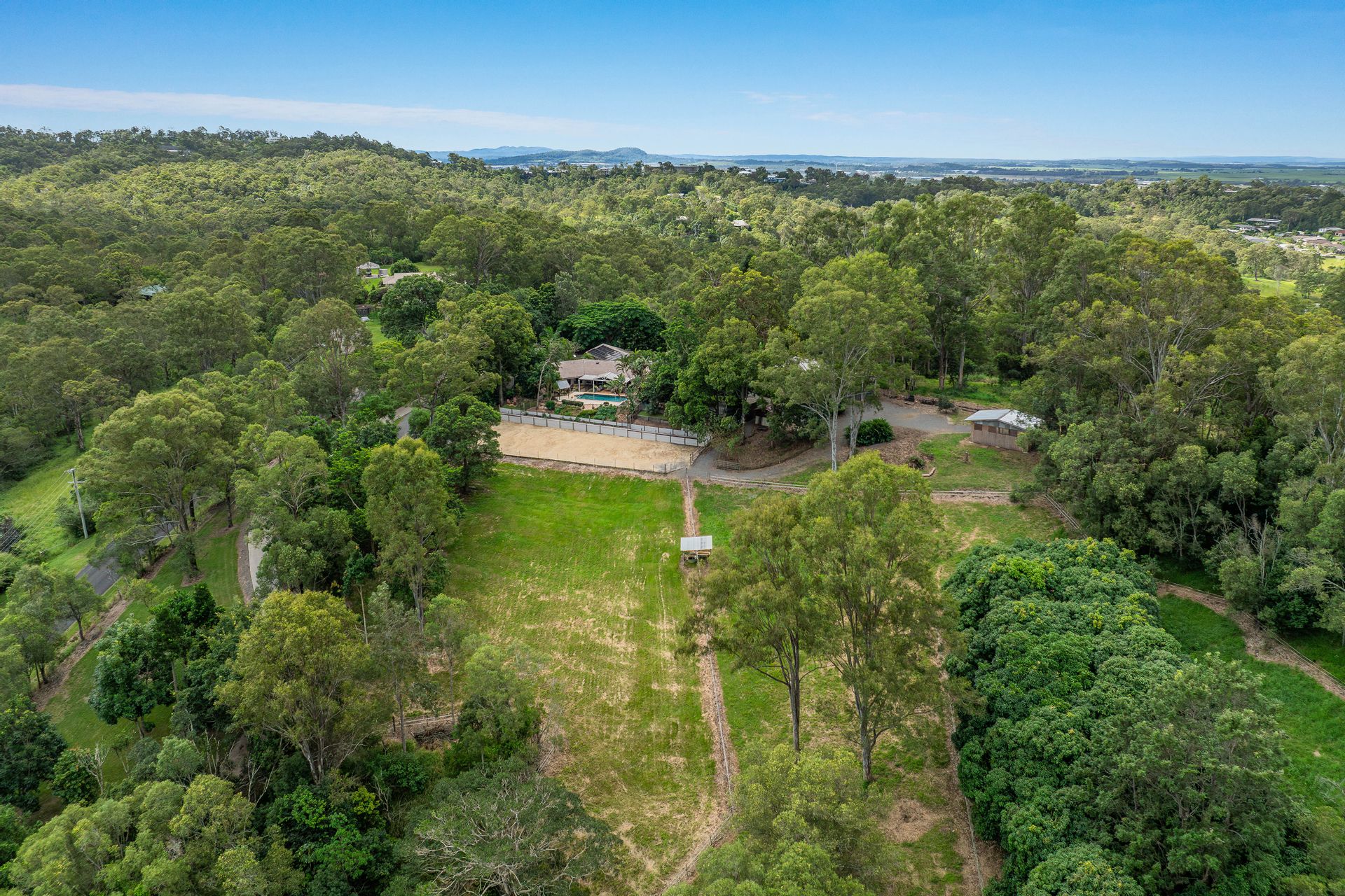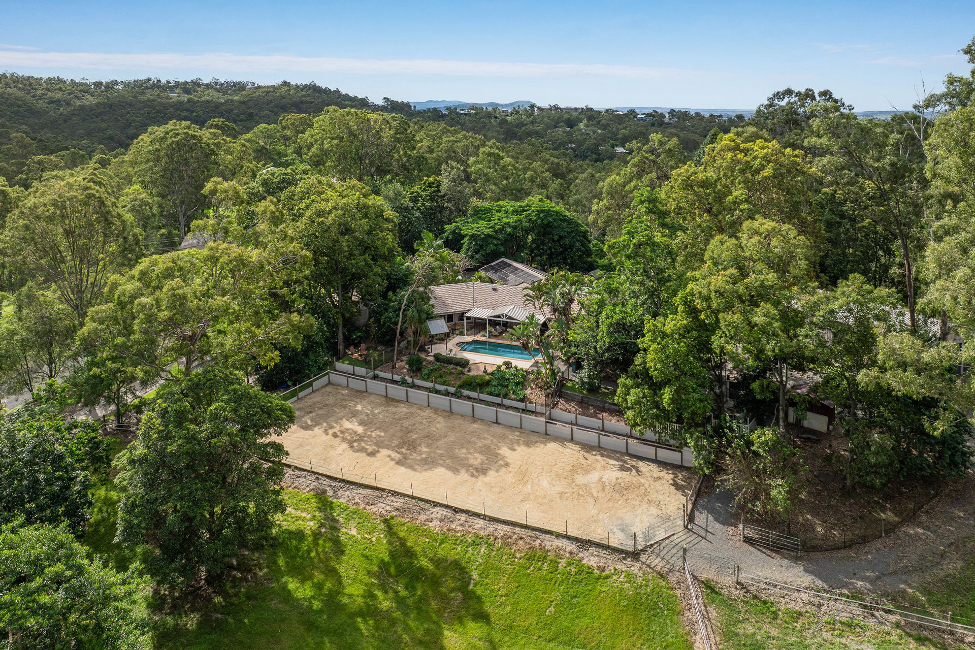 Elevated in a commanding hillside position, this architecturally designed home at 70 Barrenjoey Drive has been thoughtfully positioned to capture sweeping views of the Darlington Ranges, offering a rare combination of privacy, space, and versatility in a premier northern Gold Coast location. Set on a sprawling 3.32-hectare parcel (approximately 8.2 acres), this four-bedroom, two-bathroom home is surrounded by established fruit trees and natural bushland, creating a peaceful retreat just minutes from urban convenience. The elevated position provides sweeping views across the hinterland, while the expansive grounds offer ample space for outdoor living. This property is ideal for horse lovers featuring a horse arena complete with fenced paddocks, horse shelters, open stable and easy road access for a float.