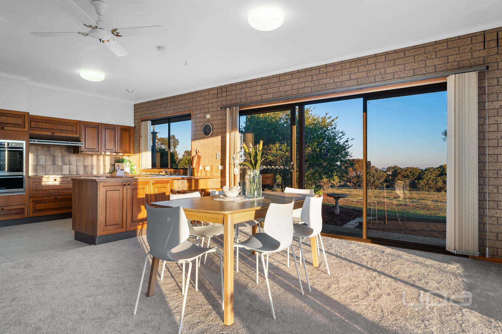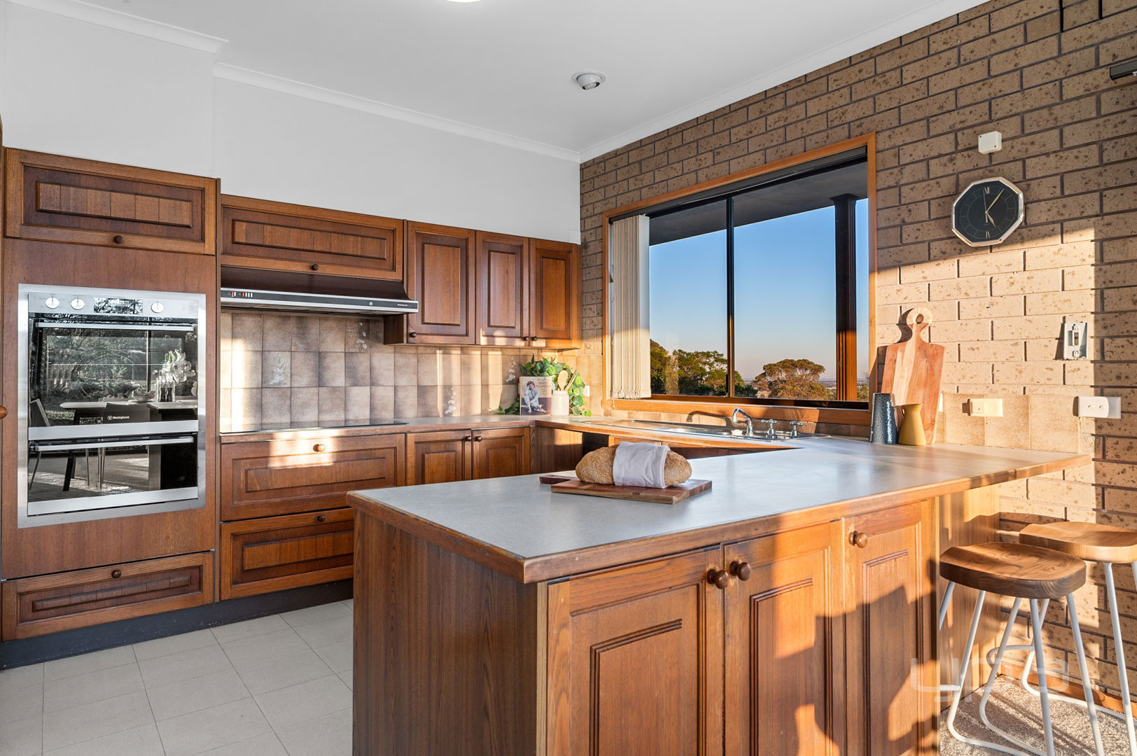 At the heart of the home lies a stunning timber kitchen, thoughtfully designed with an electric cooktop, wall oven, and a generous fridge cavity. Overlooking a spacious meals area, this inviting space is bathed in natural light, with multiple doors opening to the outdoors—perfect for taking in the serene views of the You Yangs while enjoying family meals. Adjacent to this, the expansive living area offers a comfortable and peaceful setting to unwind and relax.