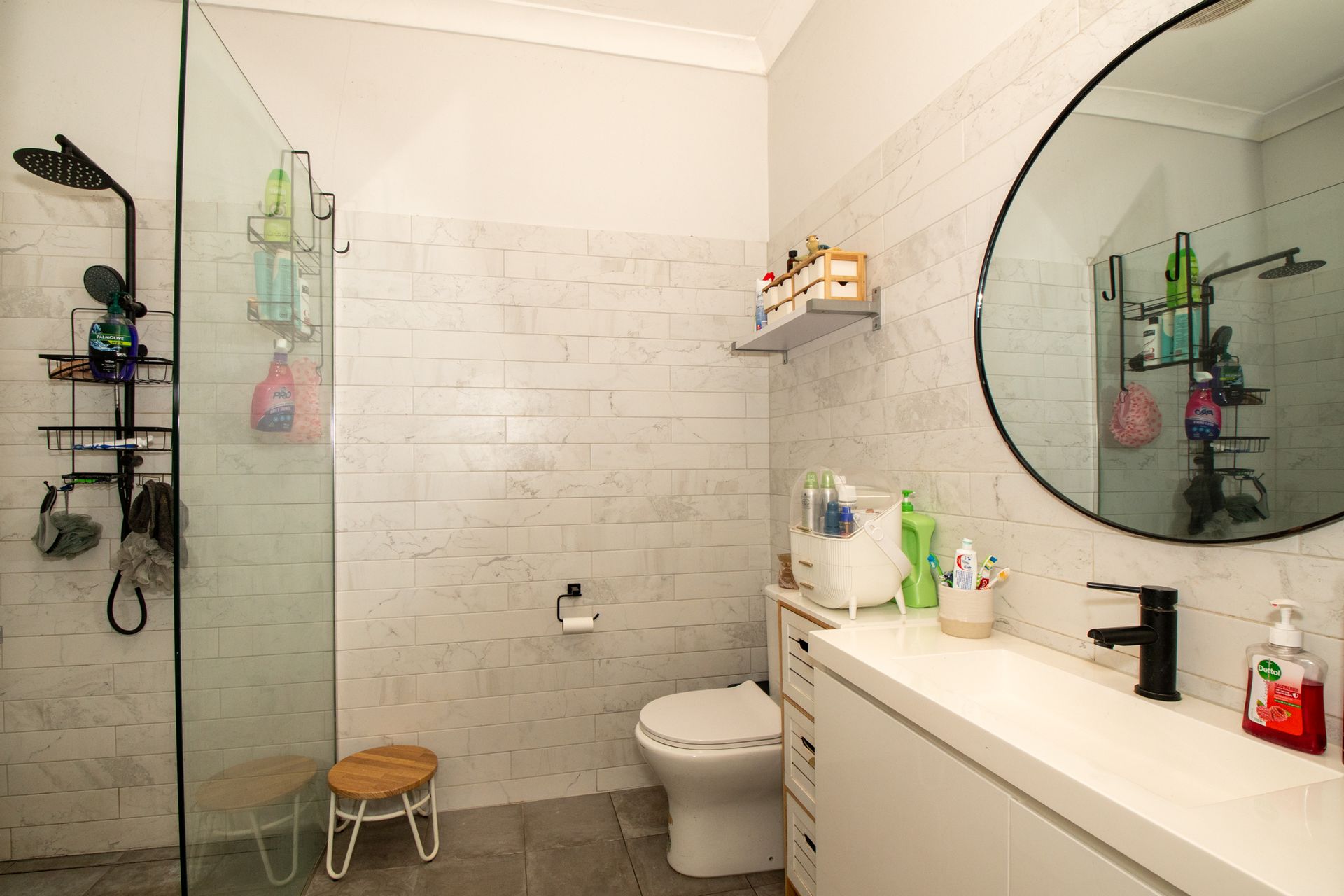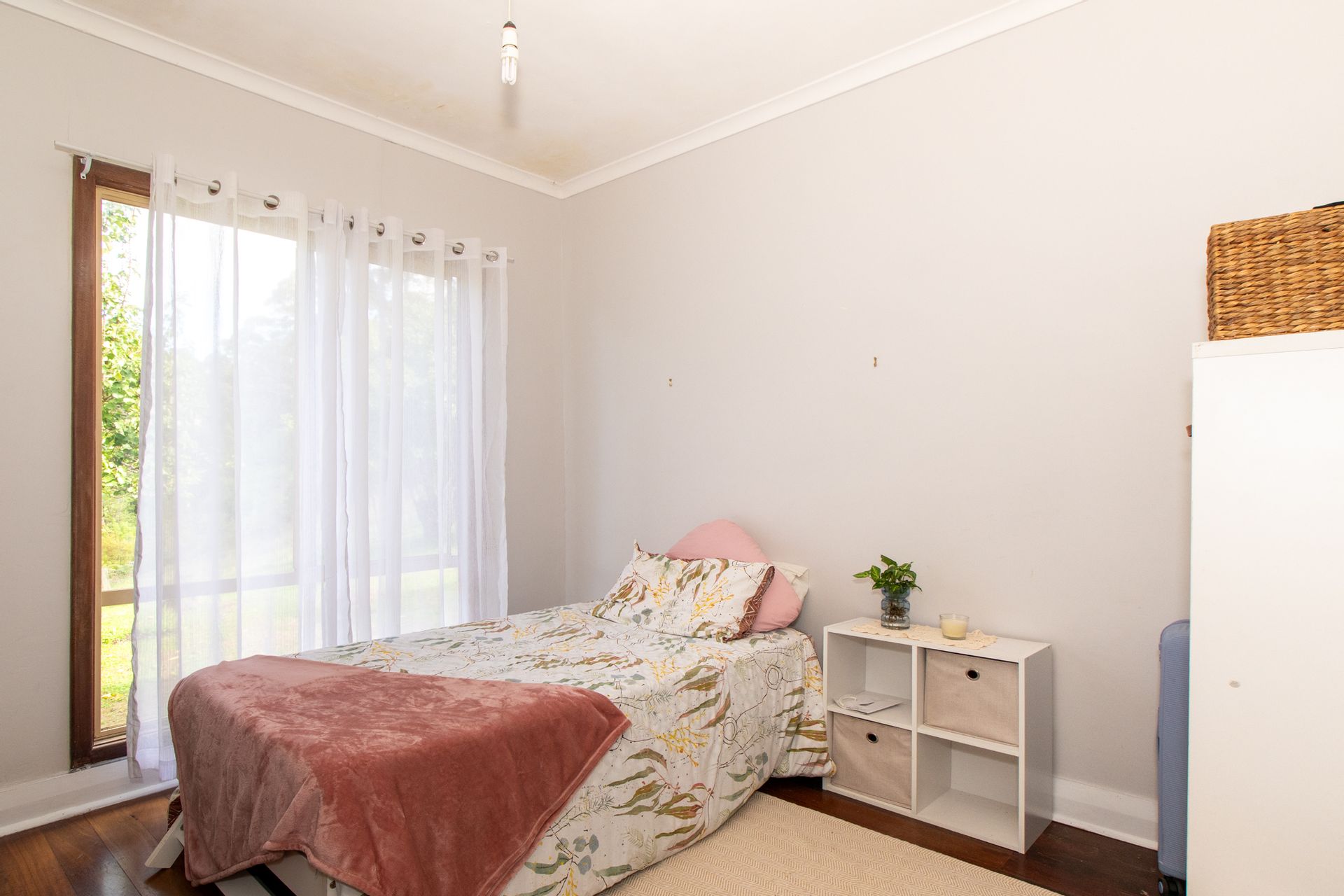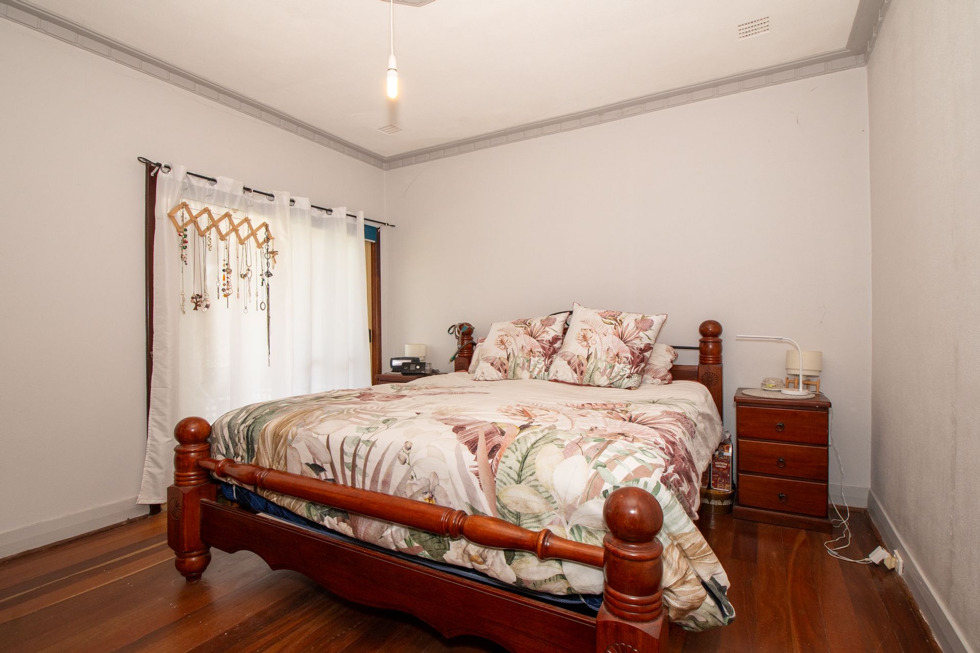 The home is a solid, older-style residence that showcases timeless jarrah flooring throughout, complemented by high ceilings that enhance the sense of space. The open-plan lounge and dining area is warmed by a slow-combustion wood fire and cooled by reverse-cycle air conditioning, ensuring year-round comfort.