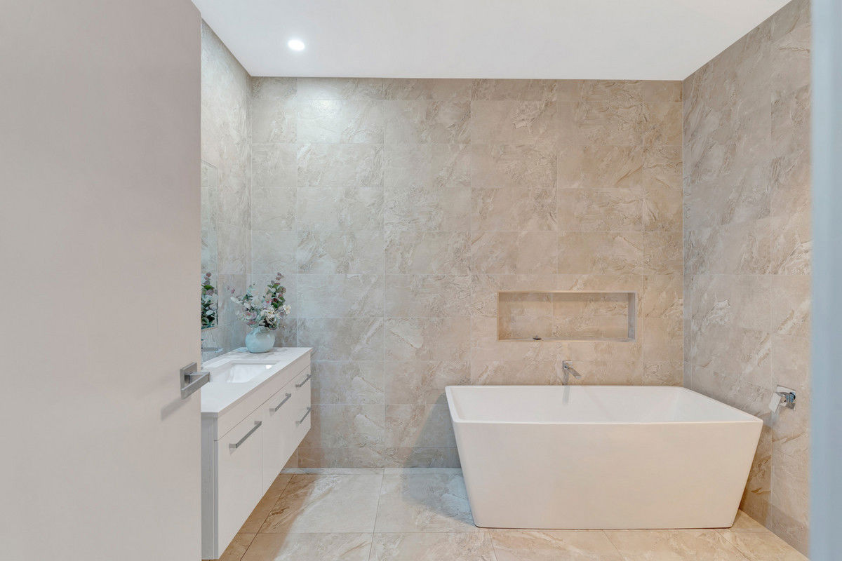 With up to five bedrooms and three bathrooms in the home, everyone is well catered for while the master retreat is pure decadence. A truly palatial master bedroom boasts a double door entry, a huge walk-in robe, double glazed windows, north facing views, and an incredible private ensuite with floor to ceiling tiles and his and hers basin, thoughtfully designed with rest and rejuvenation in mind.