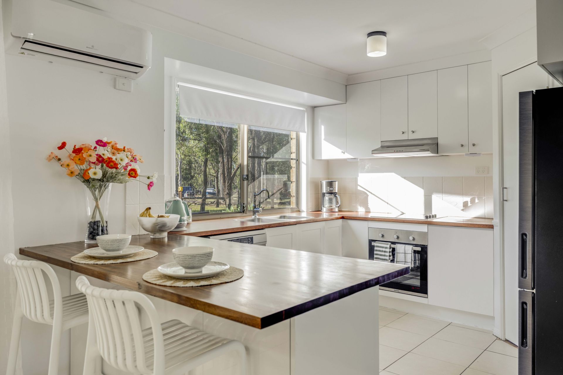 The home itself is neatly presented, reflecting a warm and welcoming farmhouse aesthetic with a modern twist. At its heart, the renovated kitchen boasts timber benchtops, a large pantry, soft-close cabinetry, electric cooking appliances, and a dishwasher. The combined living and dining spaces flow seamlessly—light-filled and comfortable with reverse cycle air conditioning, it’s a home that feels instantly lived in and loved. The renovated bathroom with an extended shower adds to the convenience, and all bedrooms are equipped with new carpet, built-in robes and ceiling fans, designed with low-maintenance living in mind.