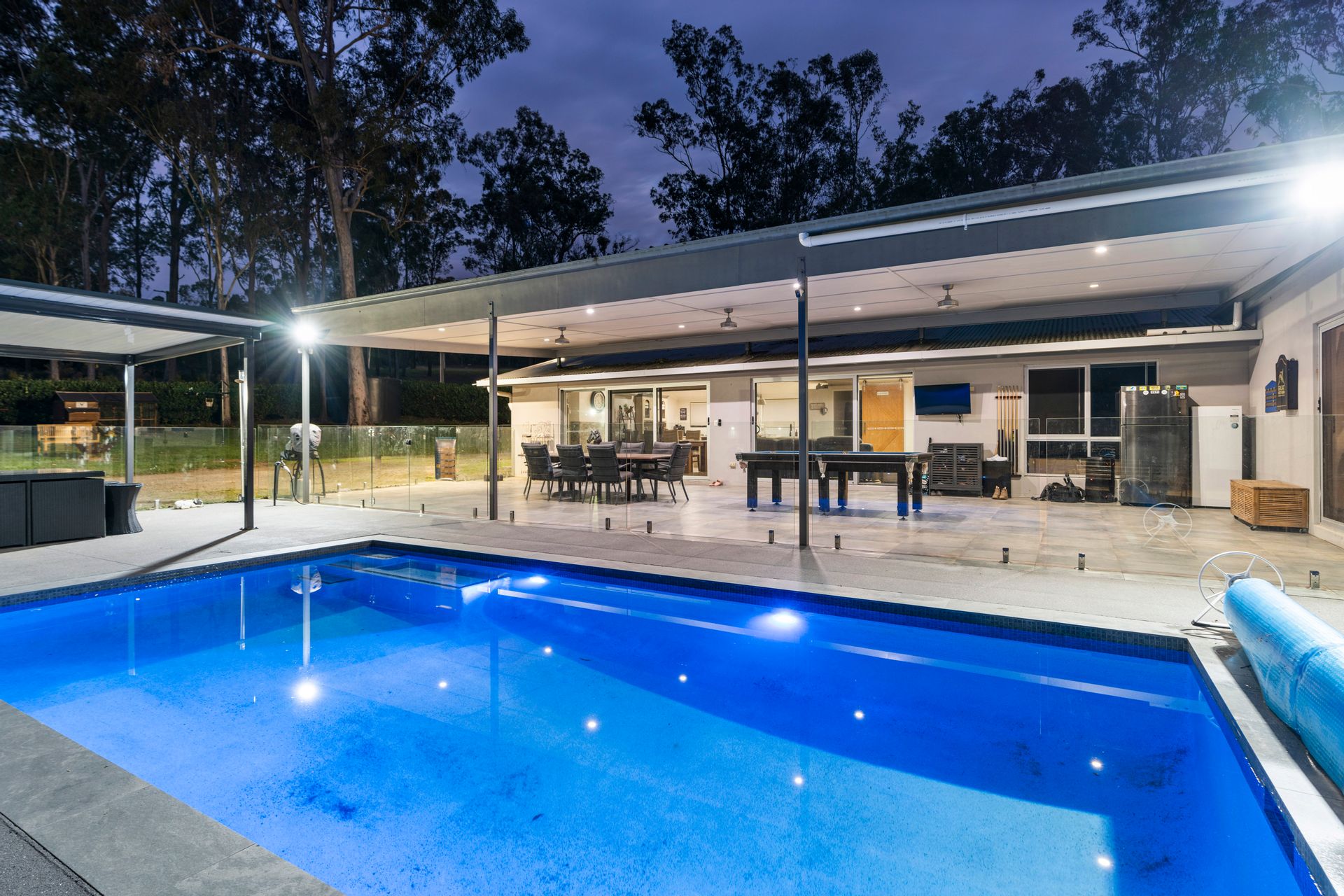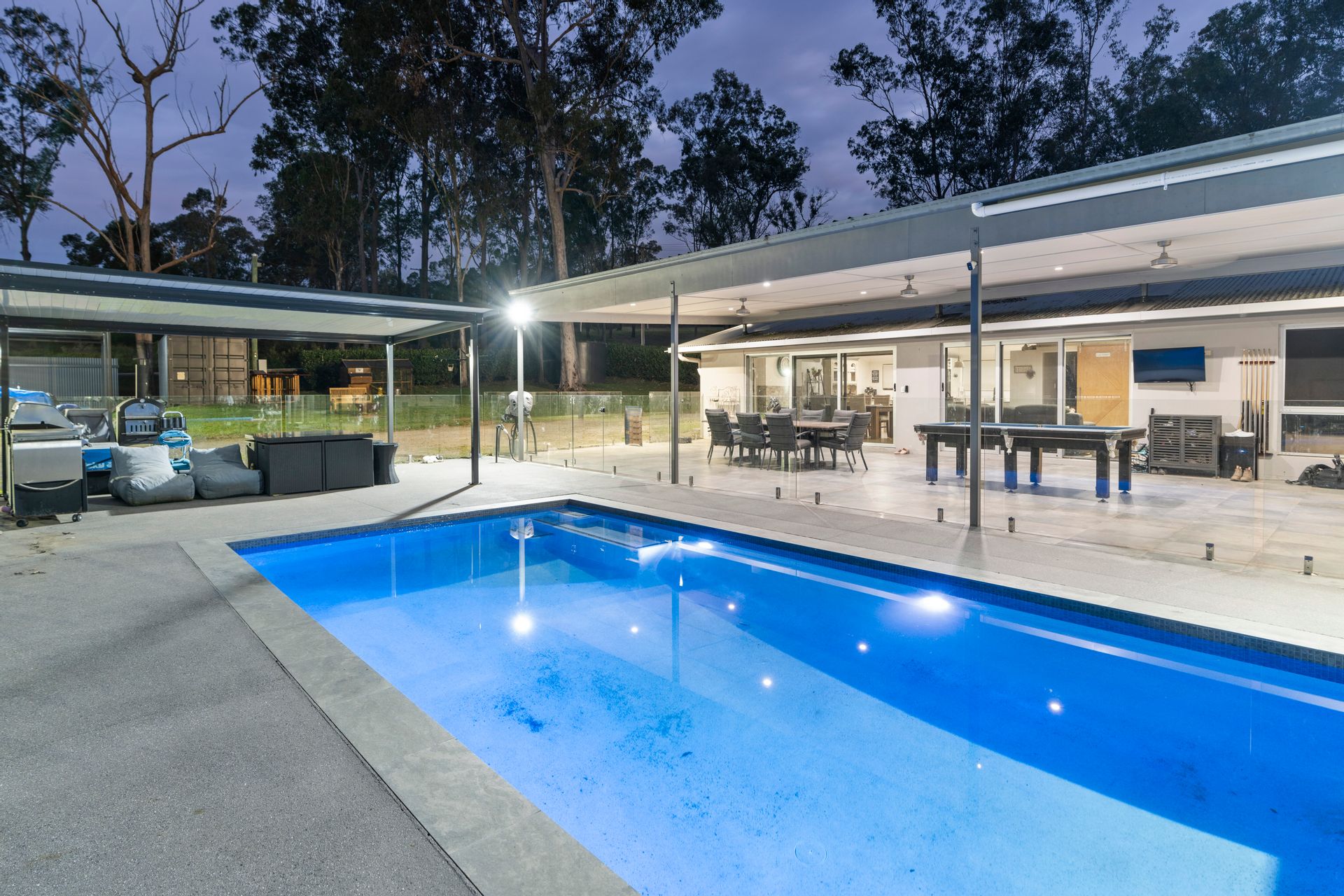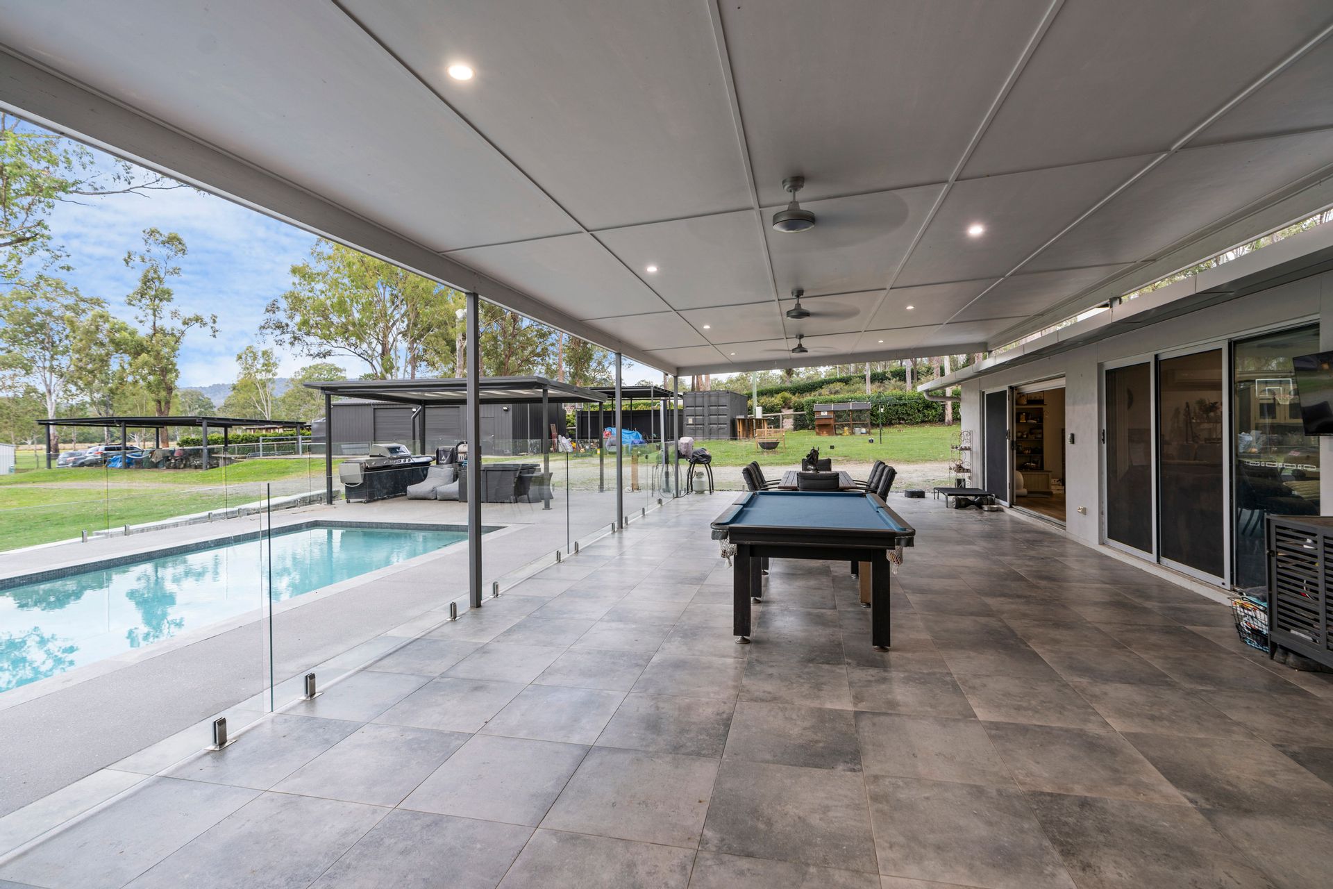 • Outdoor entertaining area with an inground concrete pool.