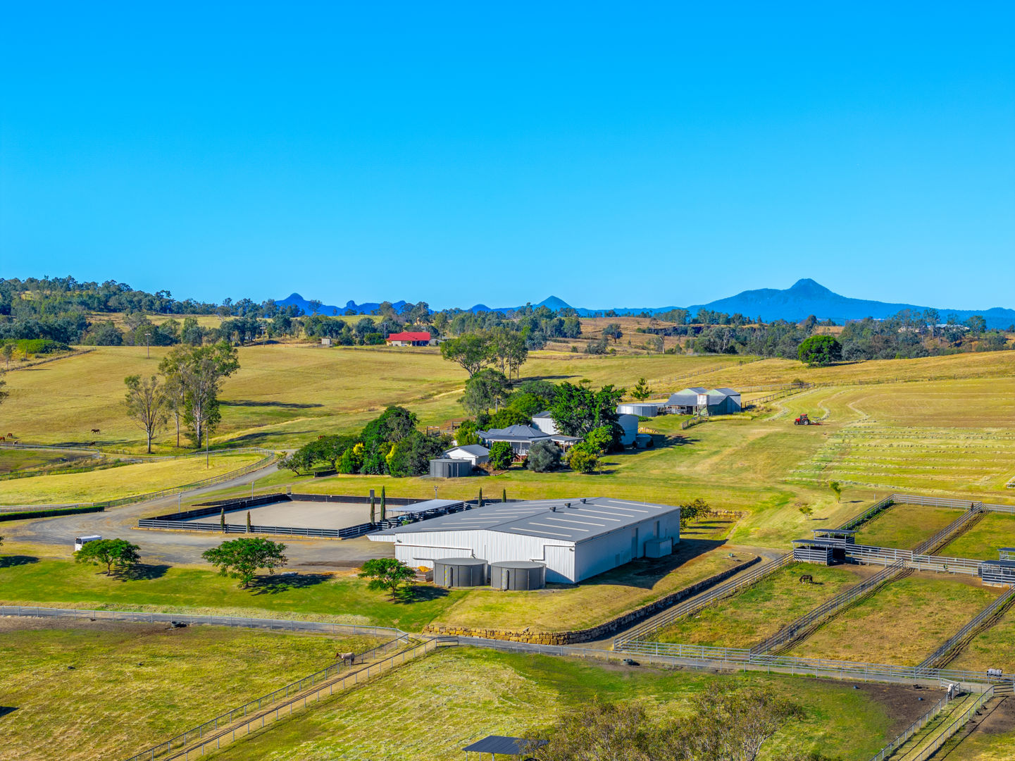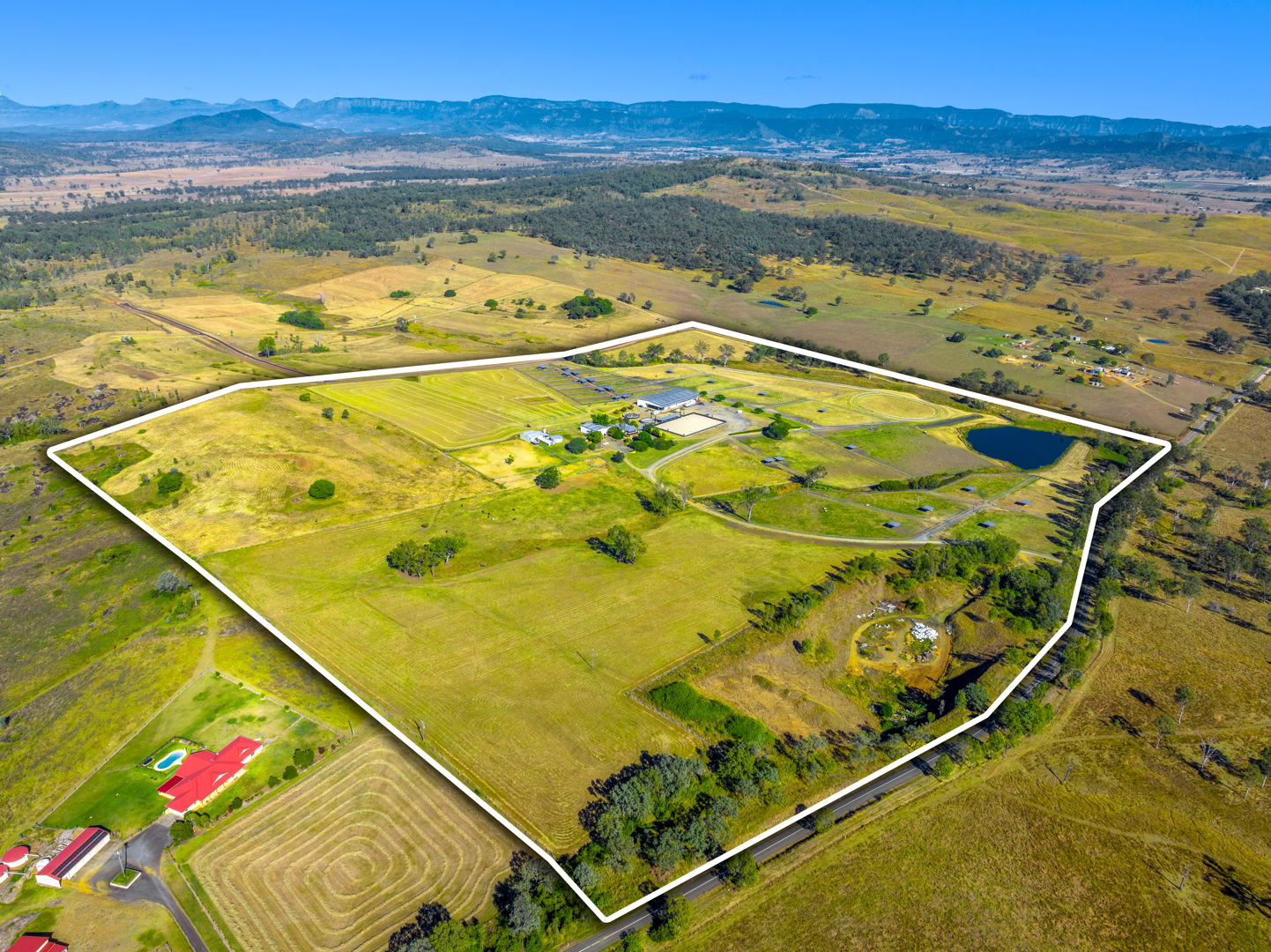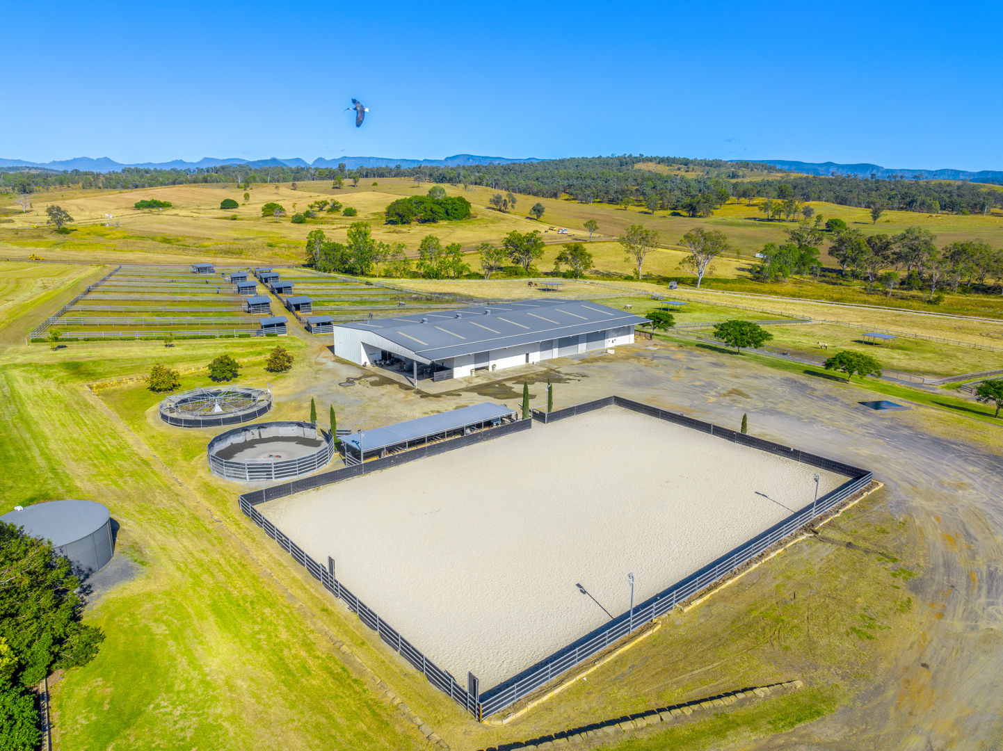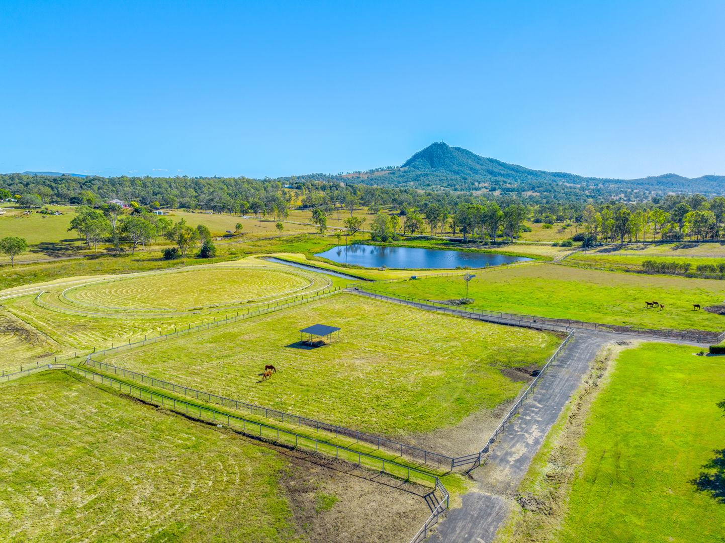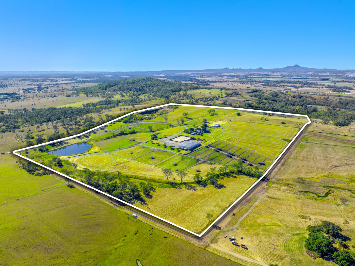 • Main Barn/Shed - 57m x 32m (1824m²) * 39 stables with cushioned flooring * Tack and rug/feed rooms * 3 wash bays with overhead sprays, hot/cold water * Vet crush, sawdust pit * 8 electric 6m-high roller doors for easy access * Internal Manager's Residence: 3 bed, 1 bath + office, kitchen, ducted a/c • Arena & Training * E.L.D Sand Arena - 70m x 40m with floodlighting * 4 covered outdoor boxes (5x4m) along arena * 16m Round Yard * 8-Horse Electric Walker with water supply * Horse Swim - 65m * 400m training Track • External Equine Infrastructure * 17 external stables (approx. 6x6m) with day yards & lighting * 12 internal paddocks with shelters * Large secure post-and-rail grazing paddocks * Extensive room for expansion
