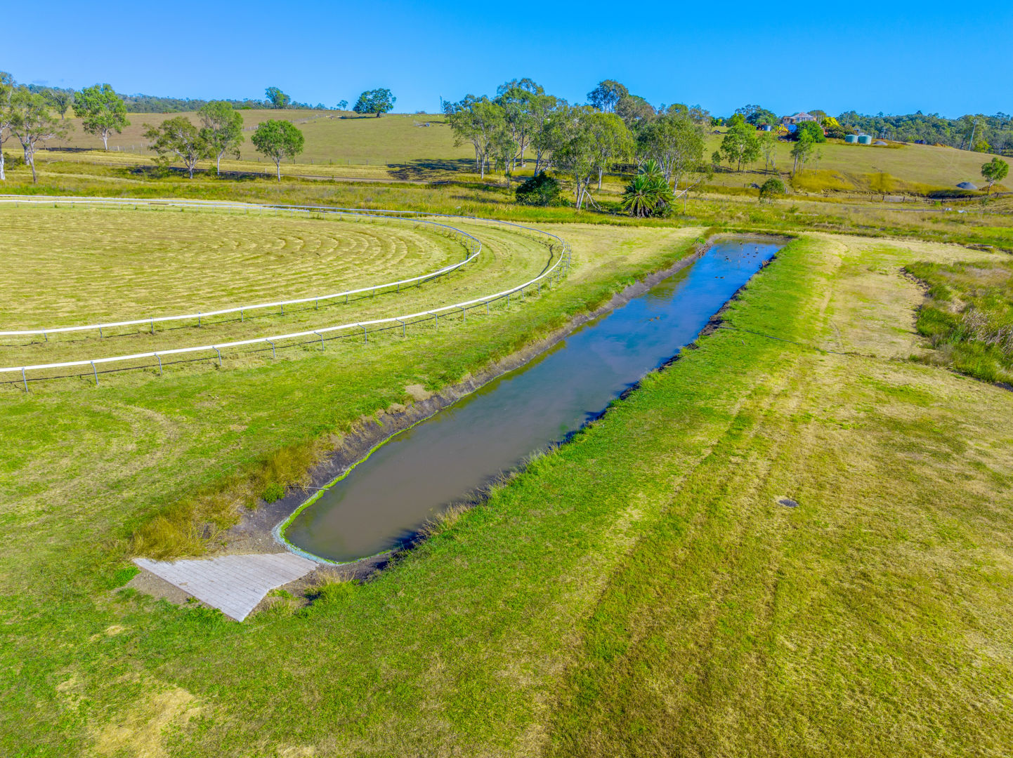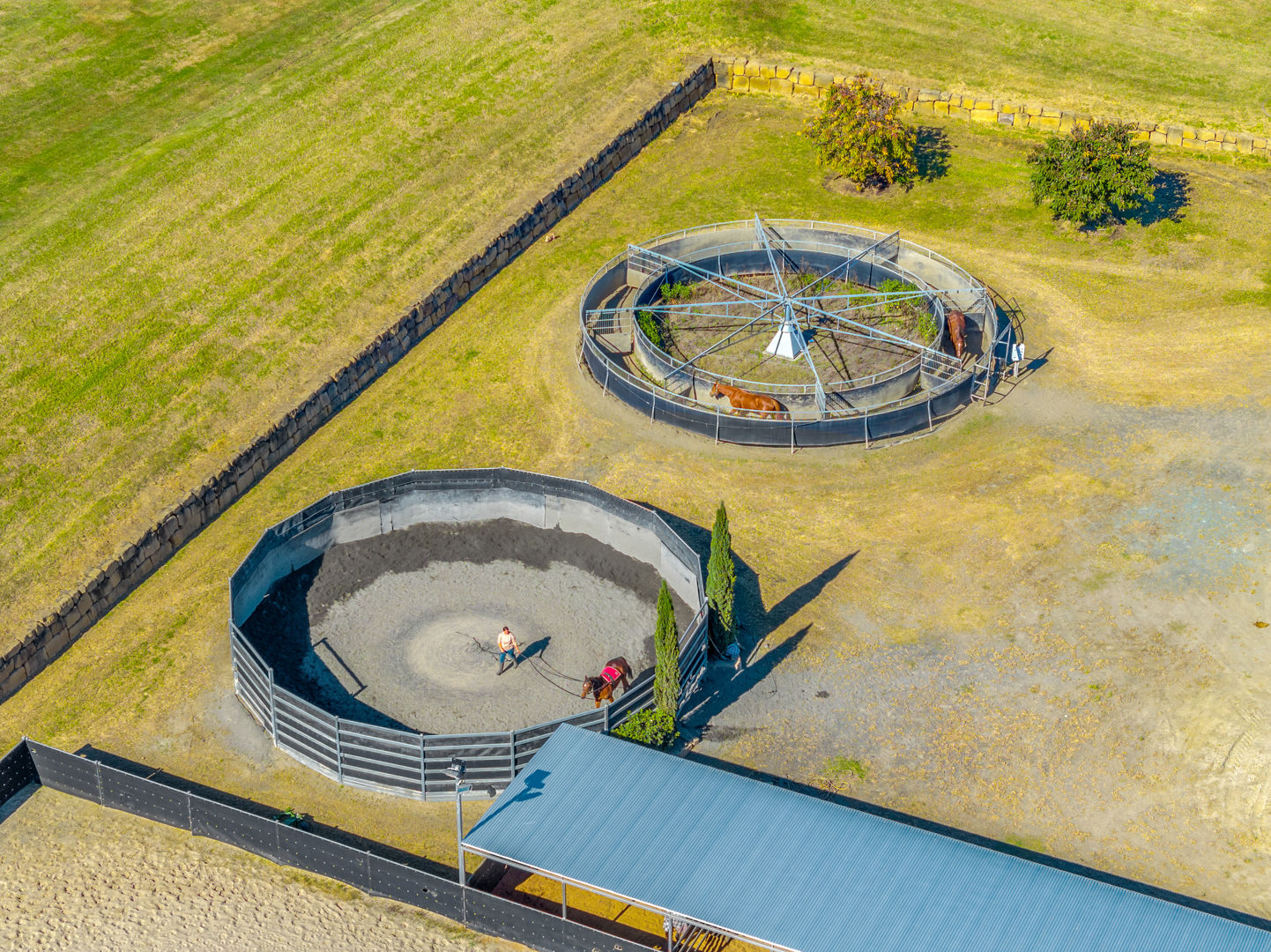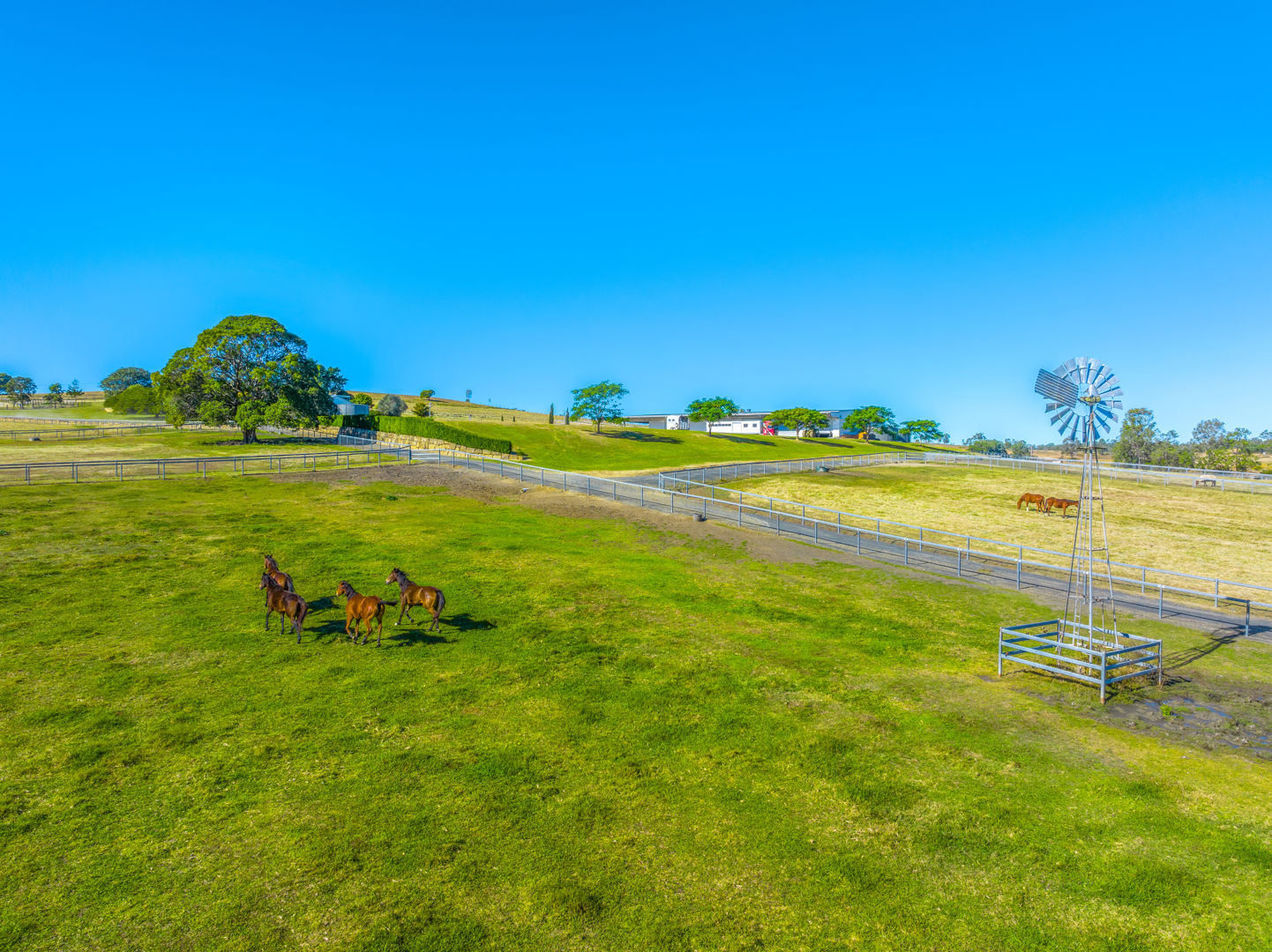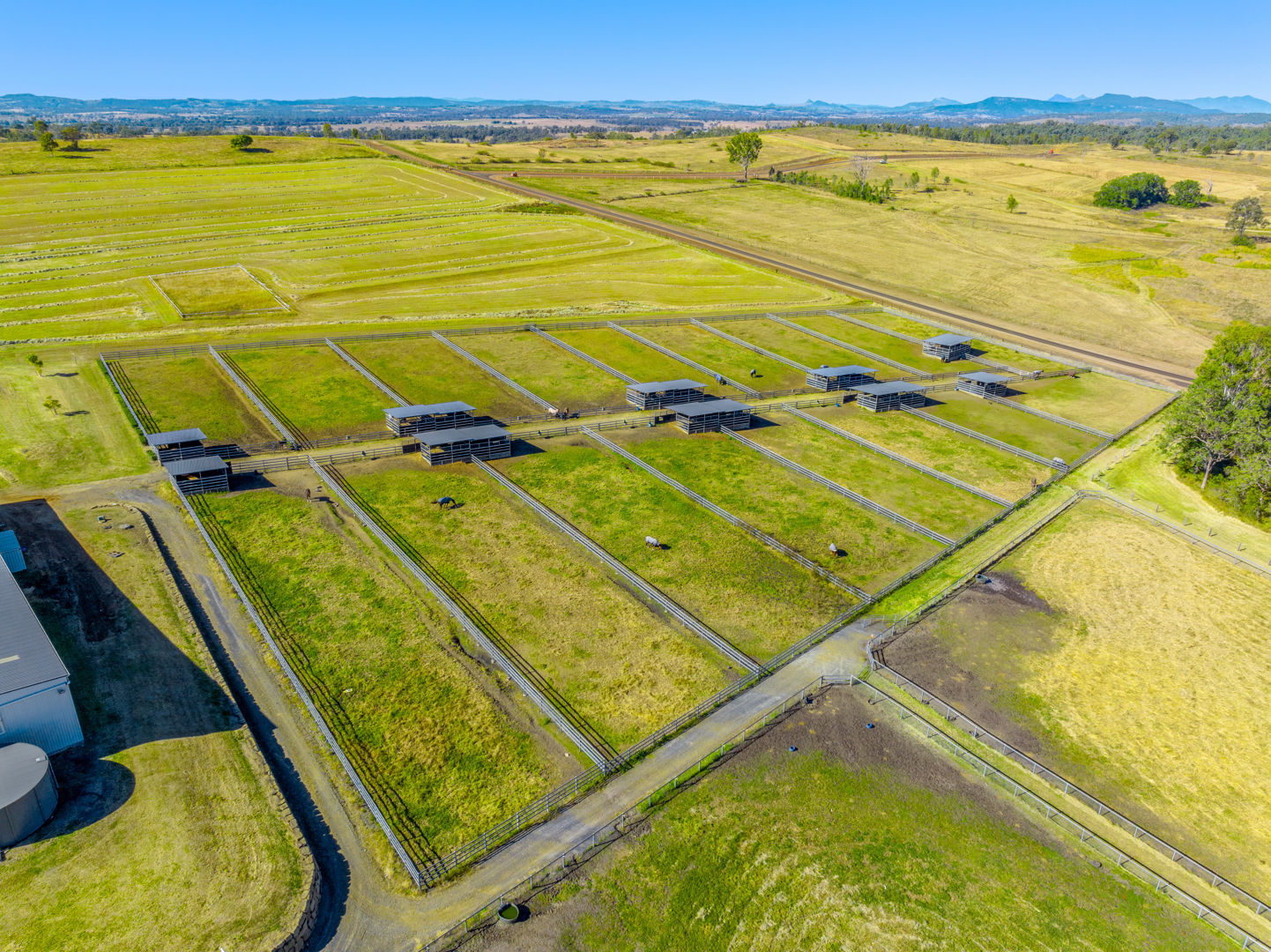 • Main Barn/Shed - 57m x 32m (1824m²) * 39 stables with cushioned flooring * Tack and rug/feed rooms * 3 wash bays with overhead sprays, hot/cold water * Vet crush, sawdust pit * 8 electric 6m-high roller doors for easy access * Internal Manager's Residence: 3 bed, 1 bath + office, kitchen, ducted a/c • Arena & Training * E.L.D Sand Arena - 70m x 40m with floodlighting * 4 covered outdoor boxes (5x4m) along arena * 16m Round Yard * 8-Horse Electric Walker with water supply * Horse Swim - 65m * 400m training Track • External Equine Infrastructure * 17 external stables (approx. 6x6m) with day yards & lighting * 12 internal paddocks with shelters * Large secure post-and-rail grazing paddocks * Extensive room for expansion