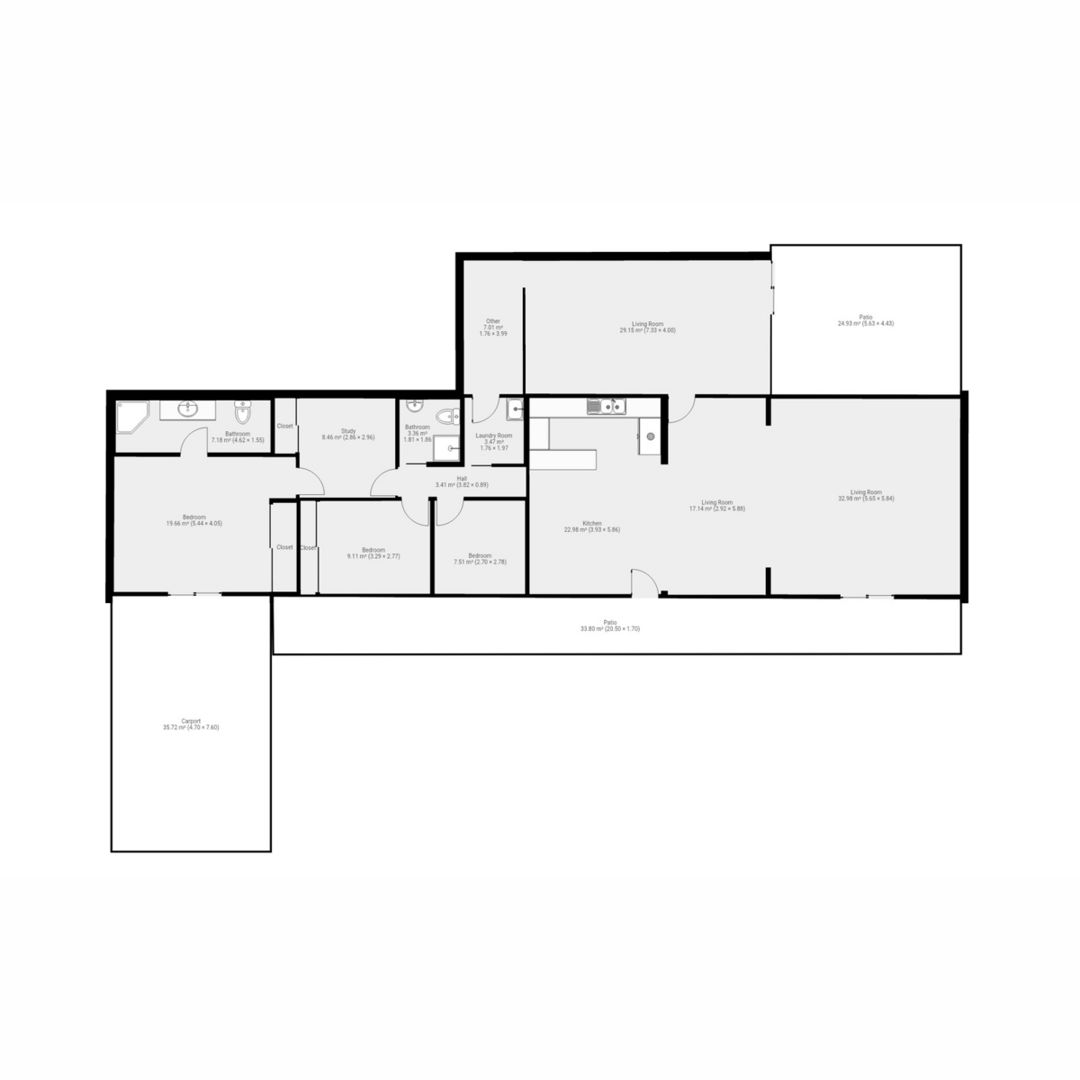 A second living zone offers flexibility—ideal as a rumpus room, media lounge, or quiet retreat. The generous master suite includes an ensuite and built-in robe, while two further bedrooms plus a study cater comfortably to family or guest accommodation. A central family bathroom completes the interior layout.
